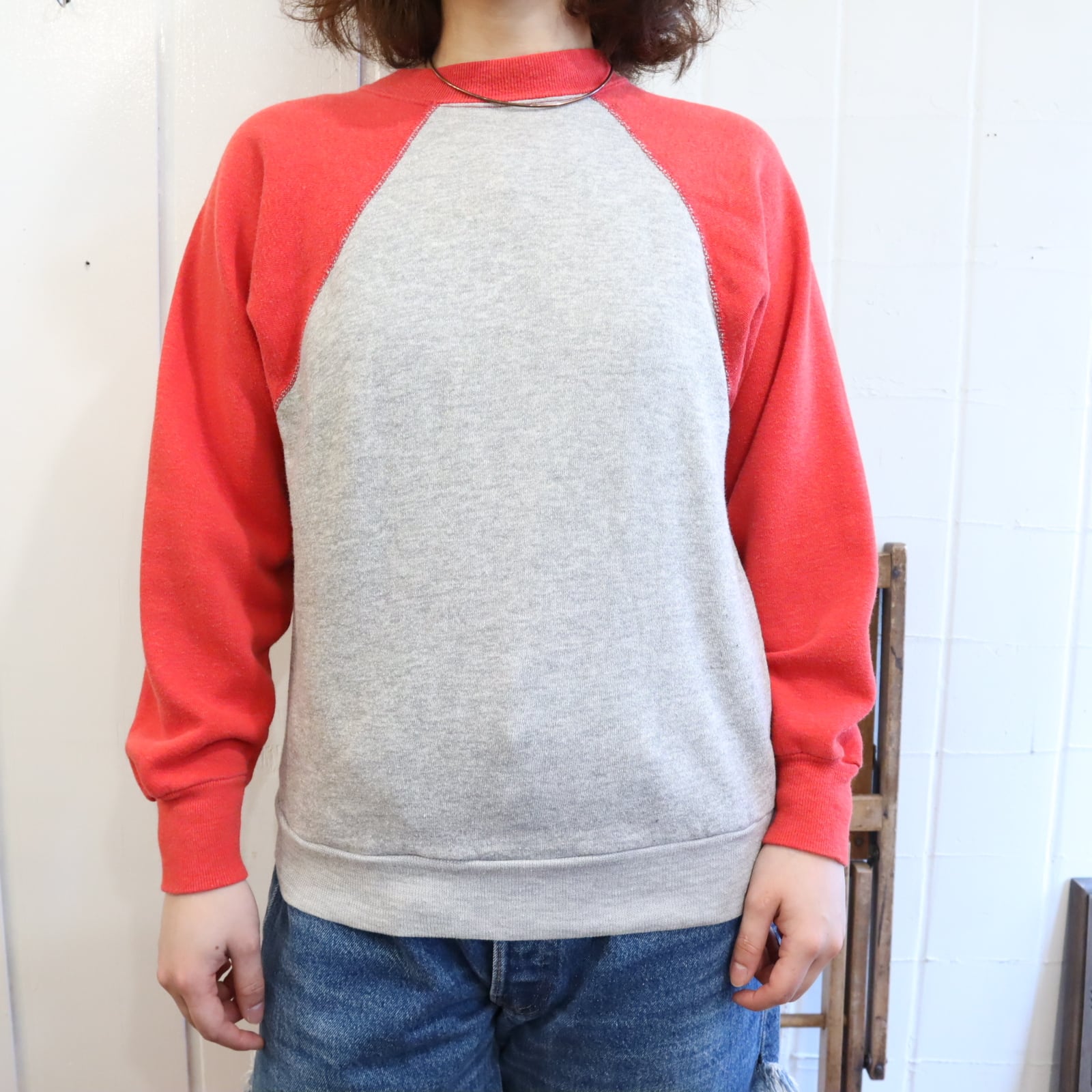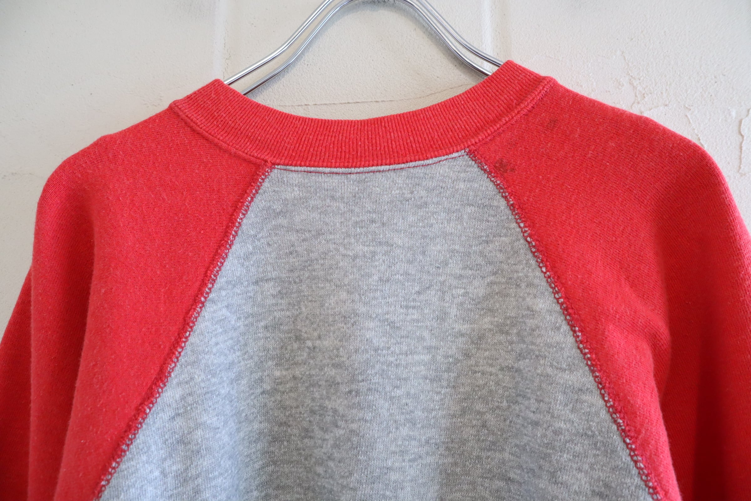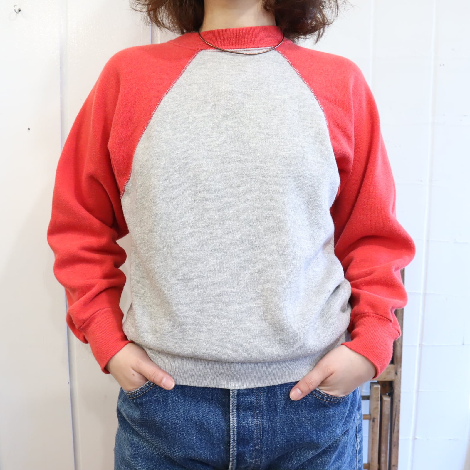 80s lightgray×red raglan sleeve sweat [l-5258]