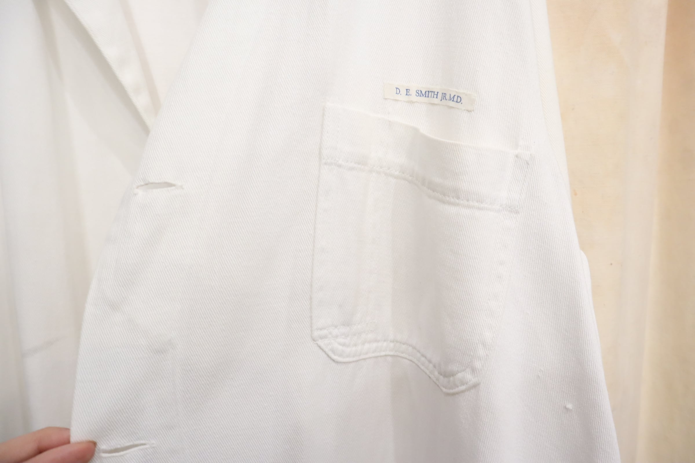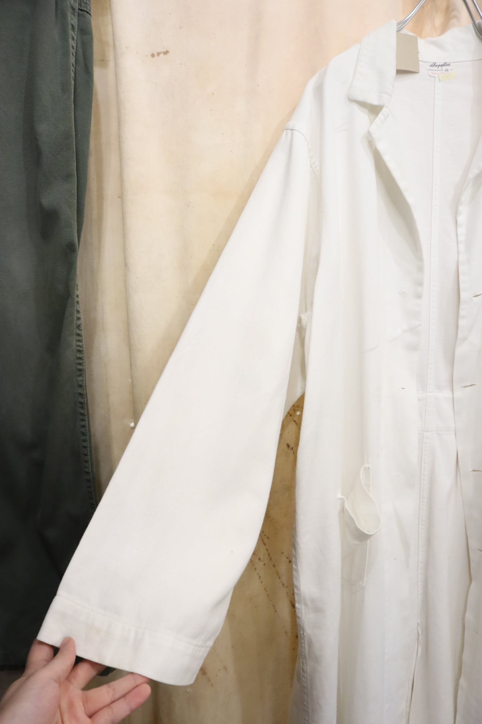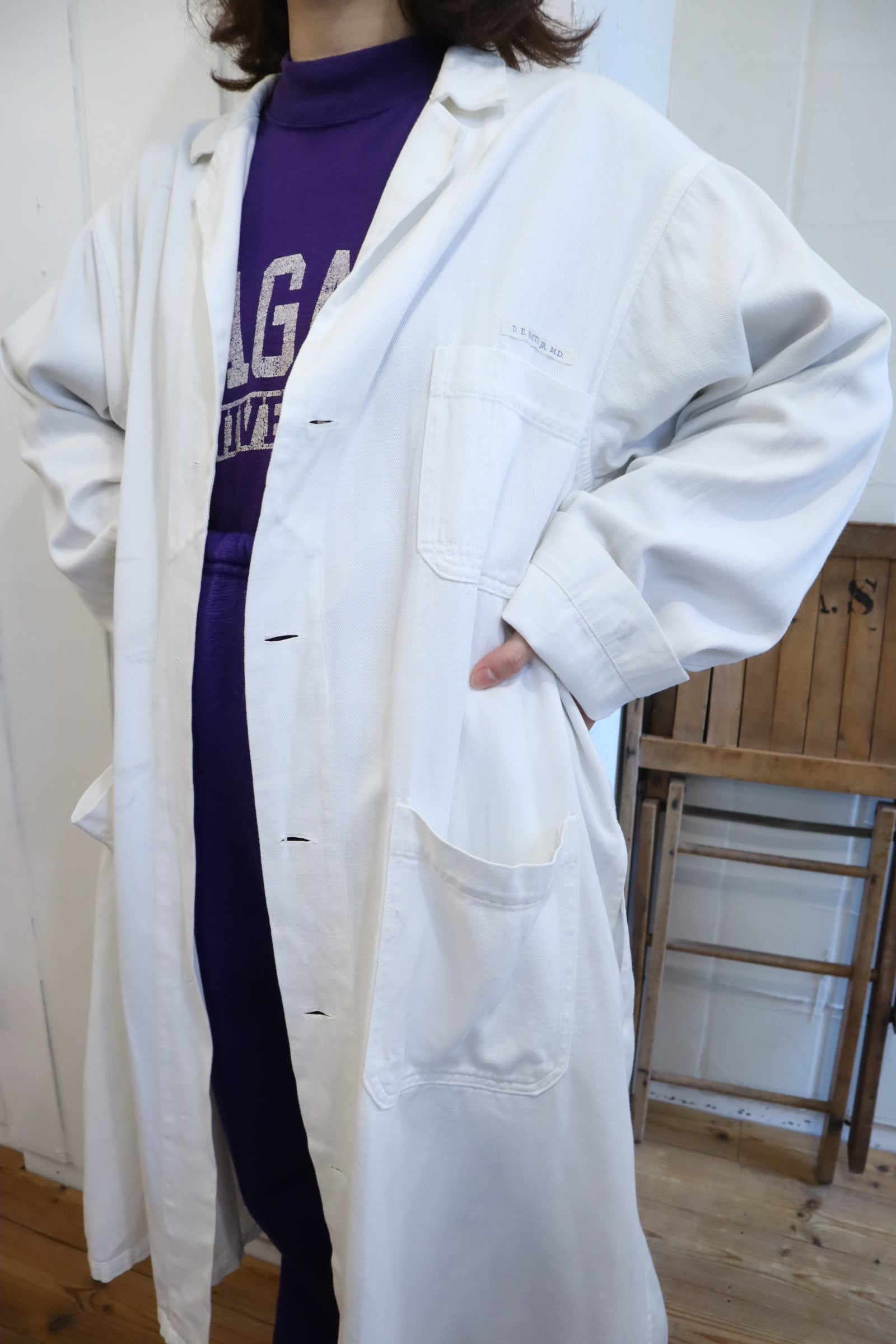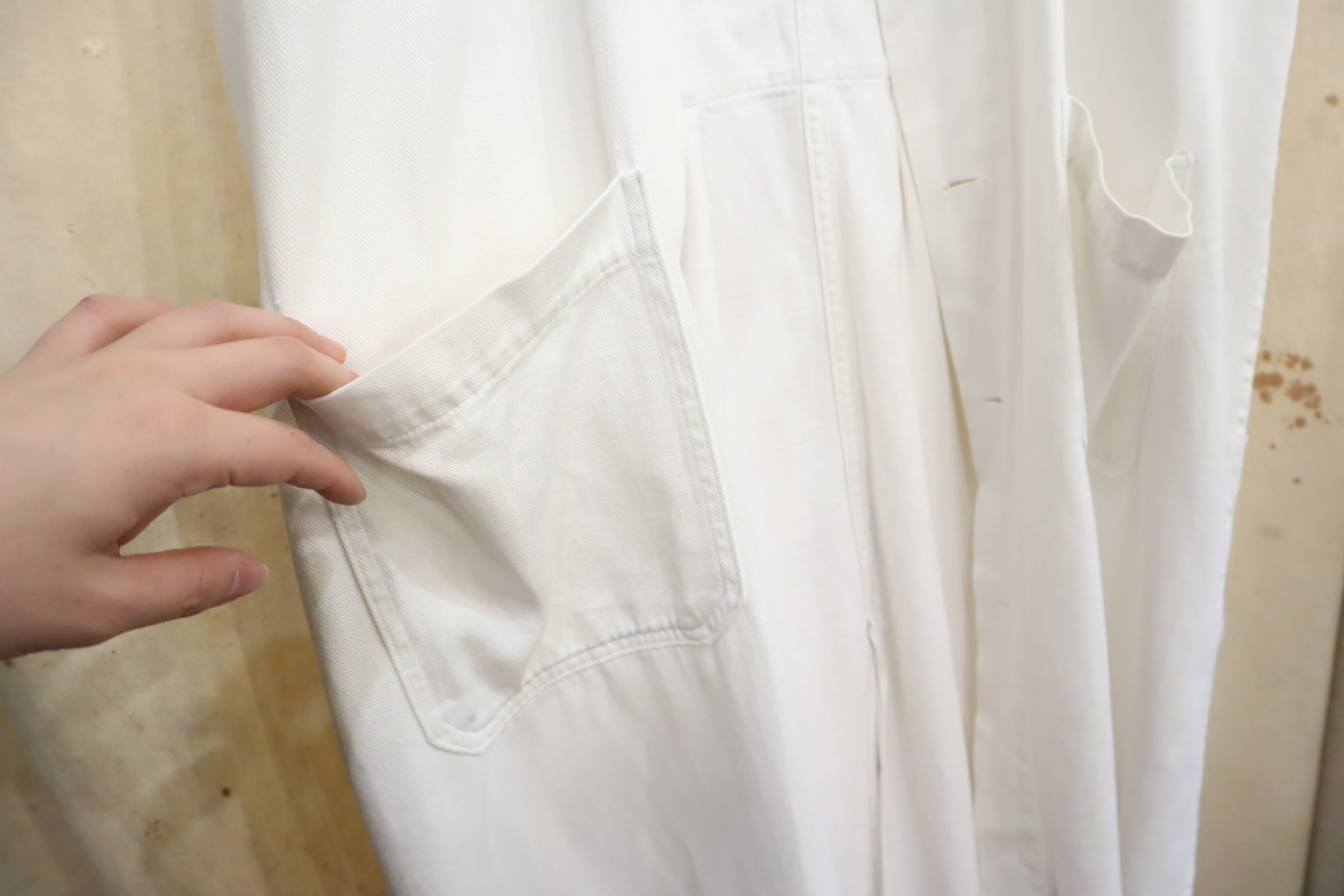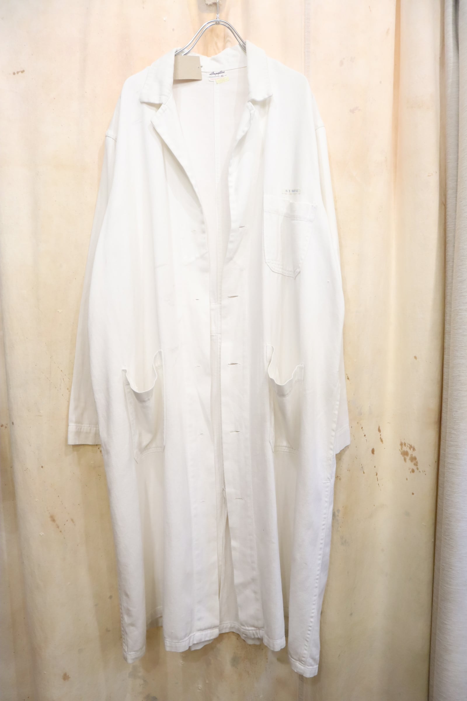 ボタンが欠損している為、さらっとガウンとして着用して頂けるヴィンテージショップコート。