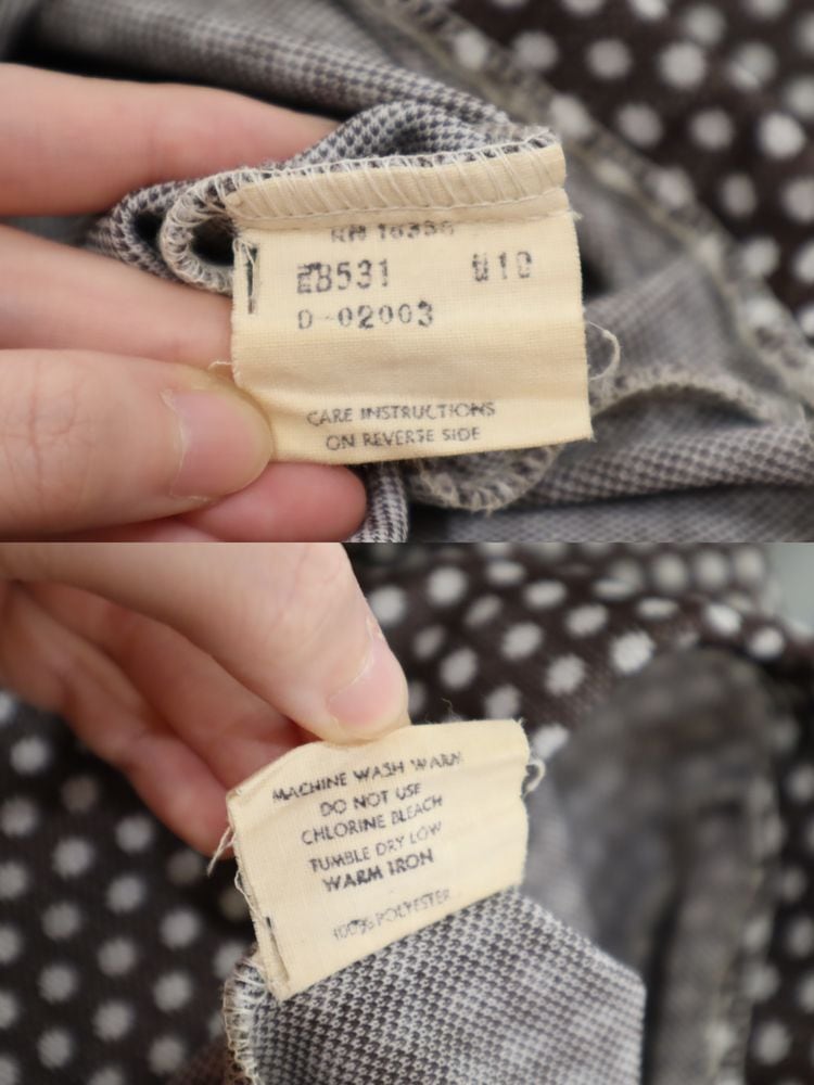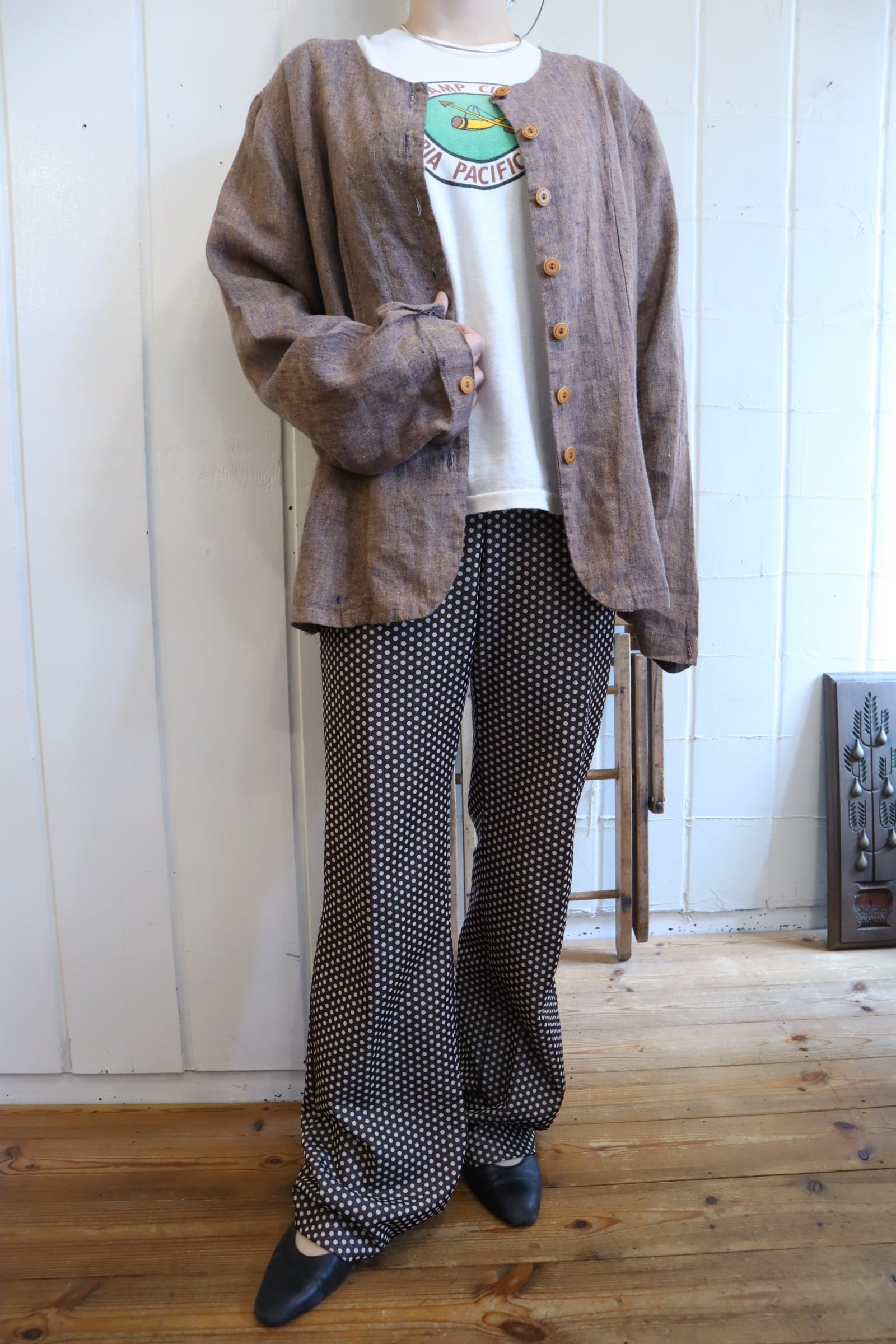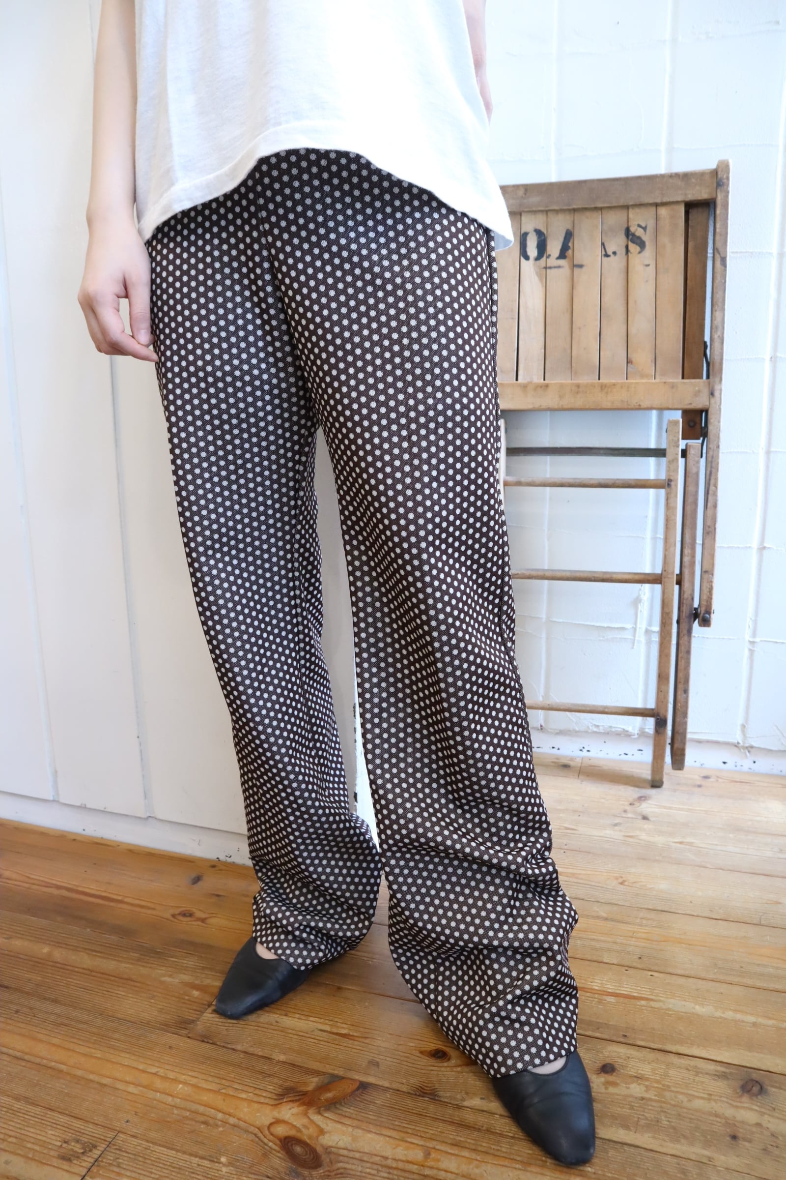70s brown×white dot polyester pants[l-5274]
