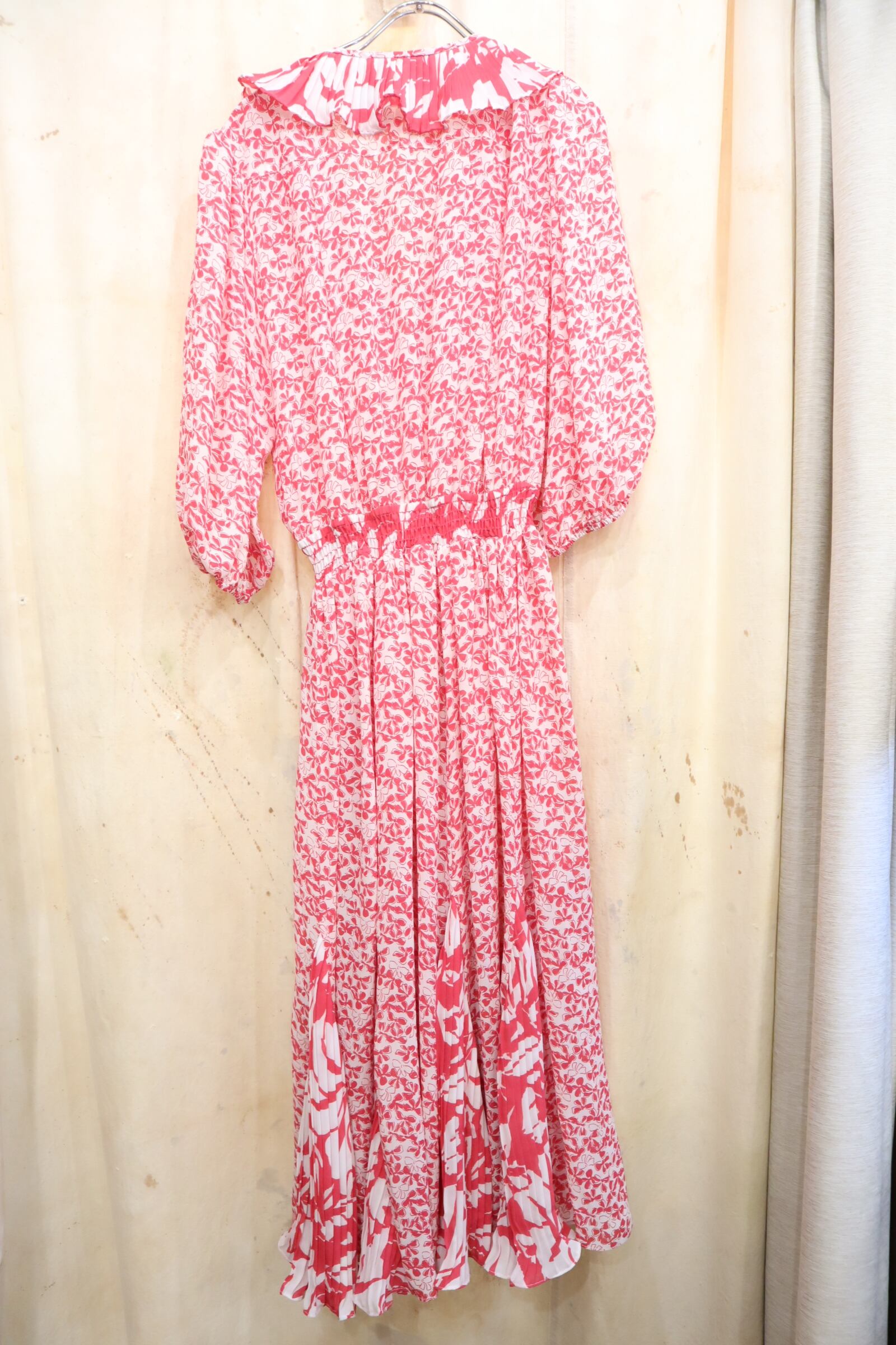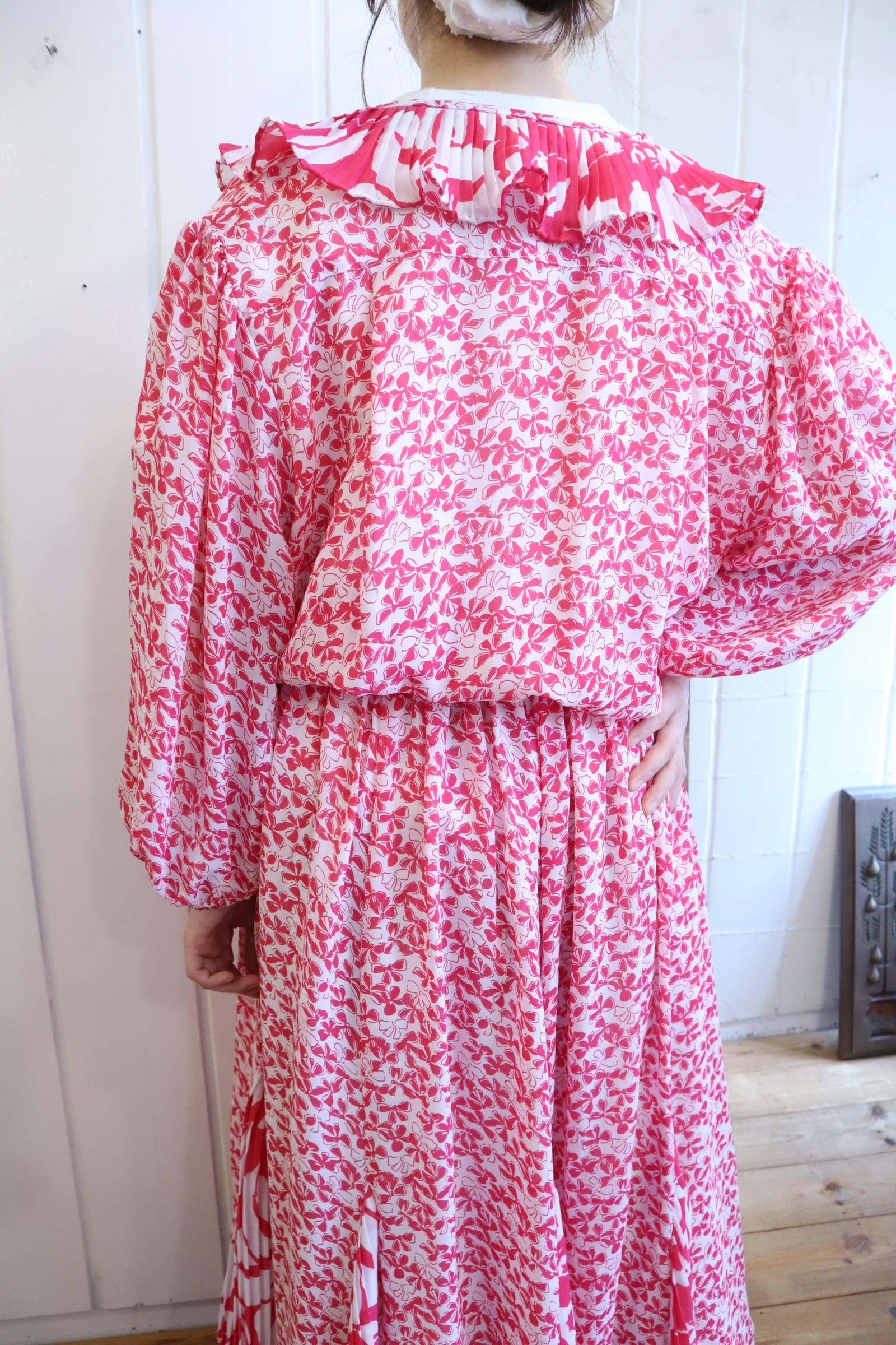 80s Susan Freis pink×white flower pattern dress [l-5281]