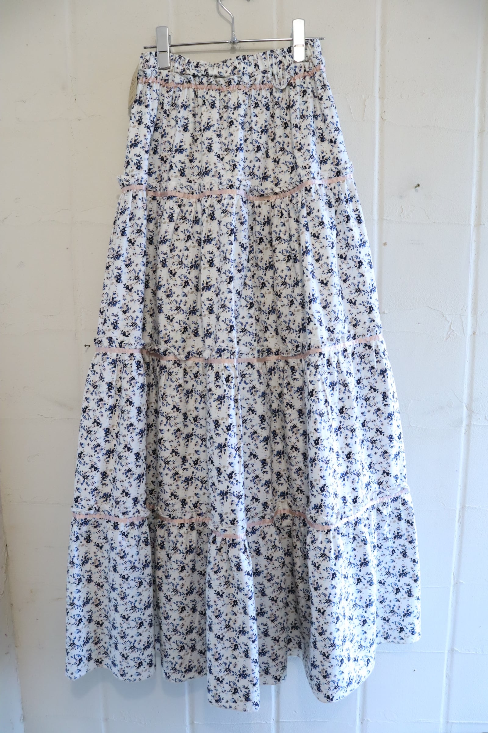 white×pailpink flower tiered long skirt [l-5283]
