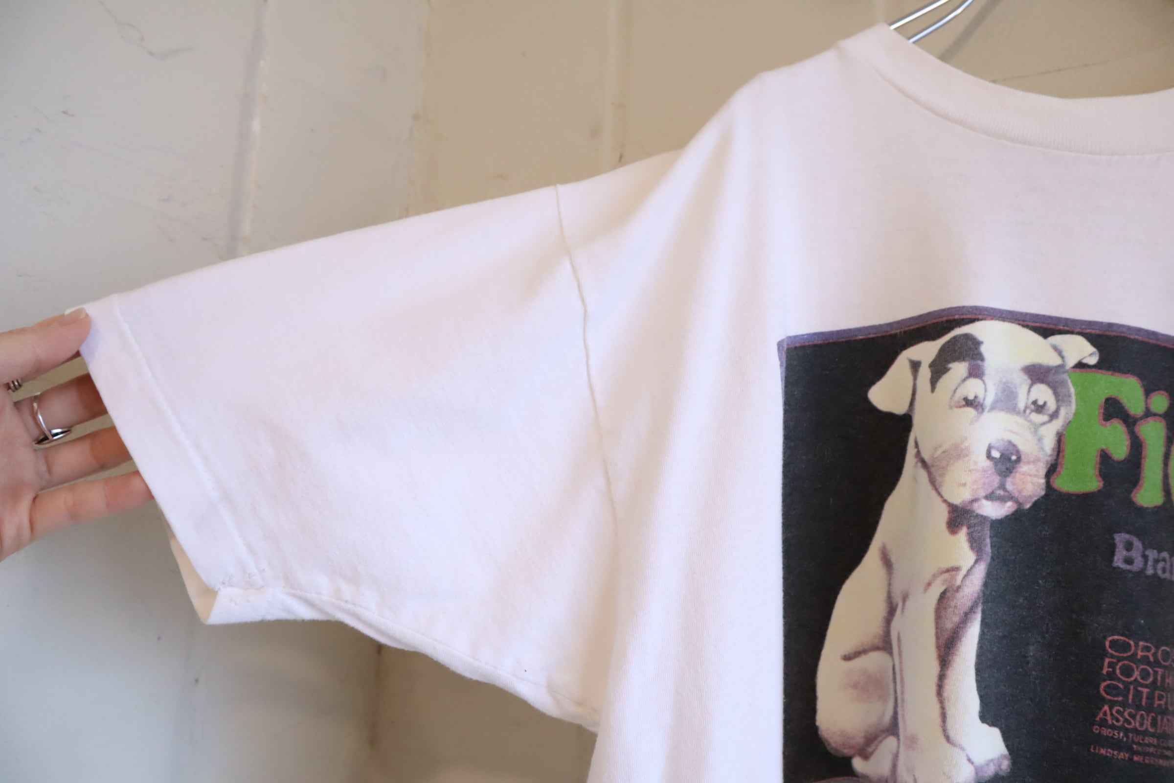 ビンテージの柑橘類の木箱に貼られていたラベルデザインの90sTシャツ。