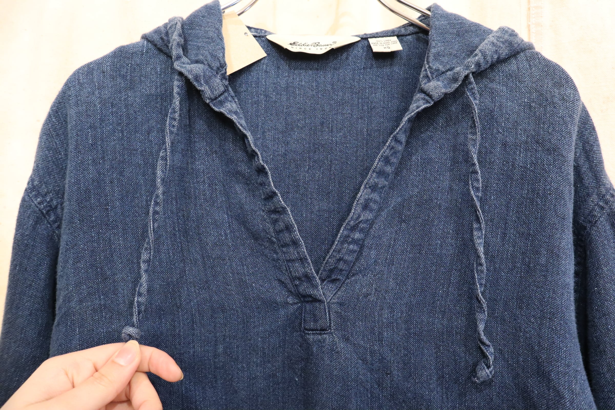 Eddie Bauer indigoblue linen pullover tops [l-5286]