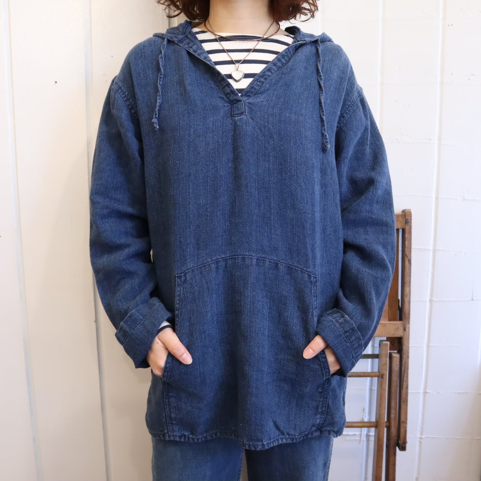 リネン100%でさらっと涼しい素材が着ていて気持ちの良い一枚です。