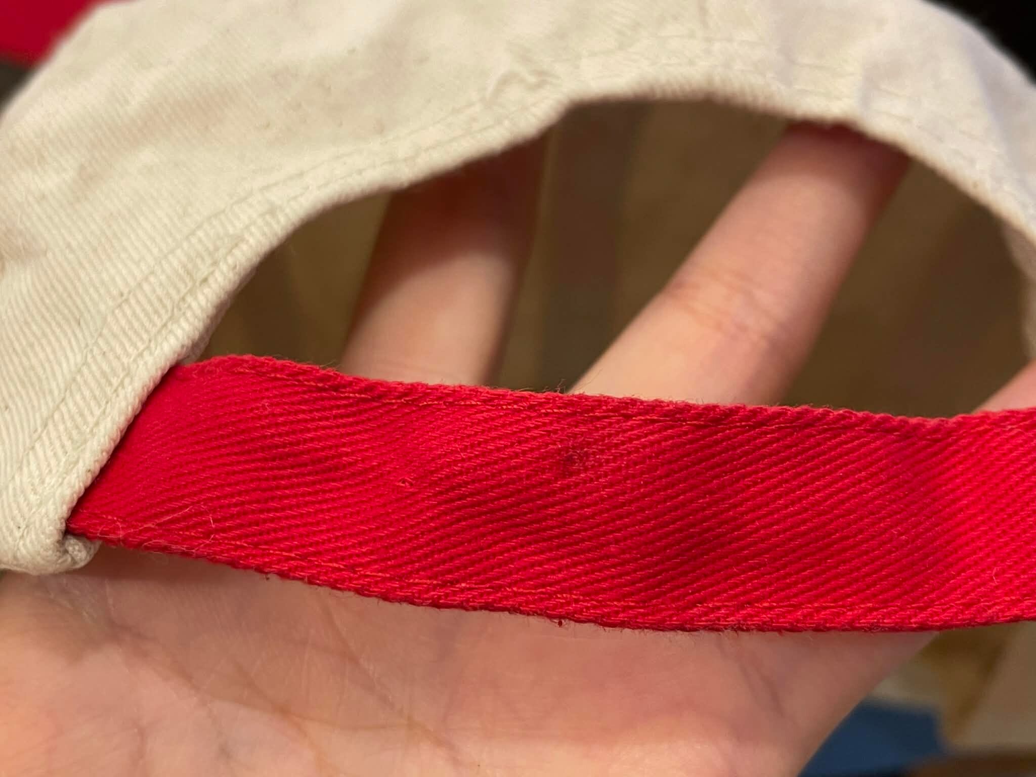 調整の紐部分に一部小さな汚れがございますが、あまり気にならないかと思います。