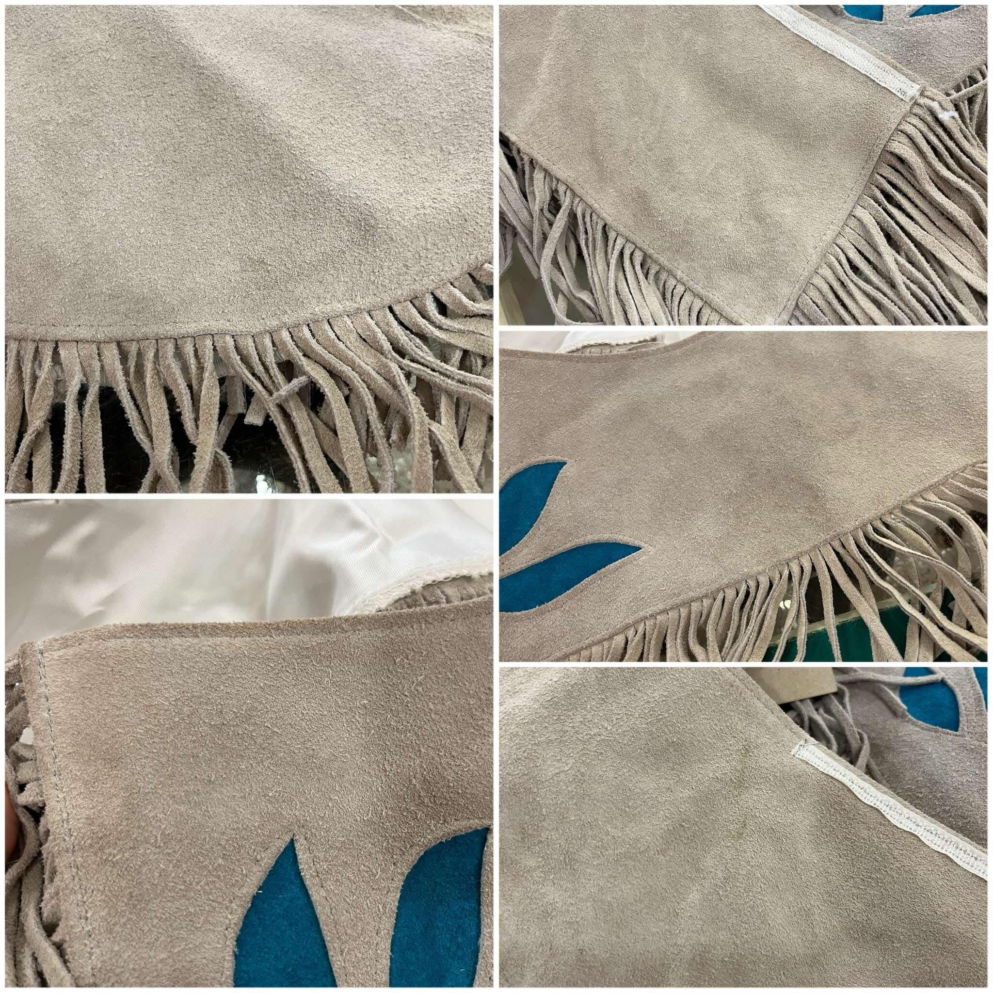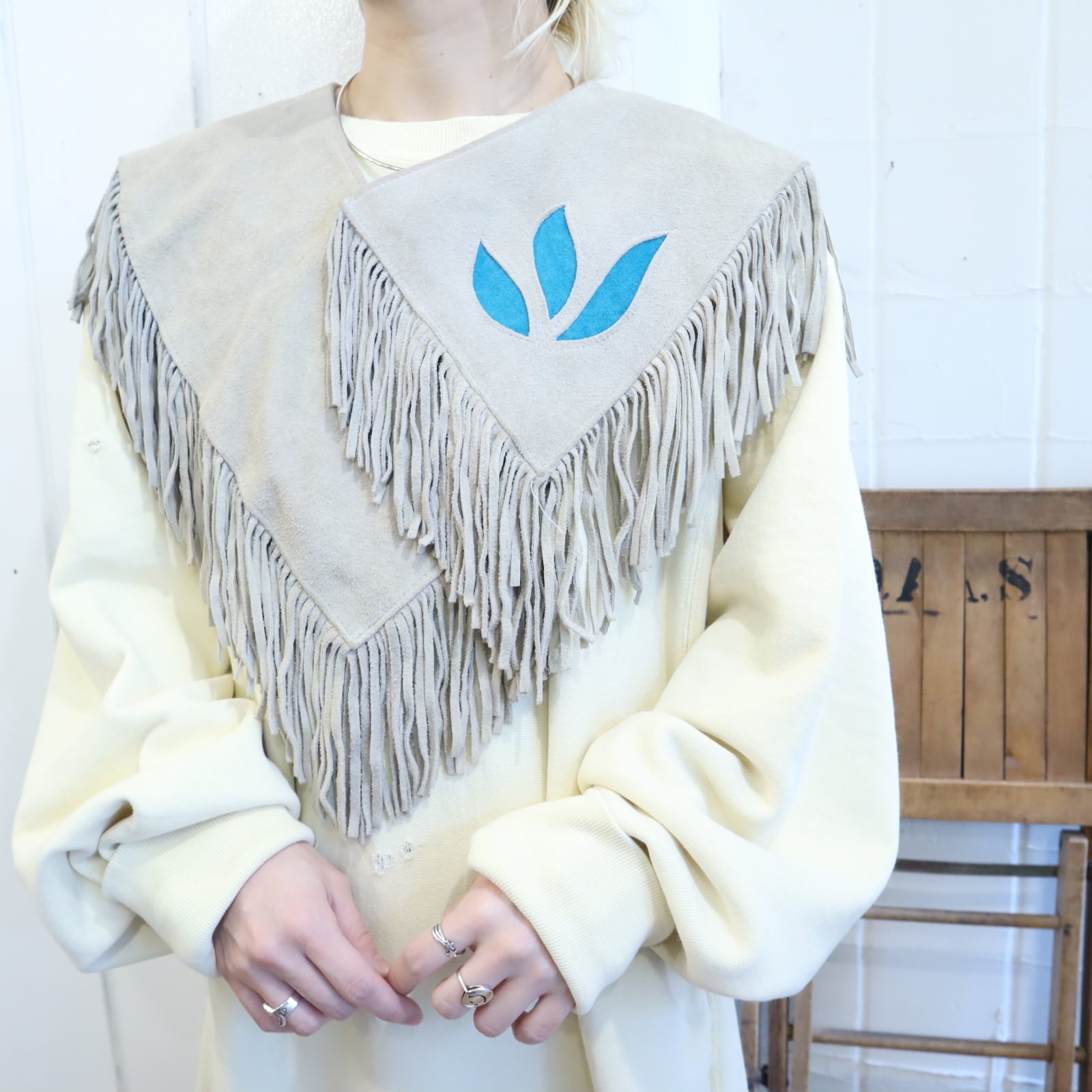 made in USA gray×blue cutwork design leather collar [l-5297]