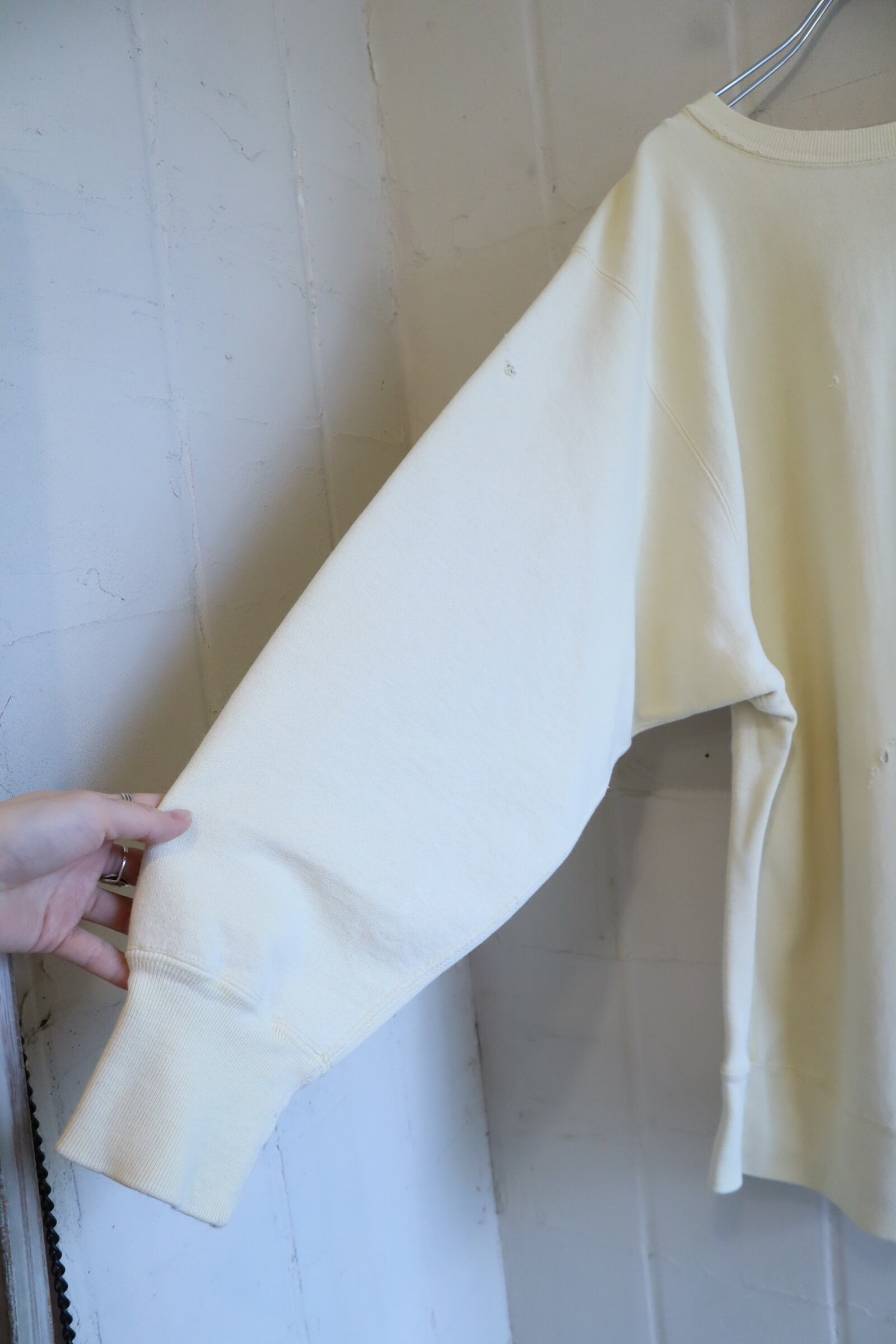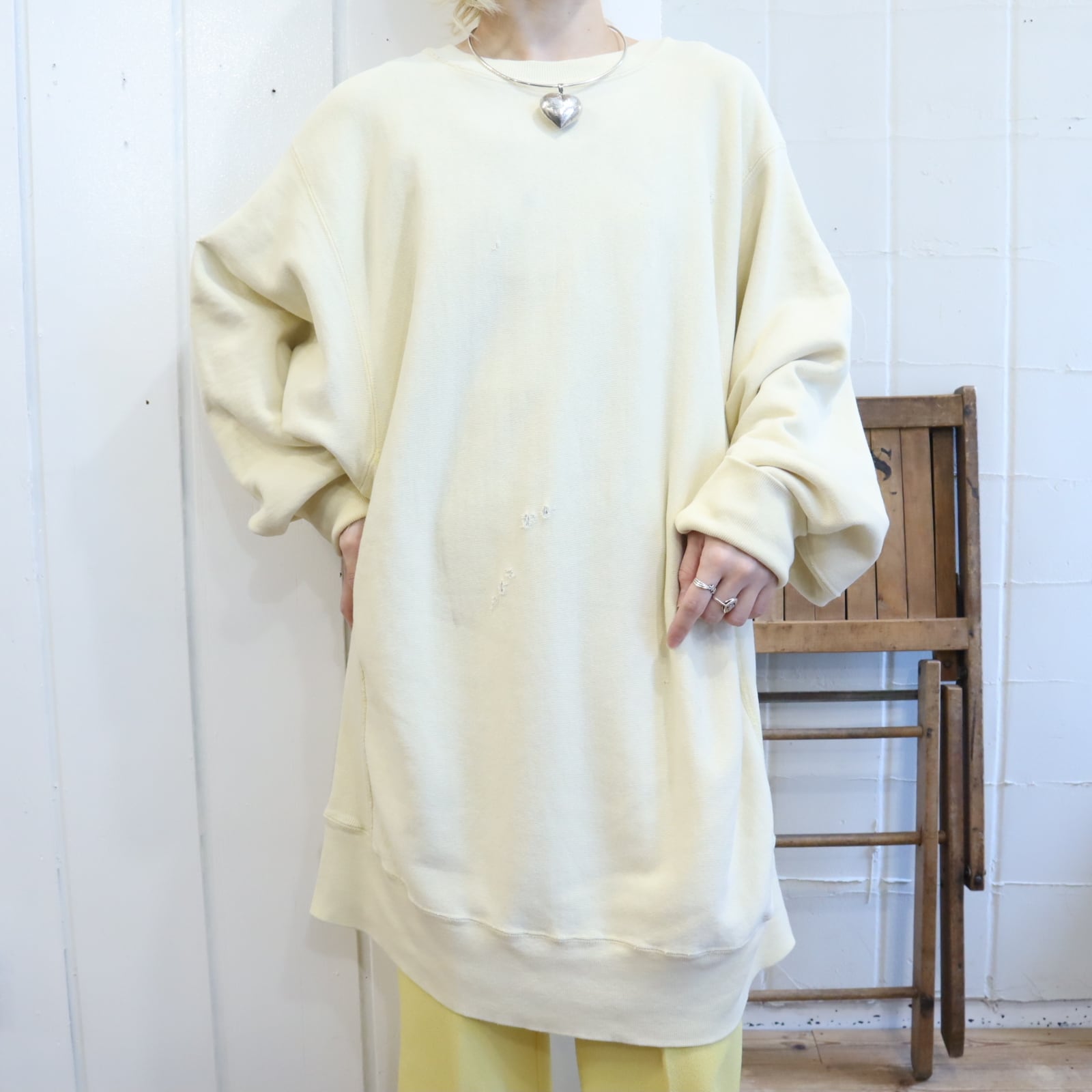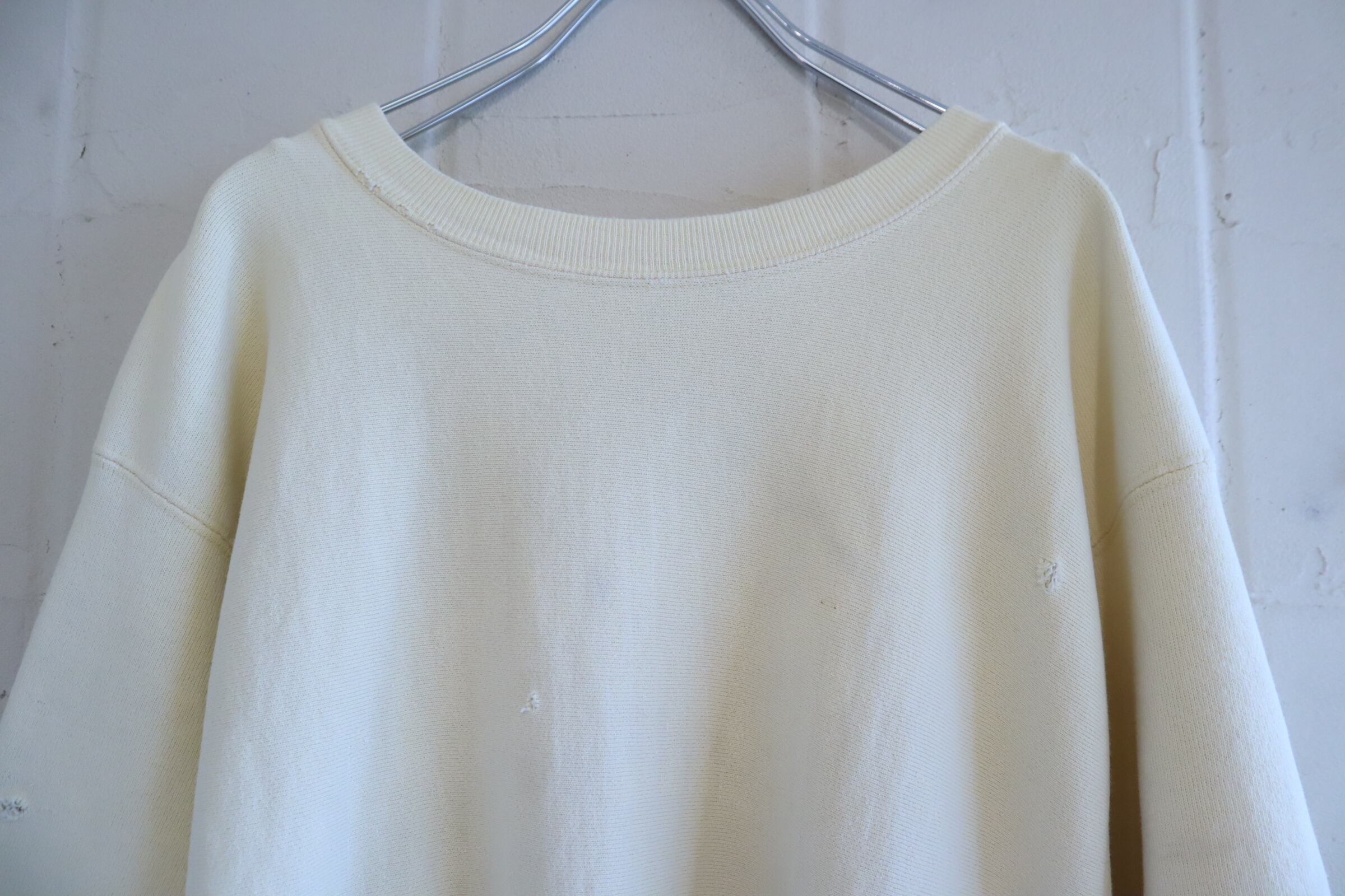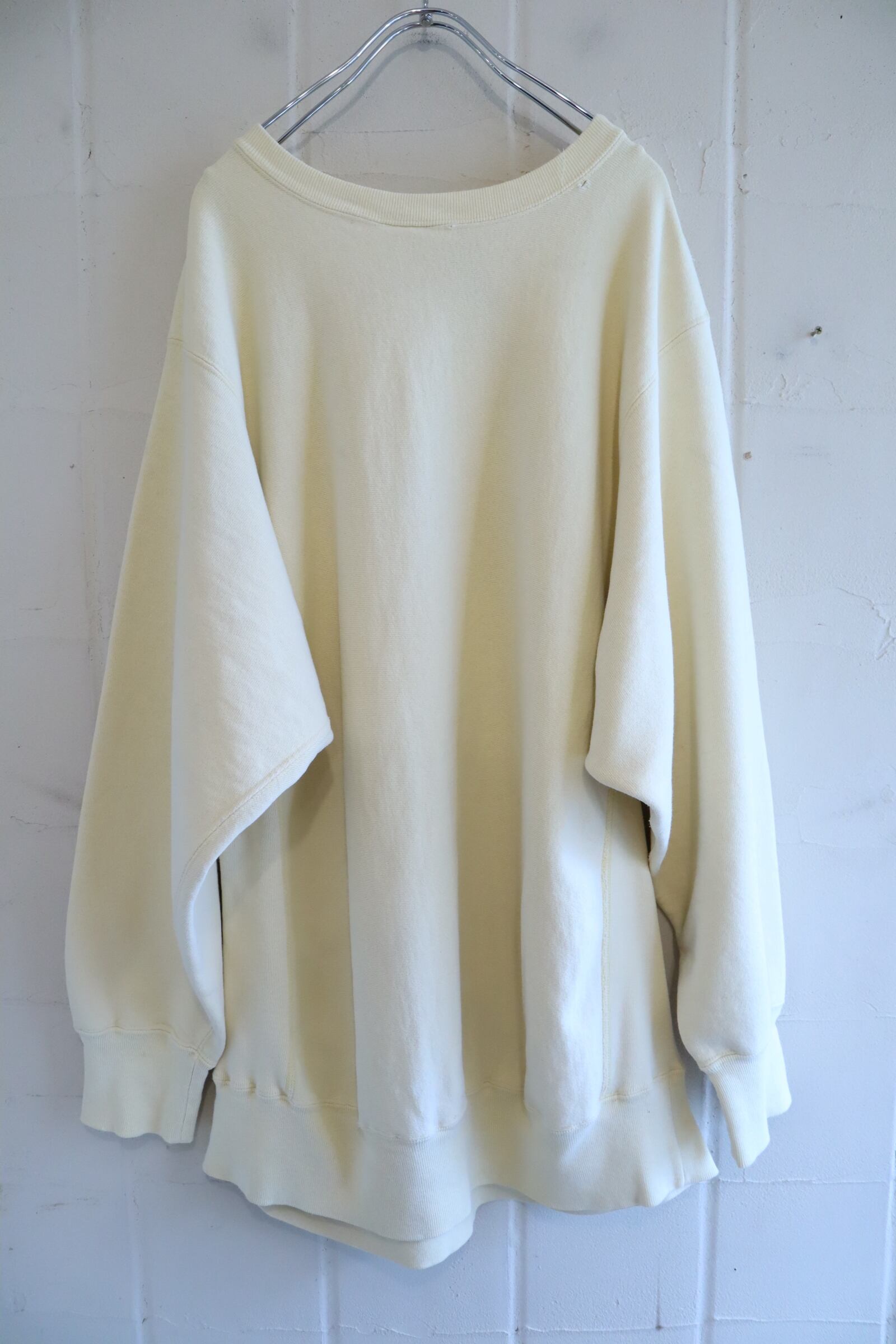 80s creamyellow plain reverse weave sweat [l-5298]