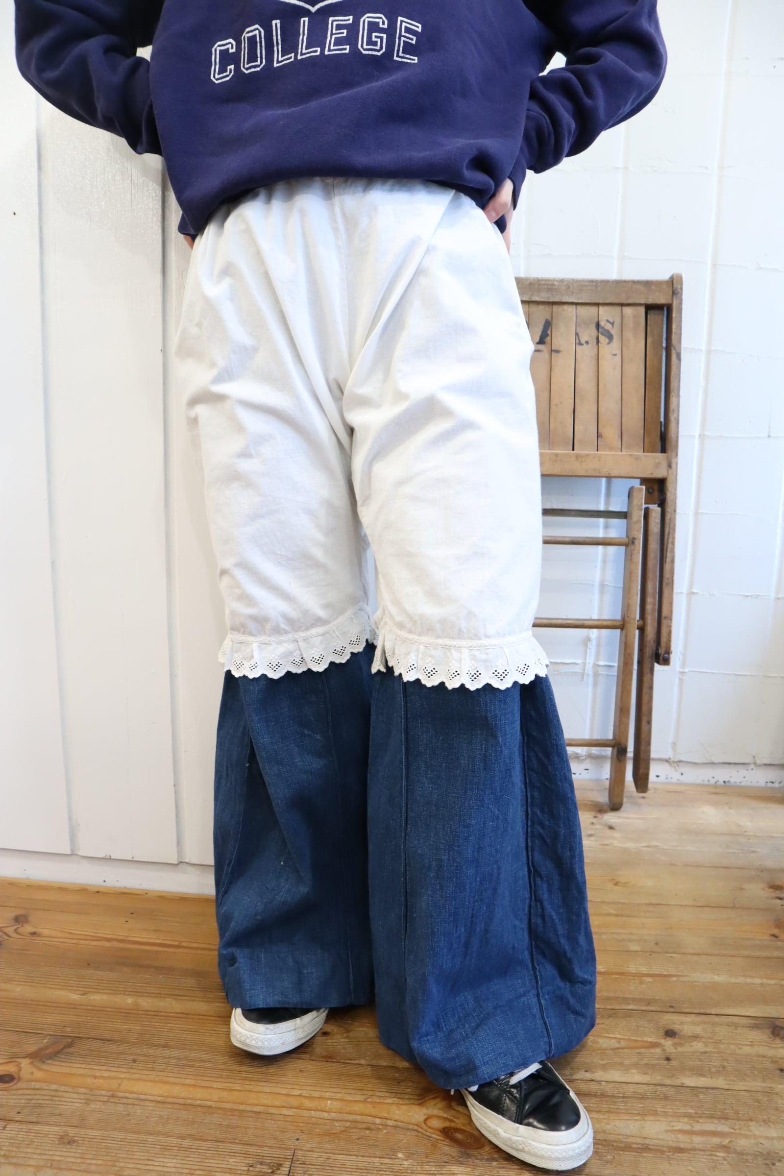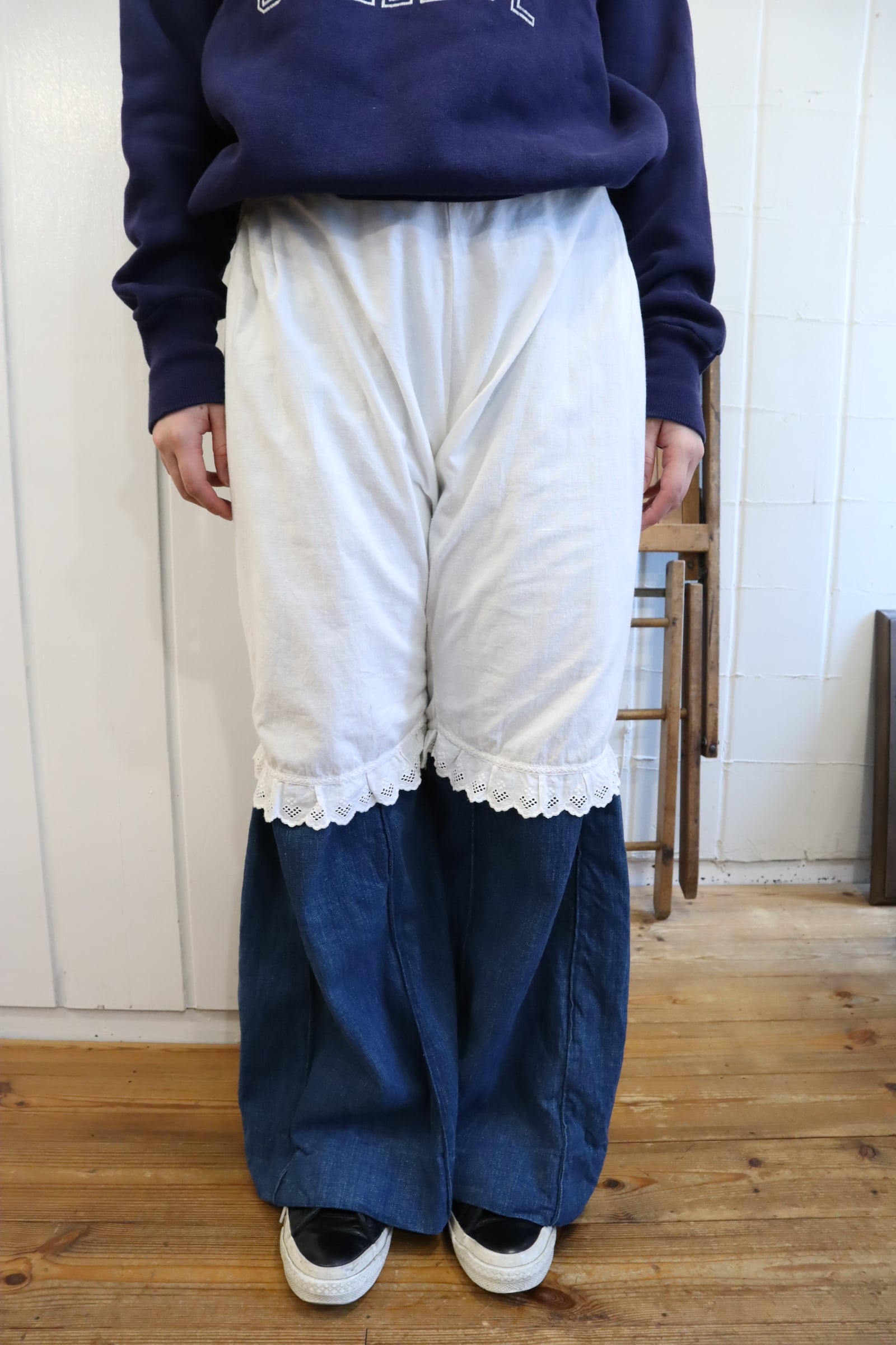 ハートに見えるアイレットレースが可愛いアンティークのドロワーズパンツ。