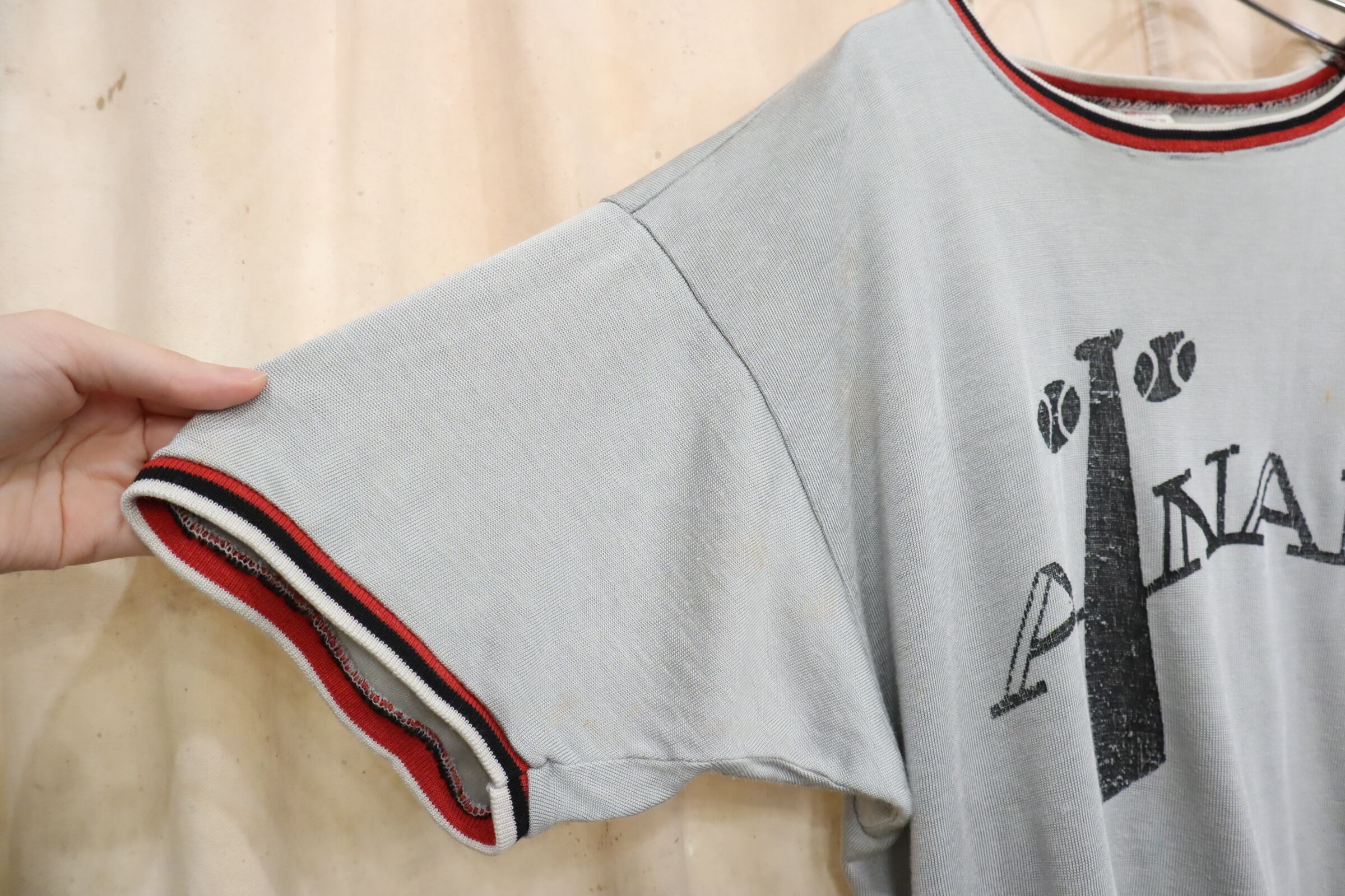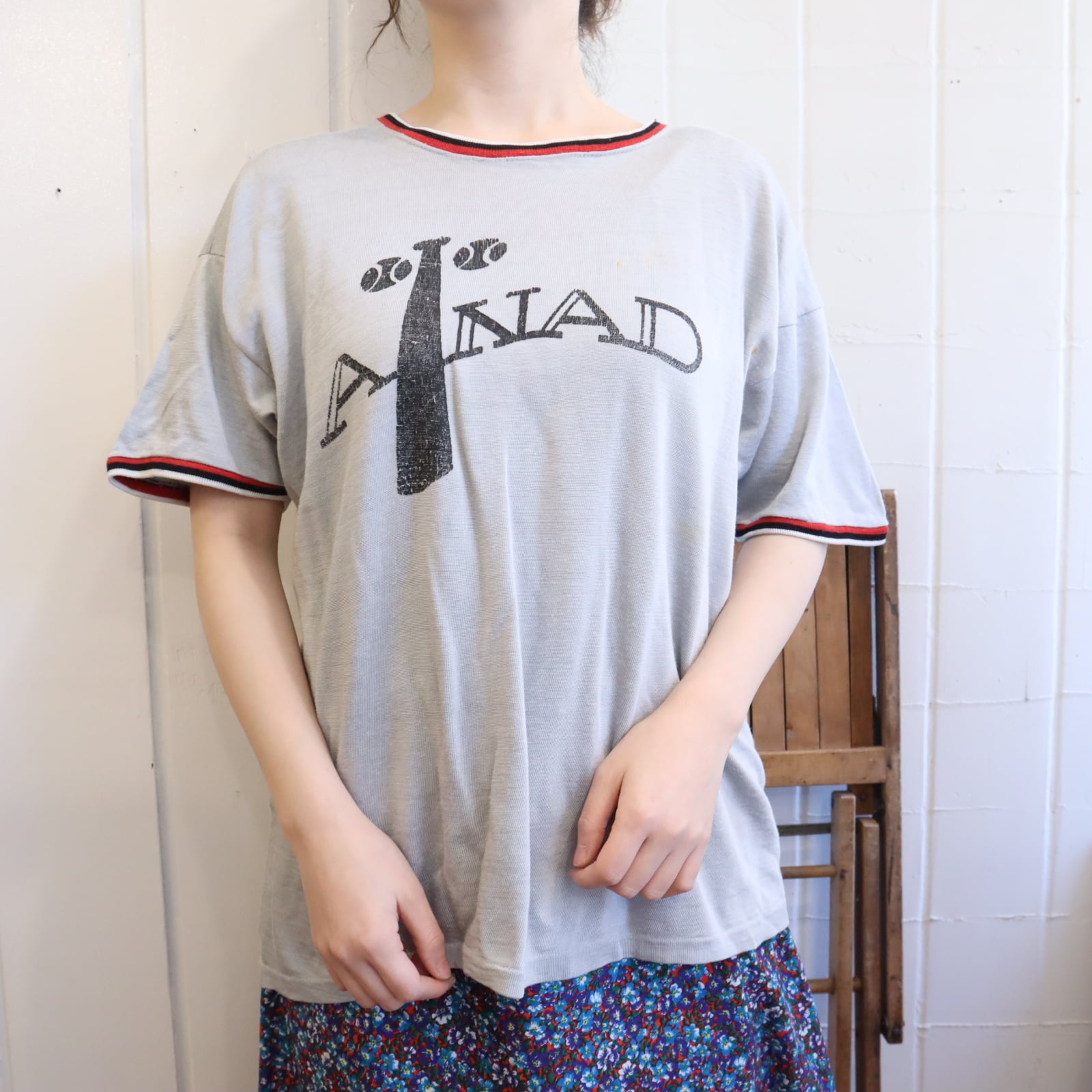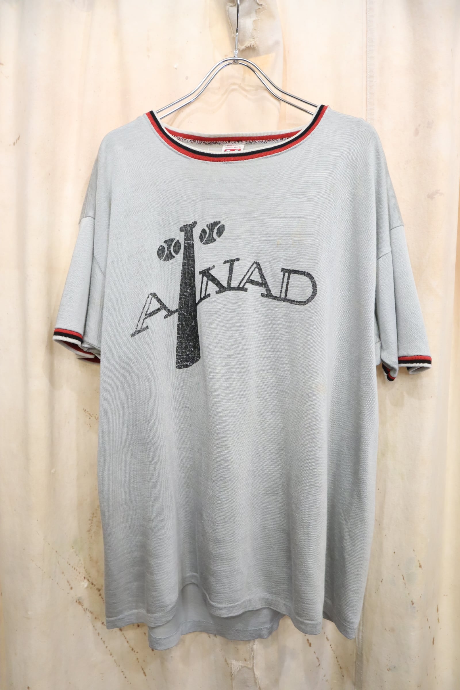 60s made in USA gray×black×red baseball T-shirt [k-5310]