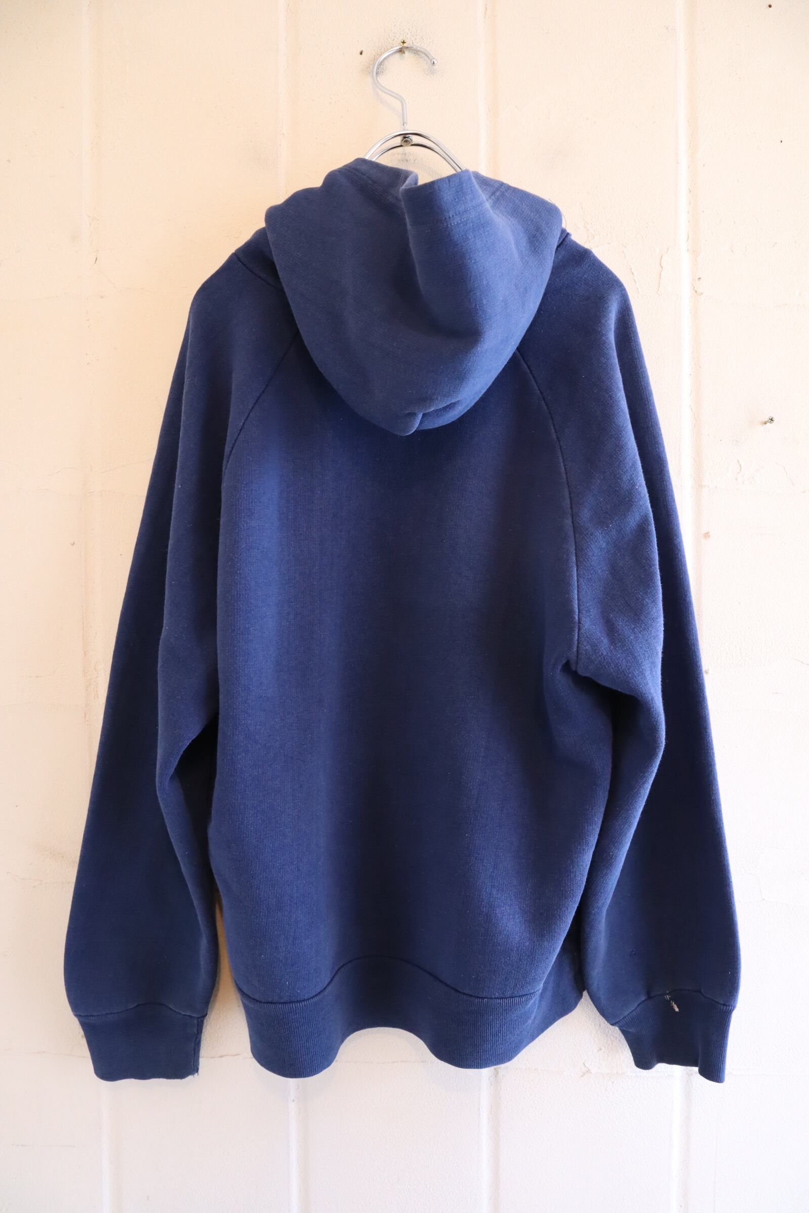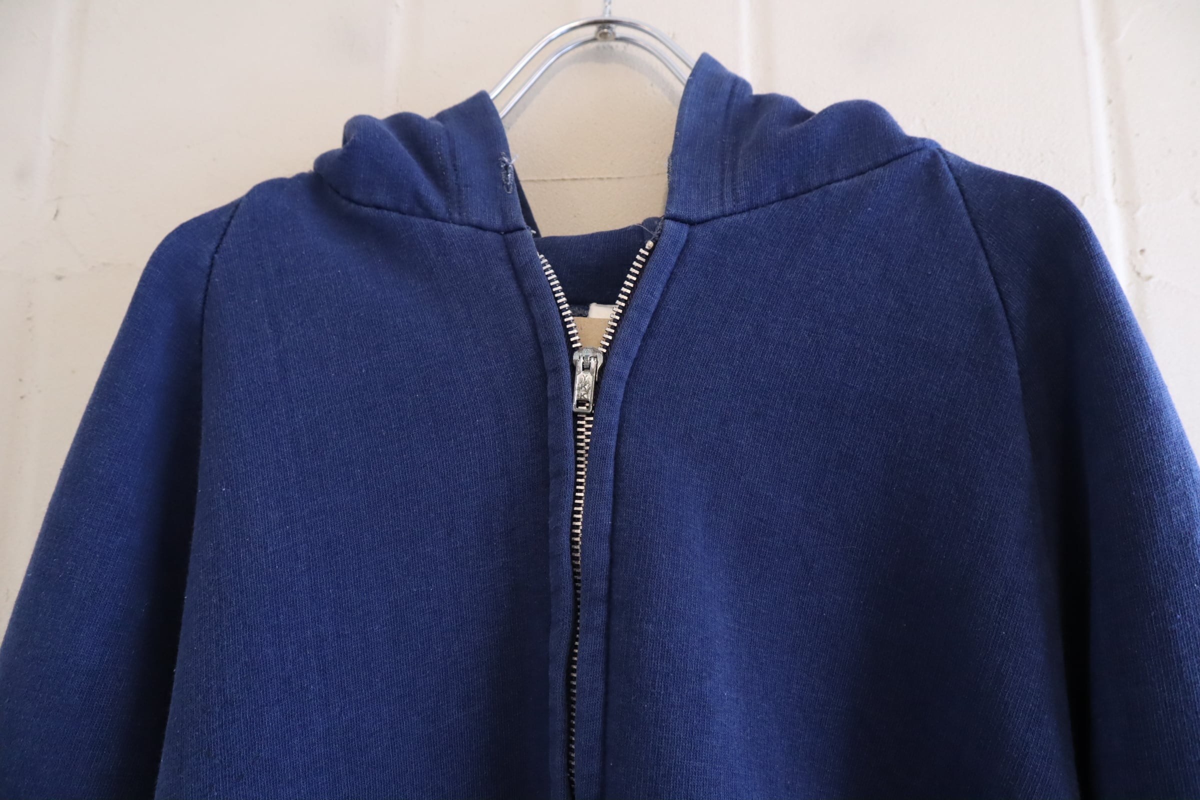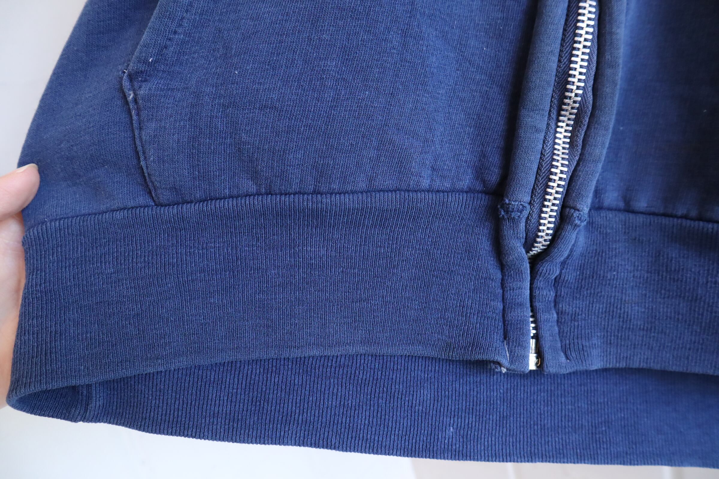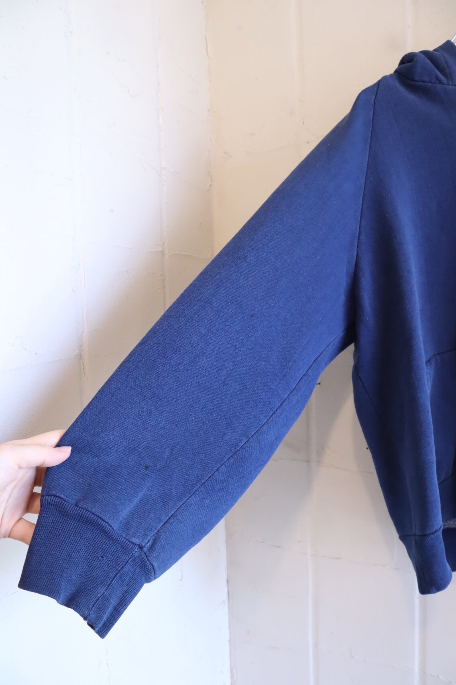 少し退色したネイビーのお色味が可愛いジップパーカー。