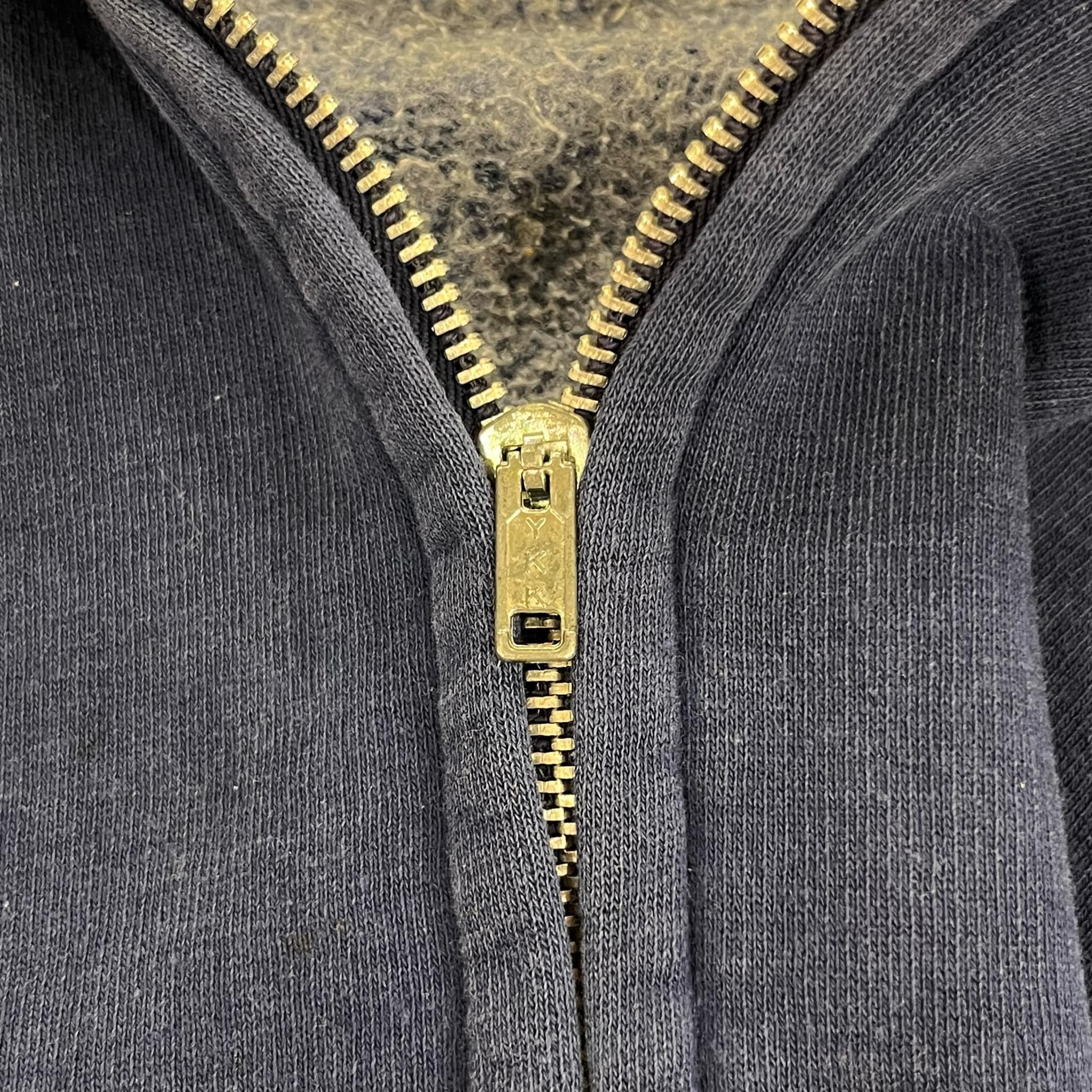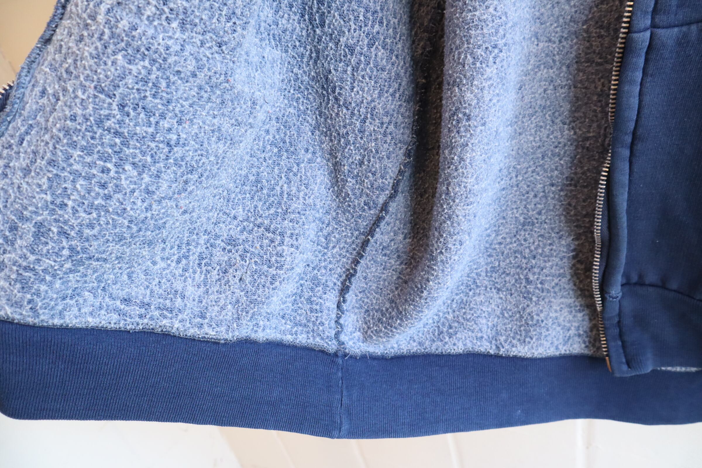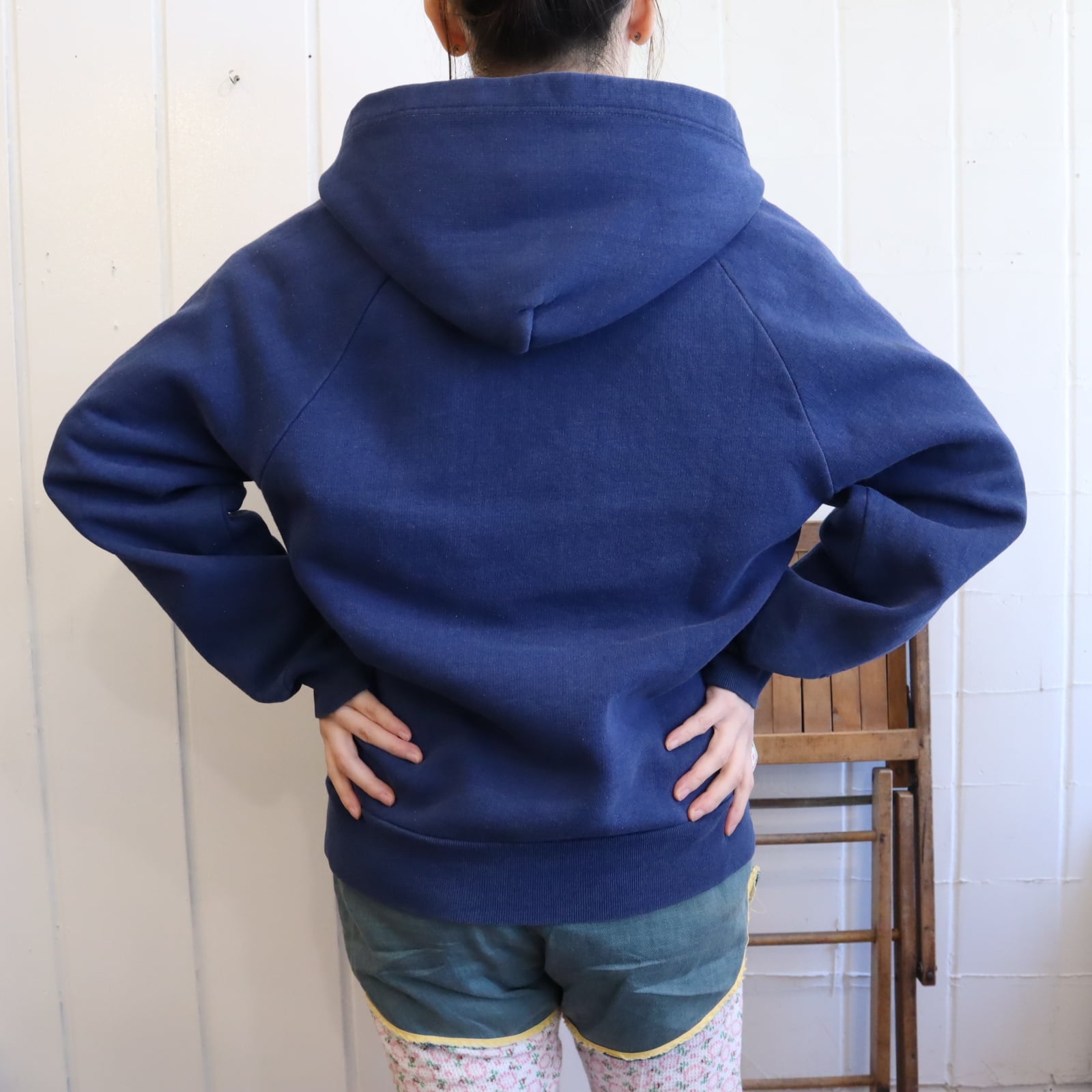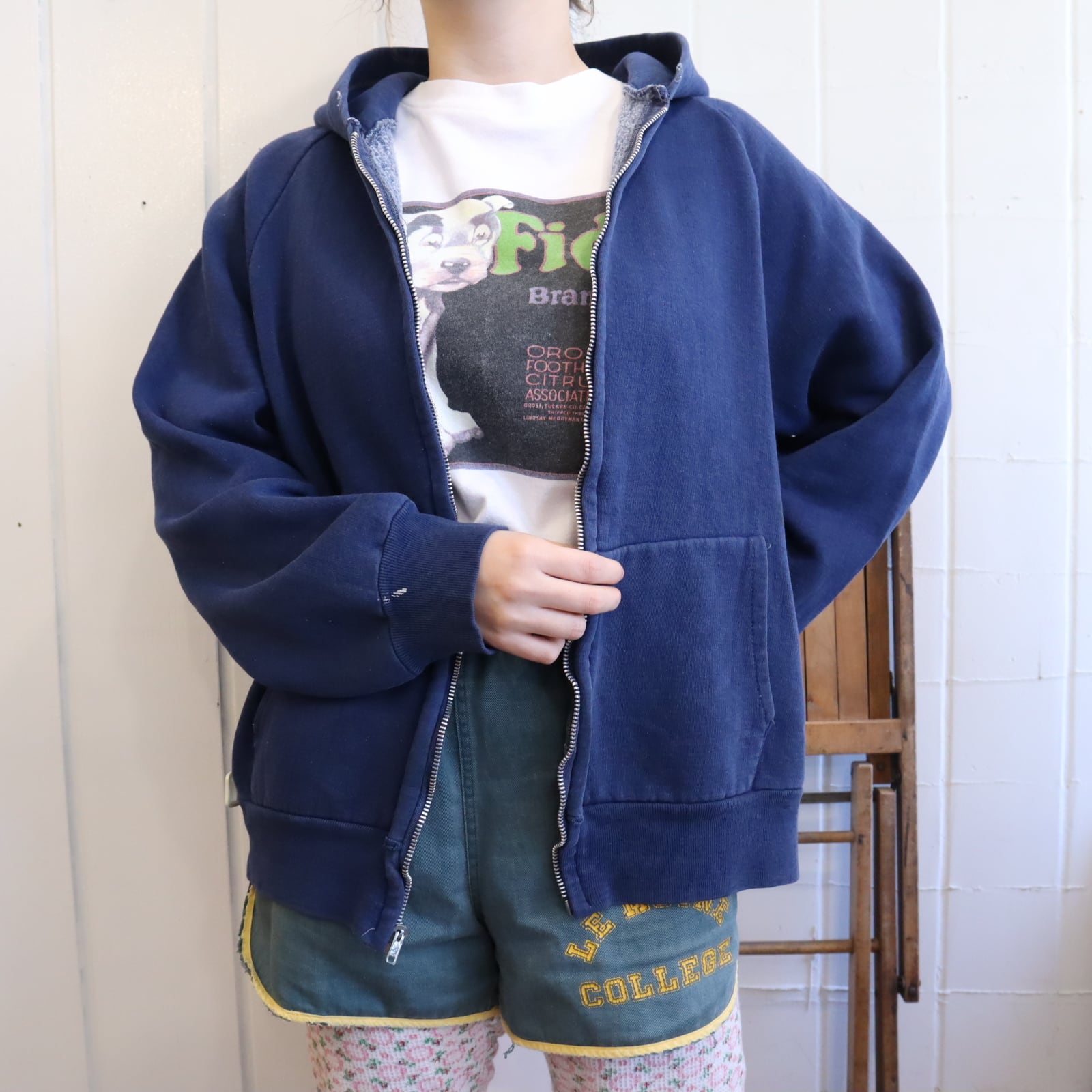 少し退色したネイビーのお色味が可愛いジップパーカー。