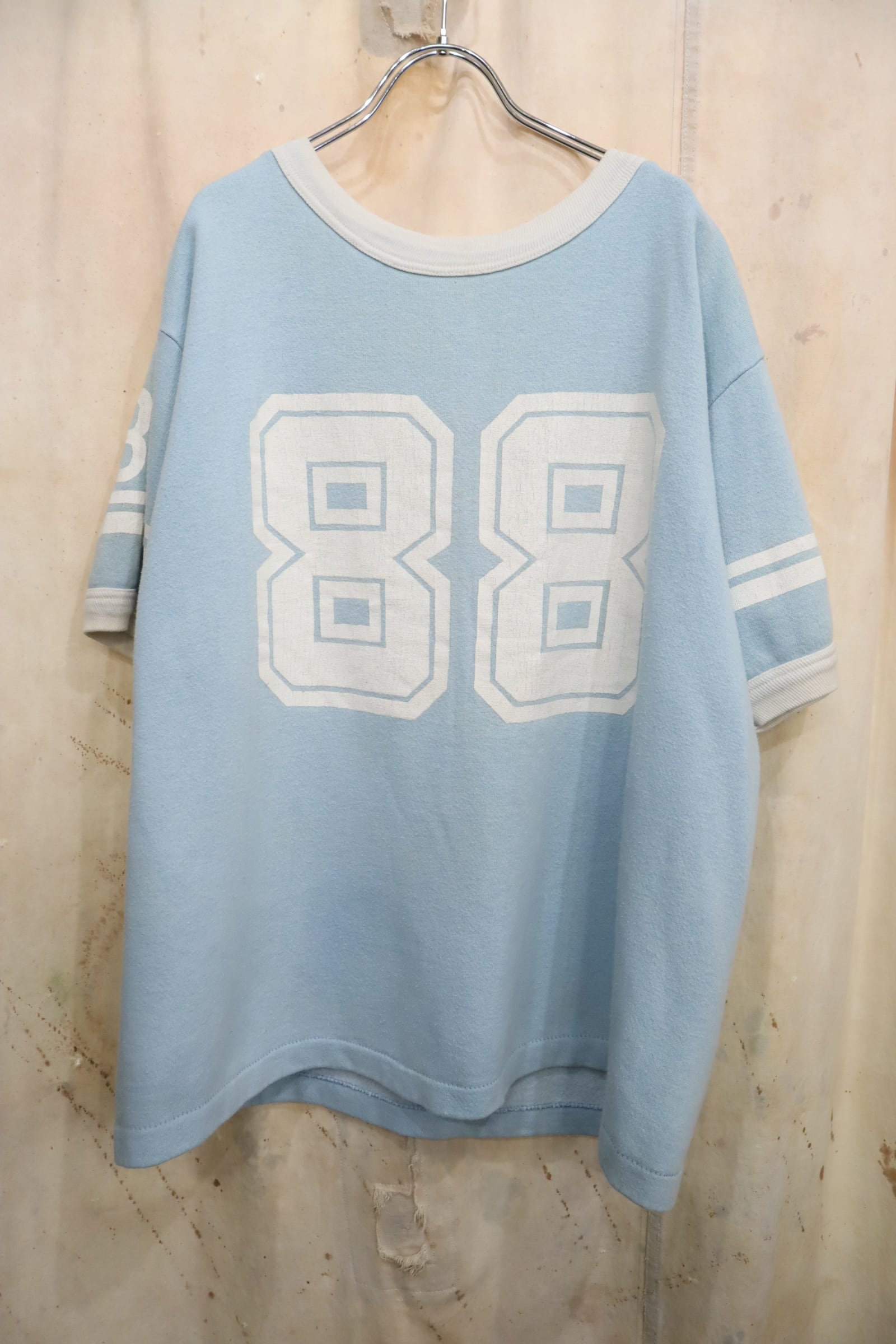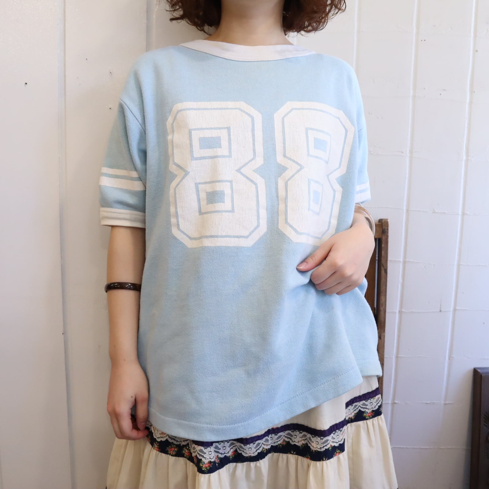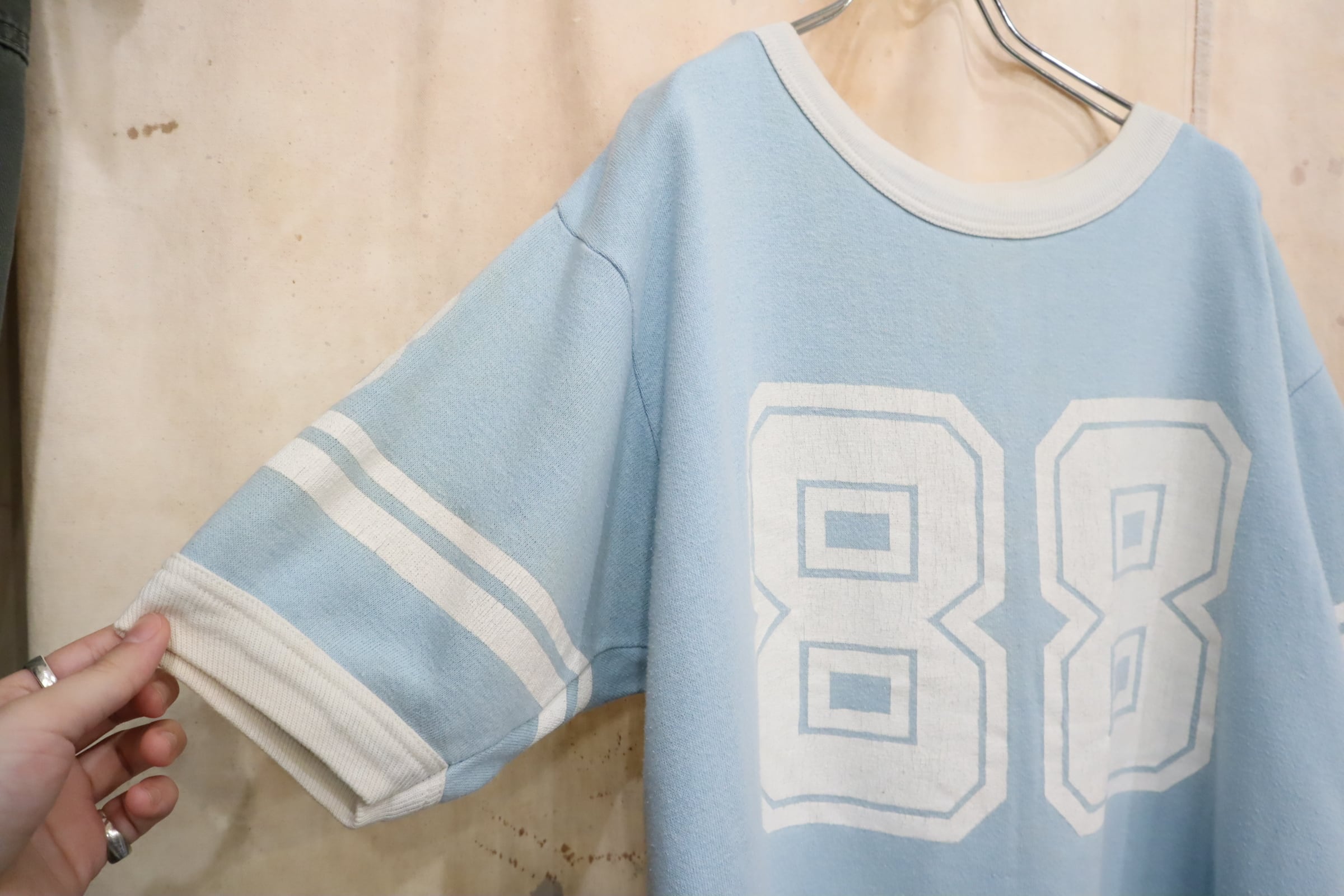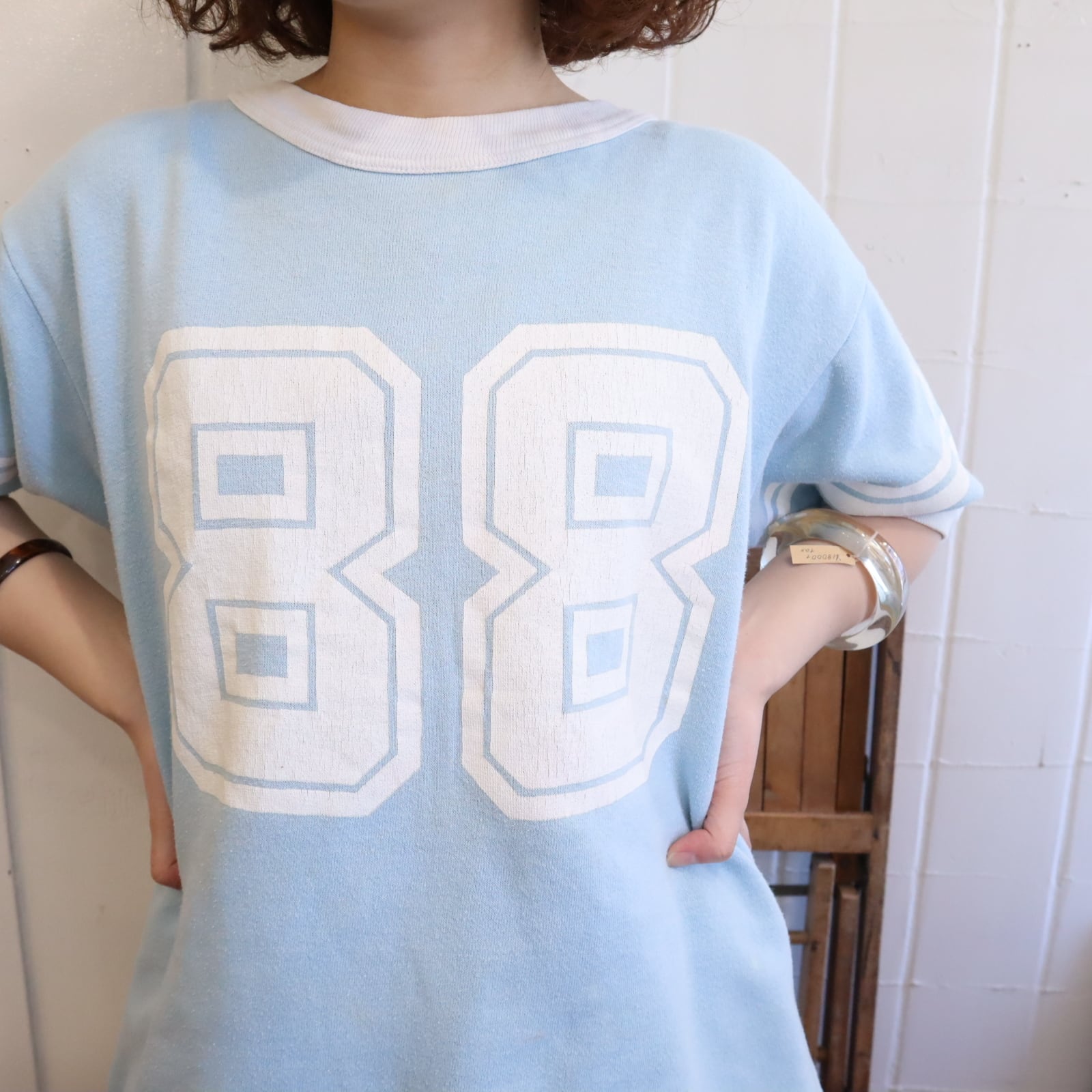 70s pailblue×white numbering short sleeve sweat [k-5314]