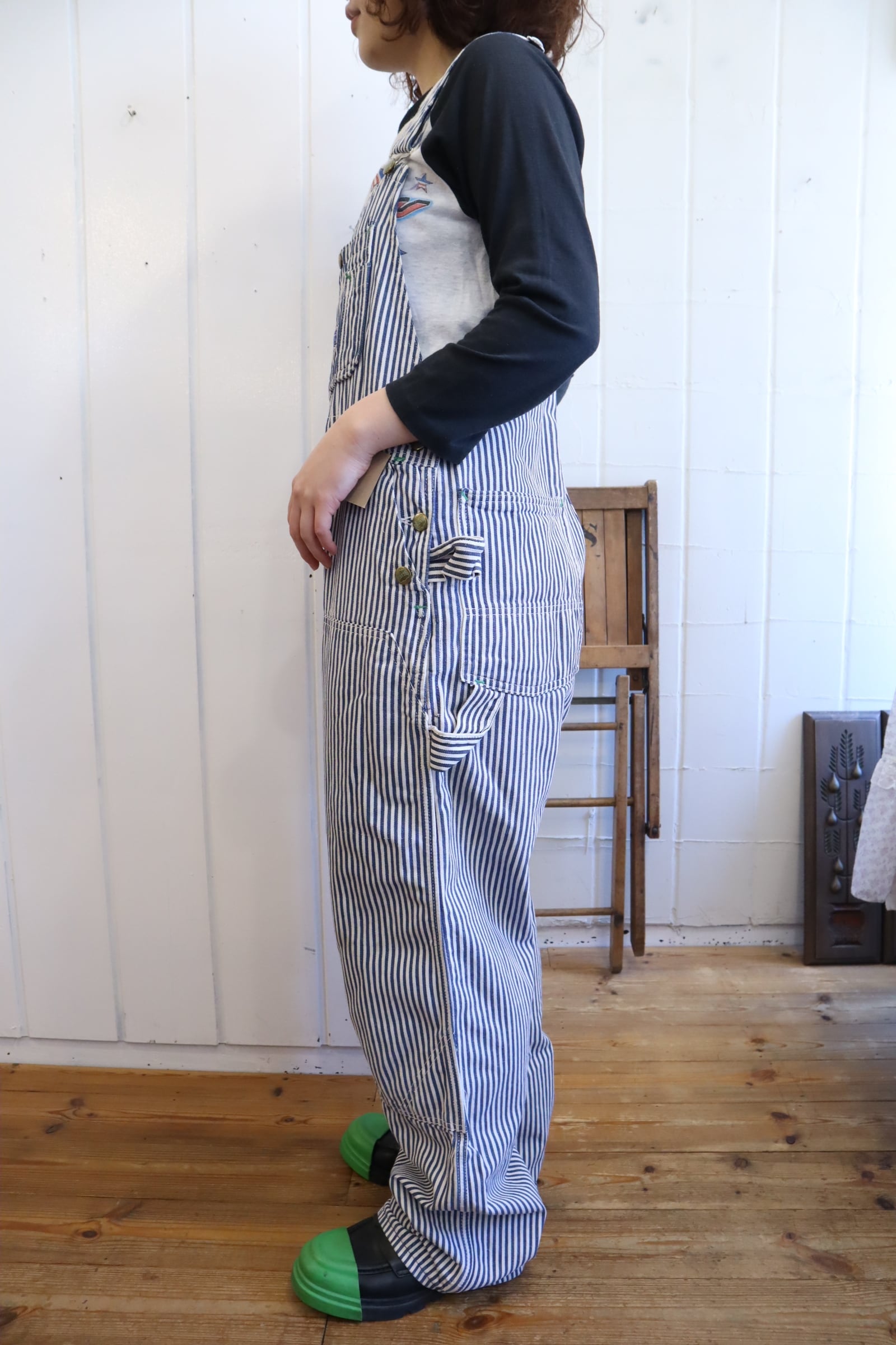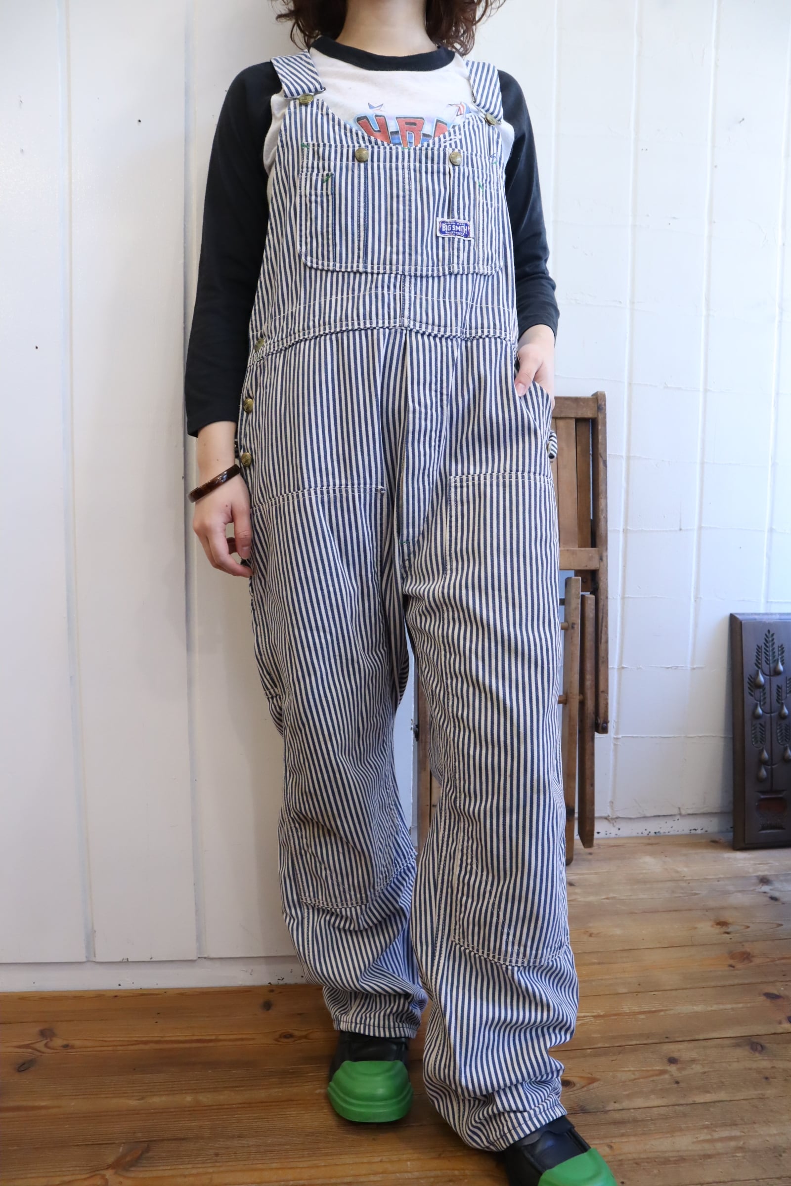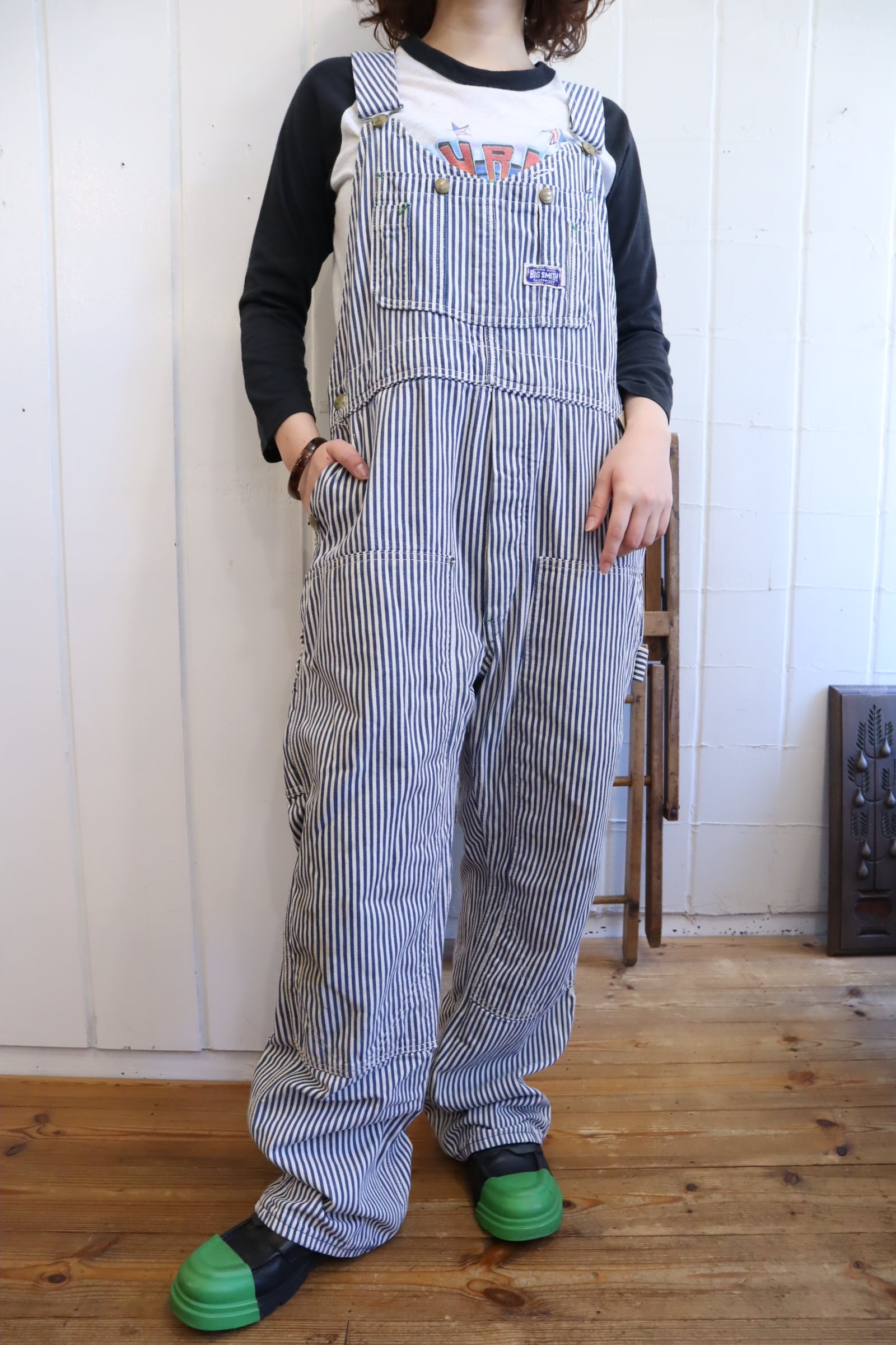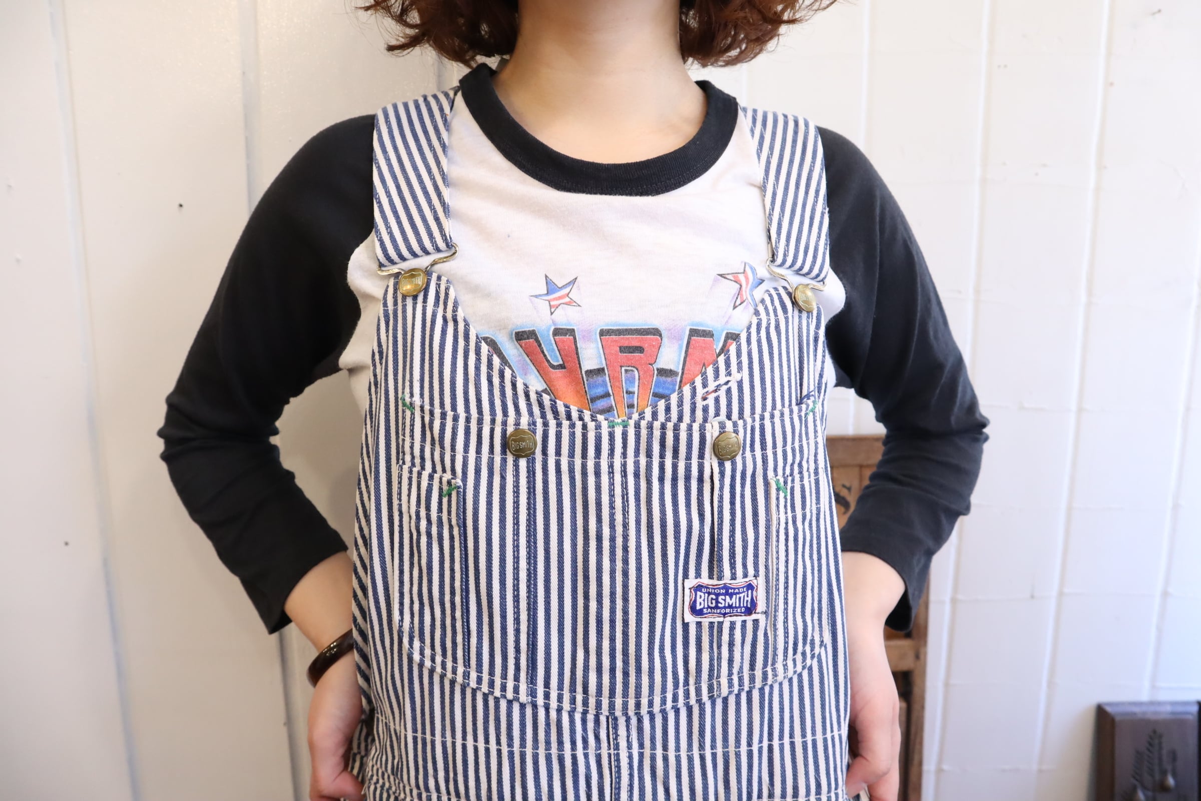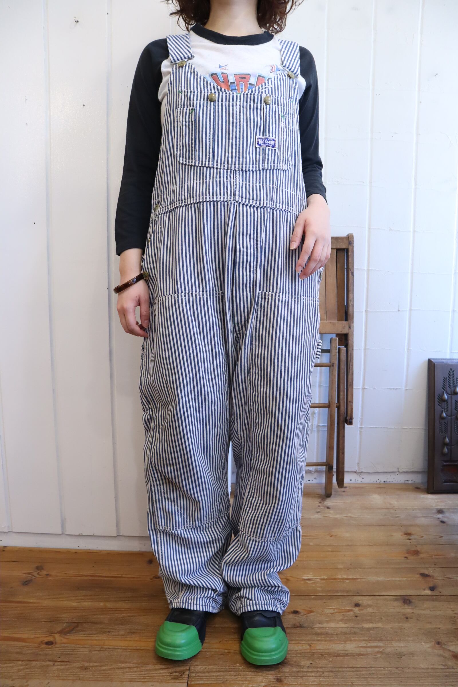 前立てのシルエットがとても可愛い70-80s BIG SMITHのヒッコリーオーバーオール*