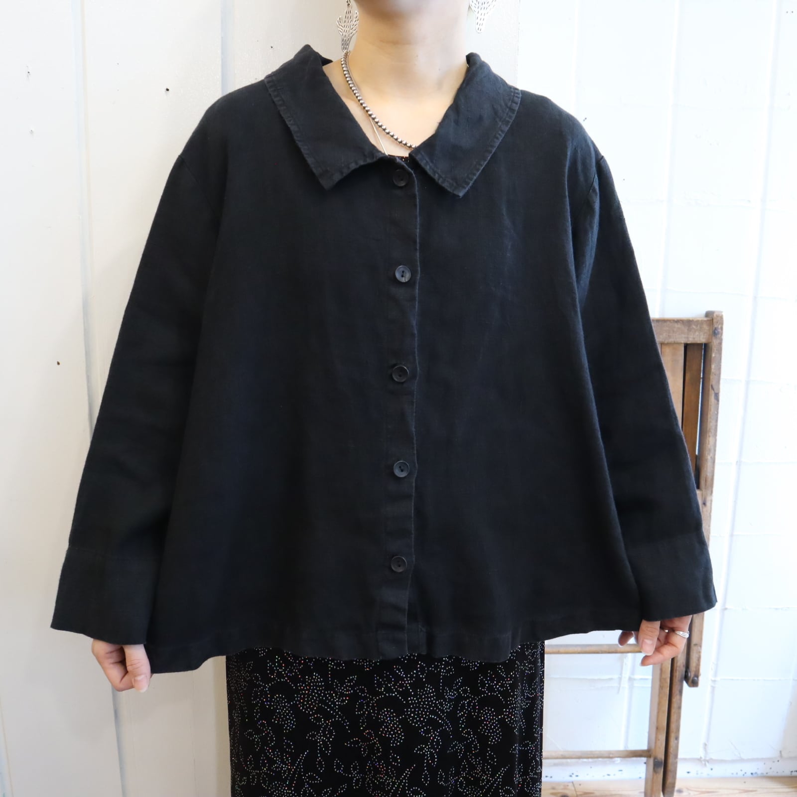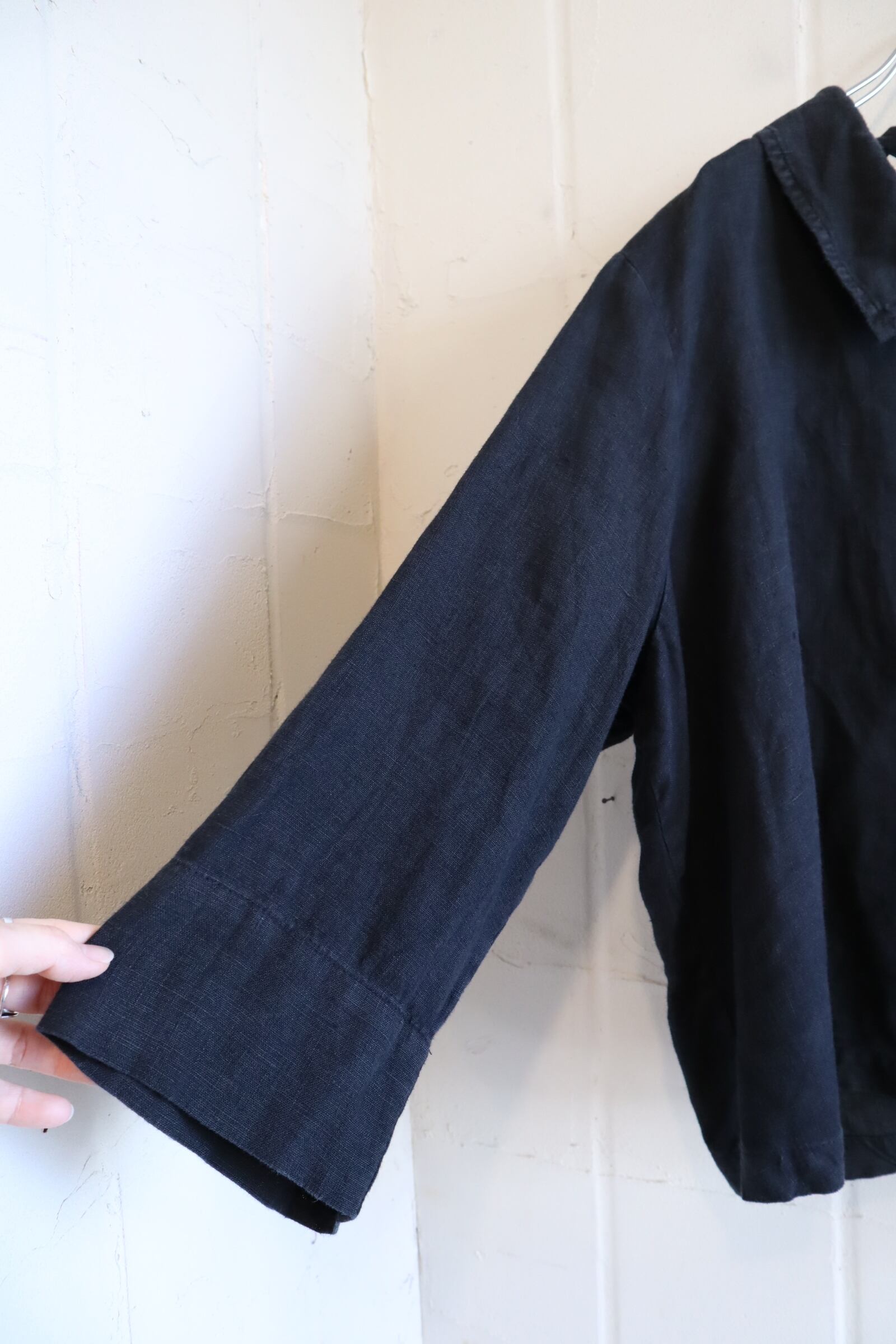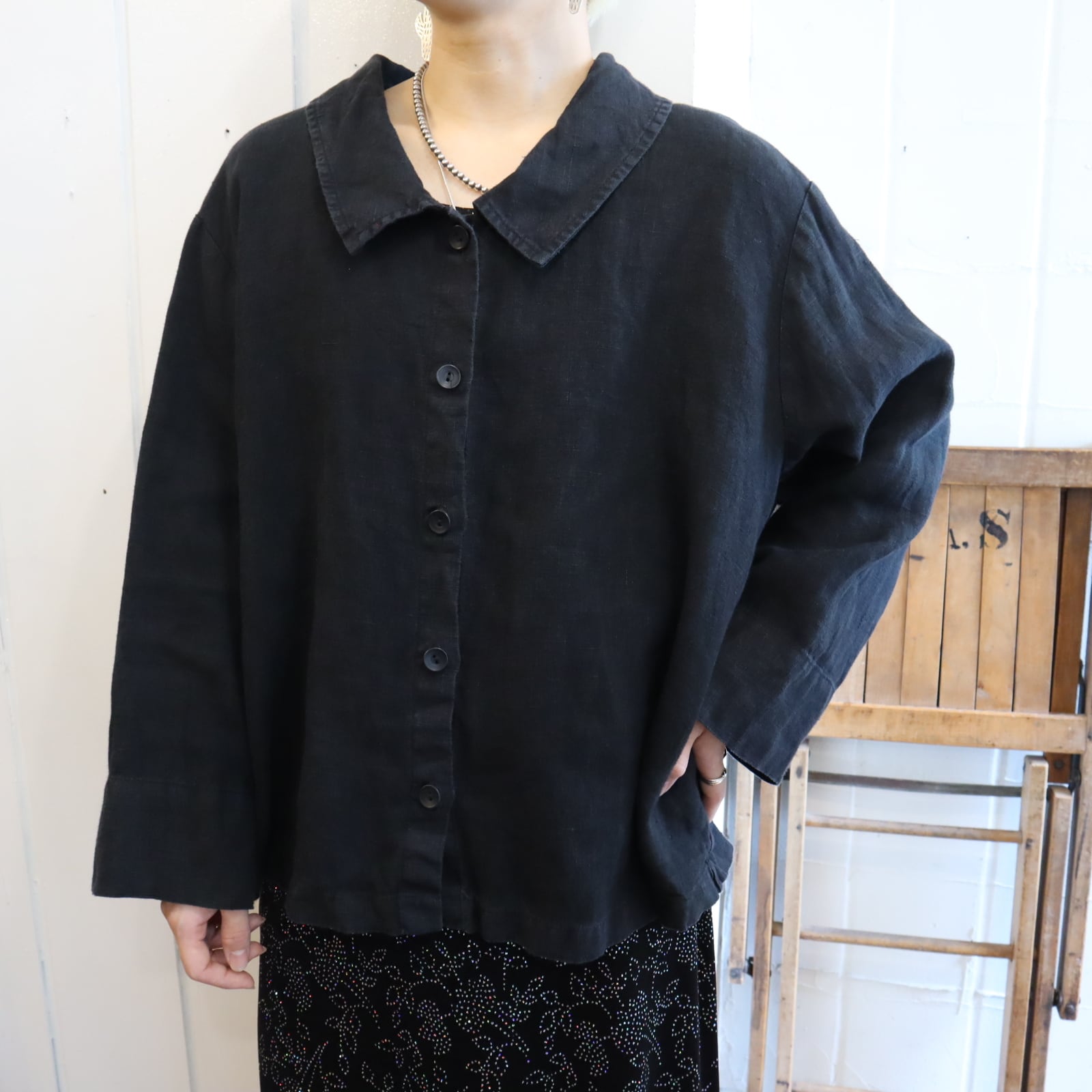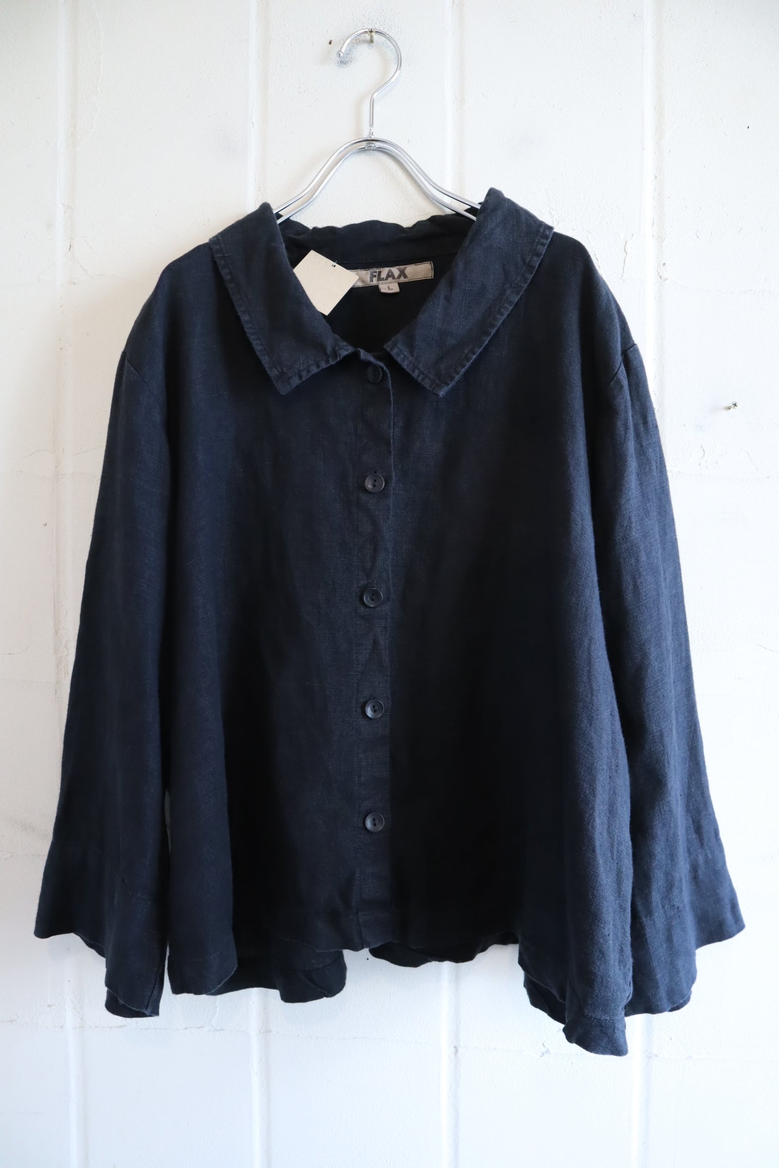 FLAX black plain linen shirt [l-5319]
