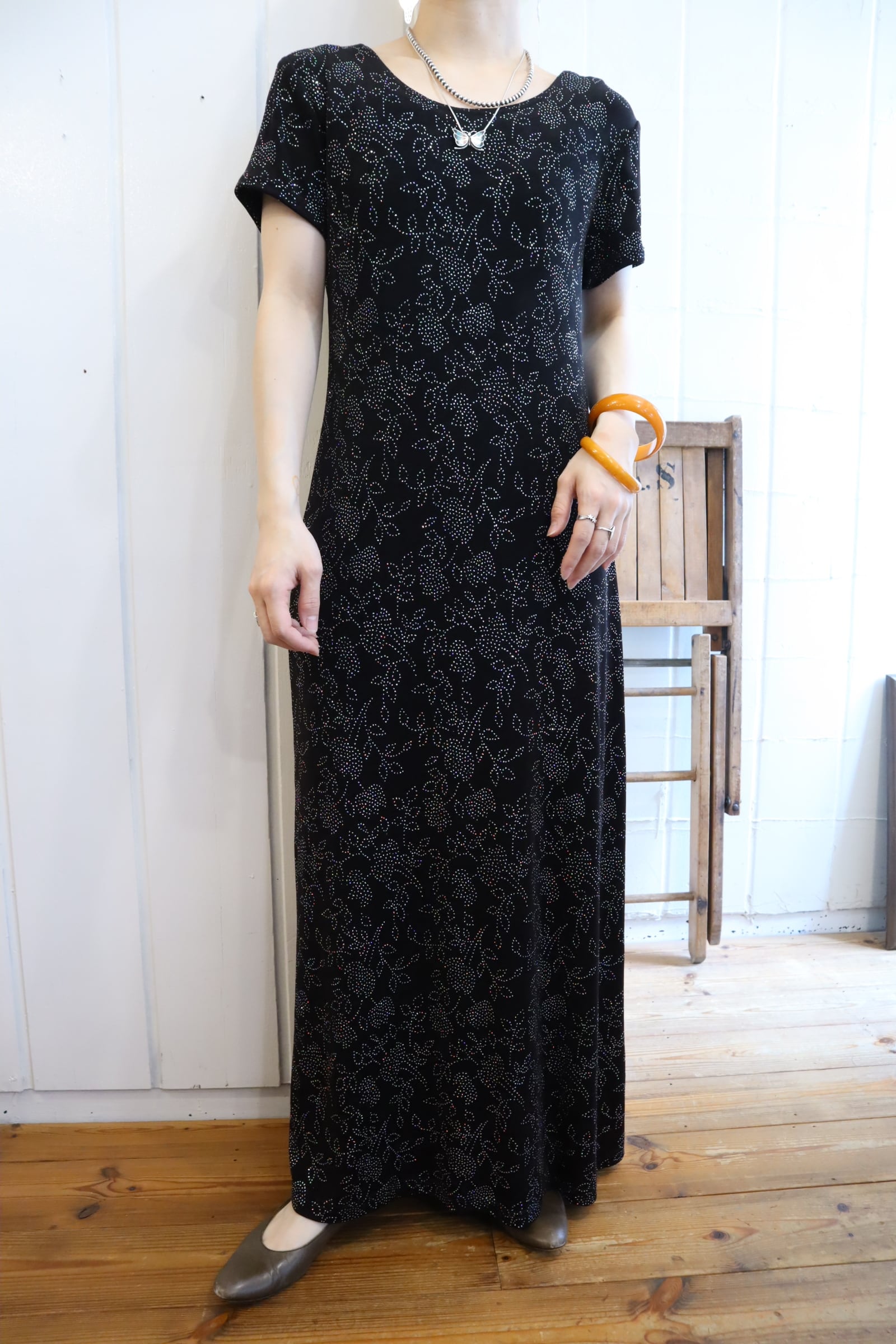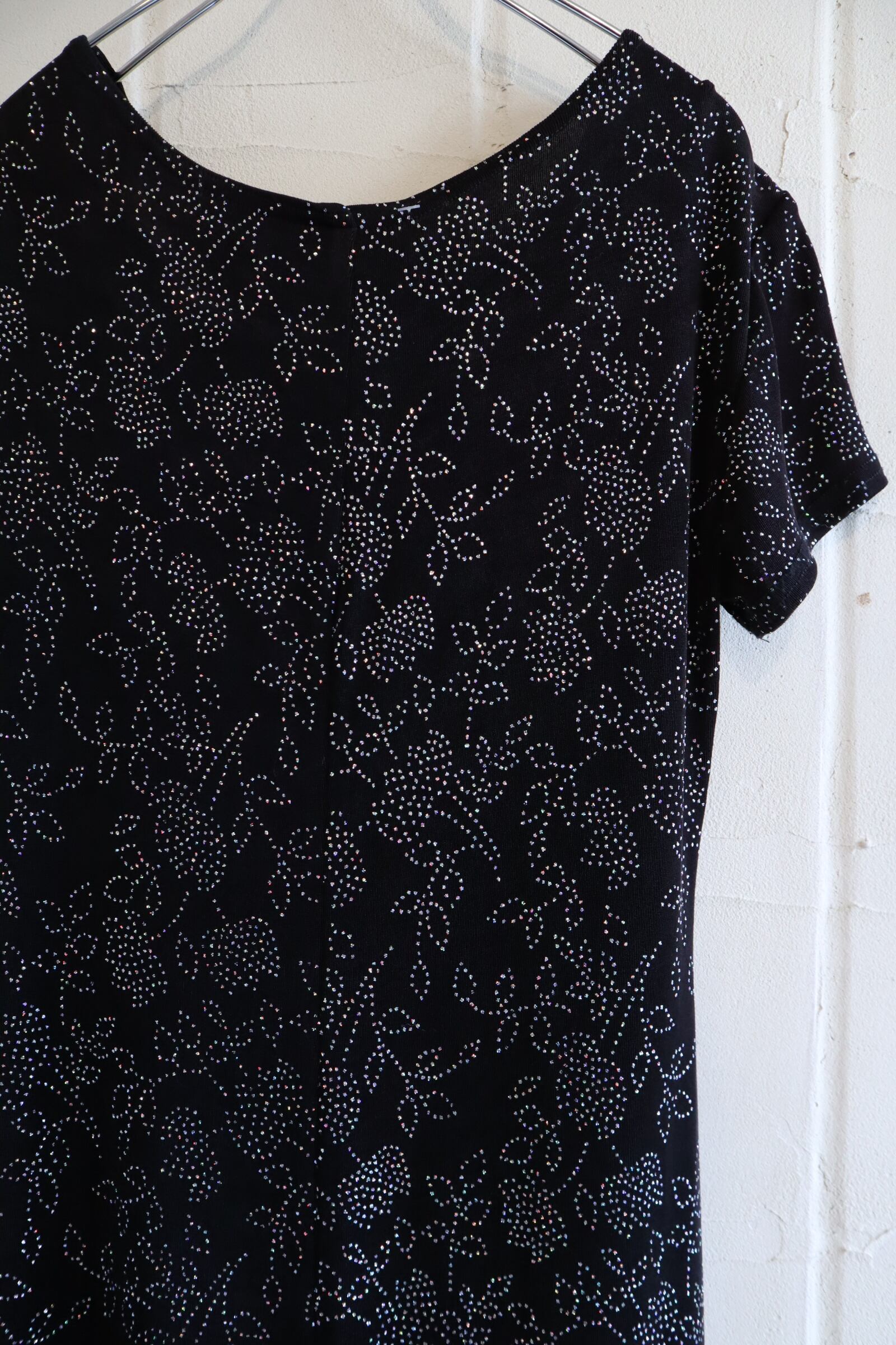 made in USA black×silver tulip pattern glitter dress [l-5320]