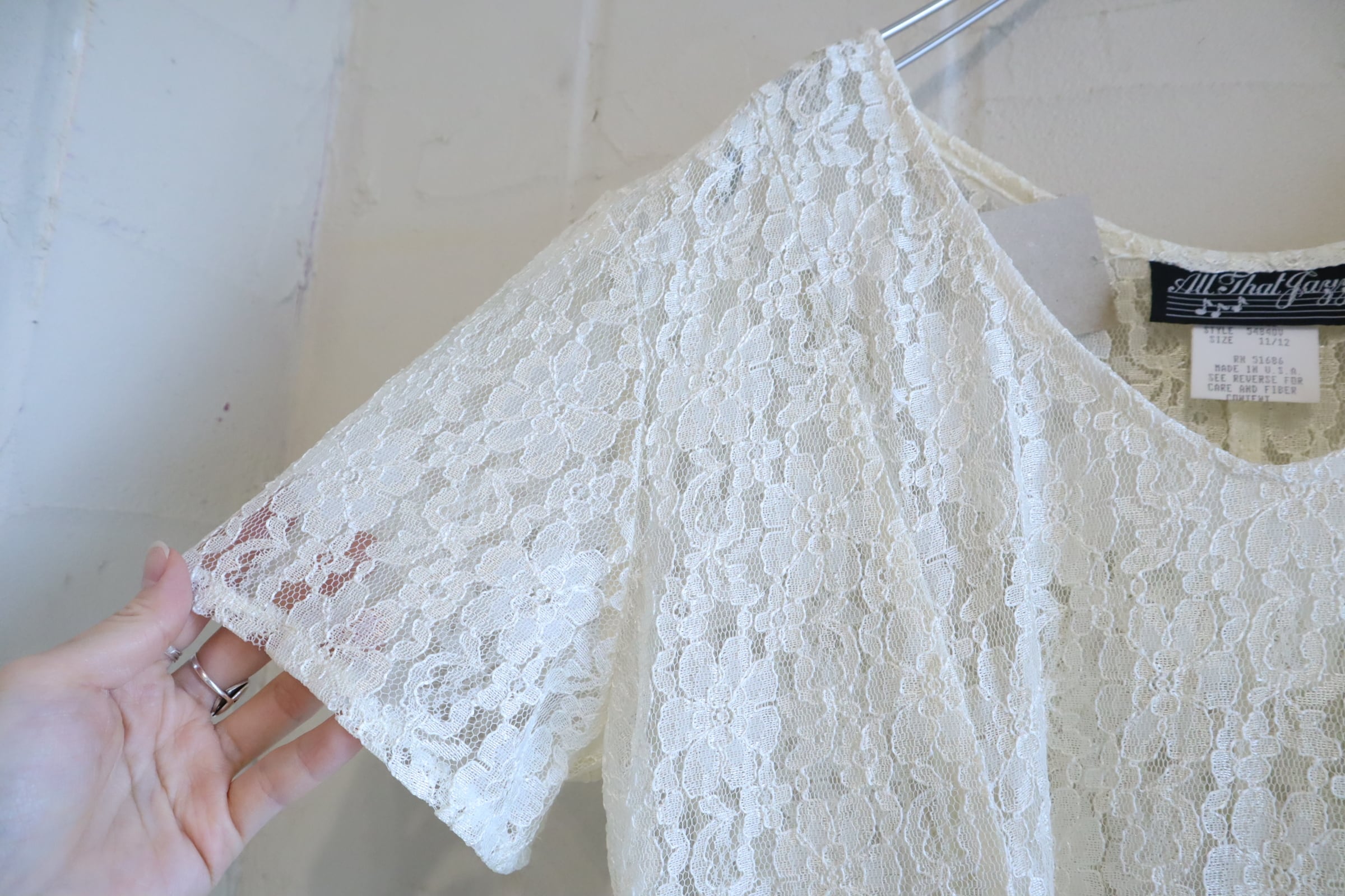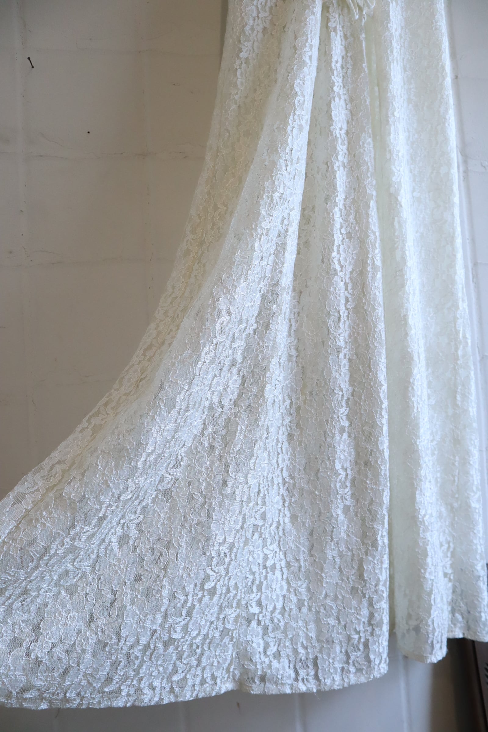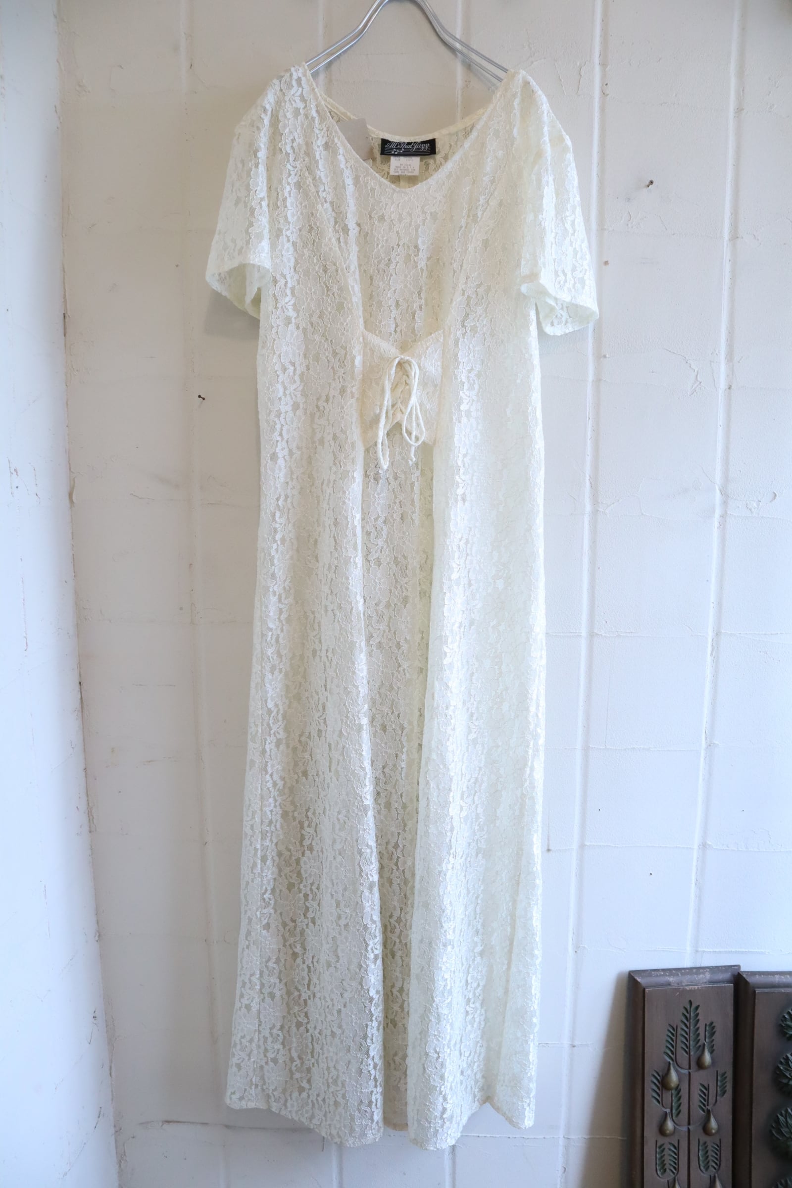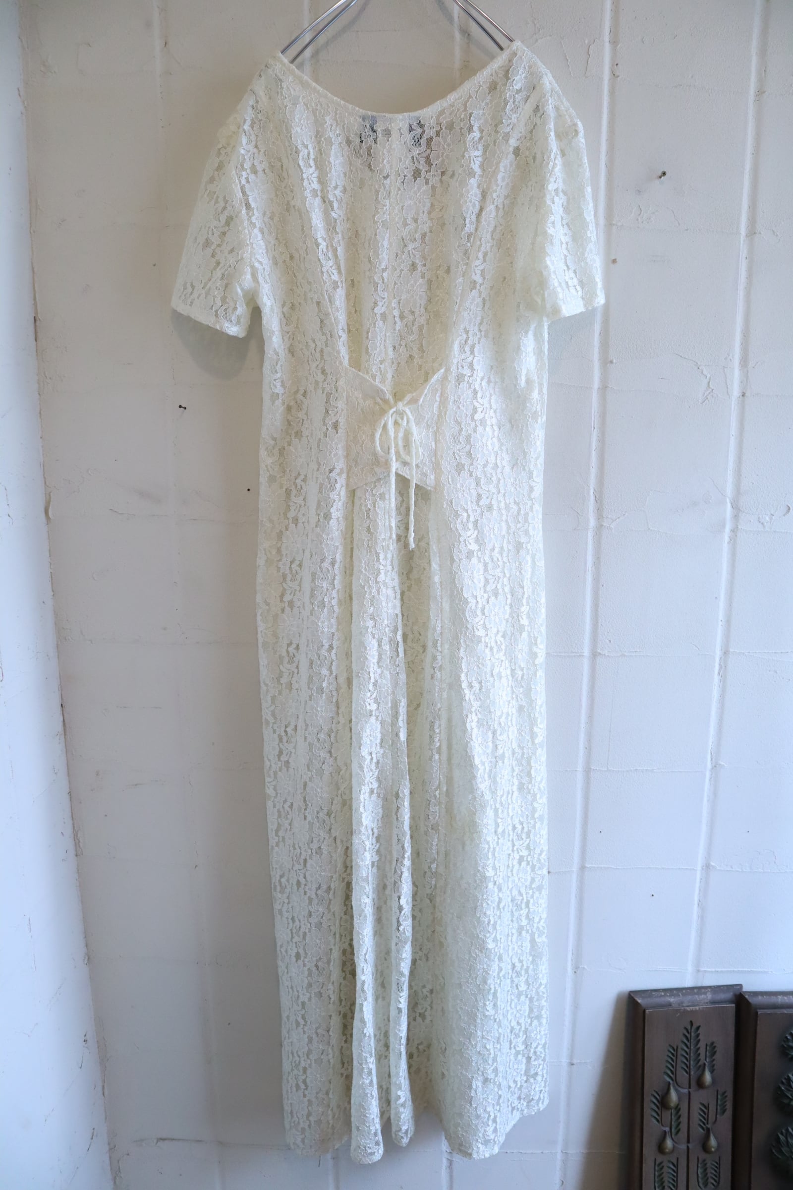 made in USA ivory total lace laceup short sleeve dress [l-5325]