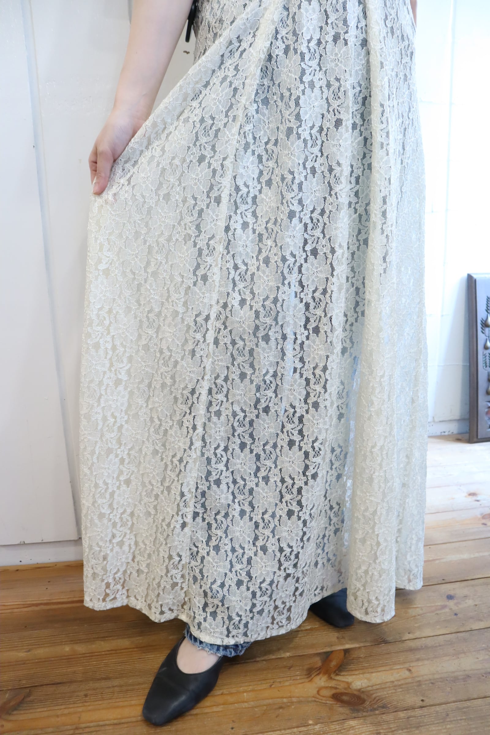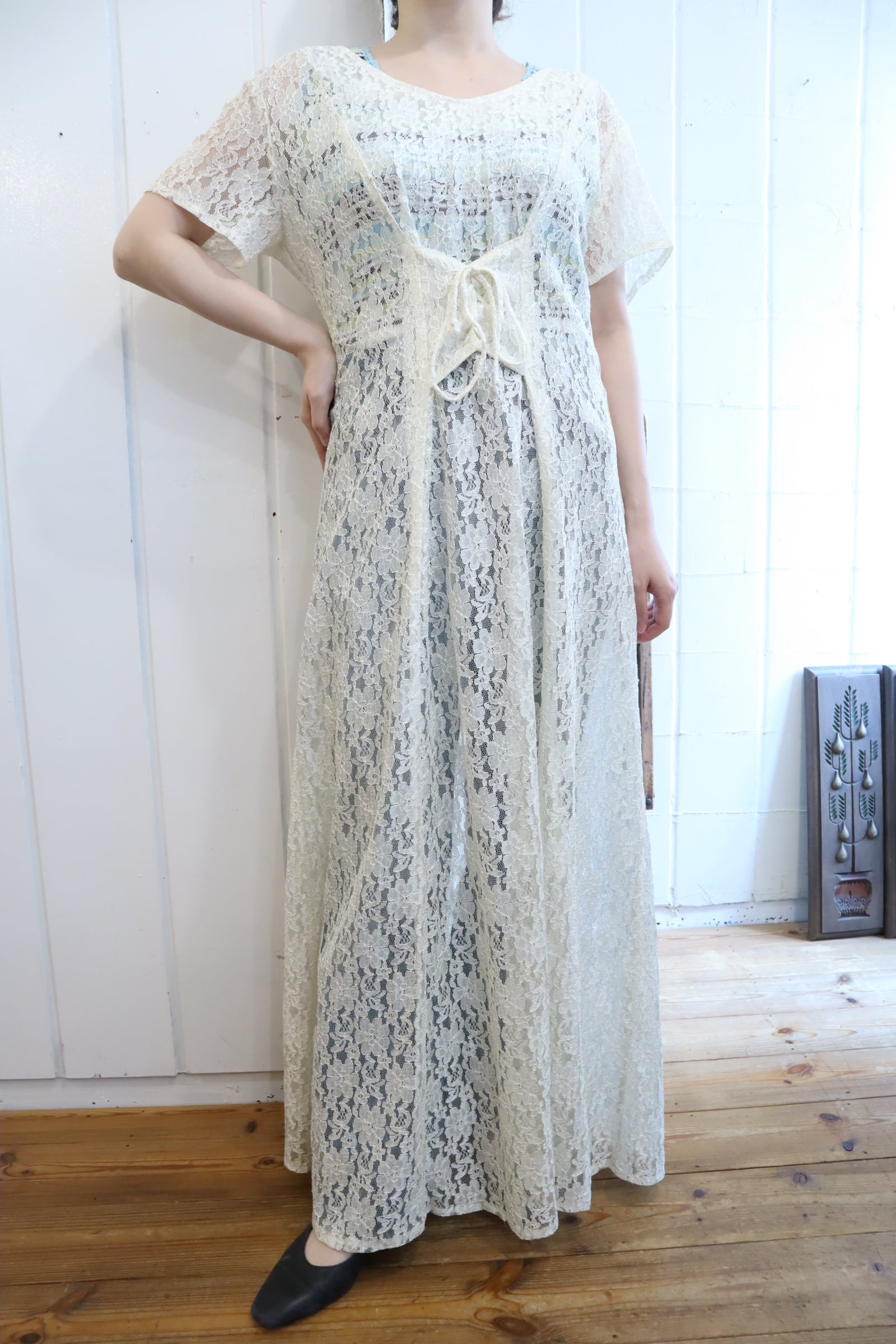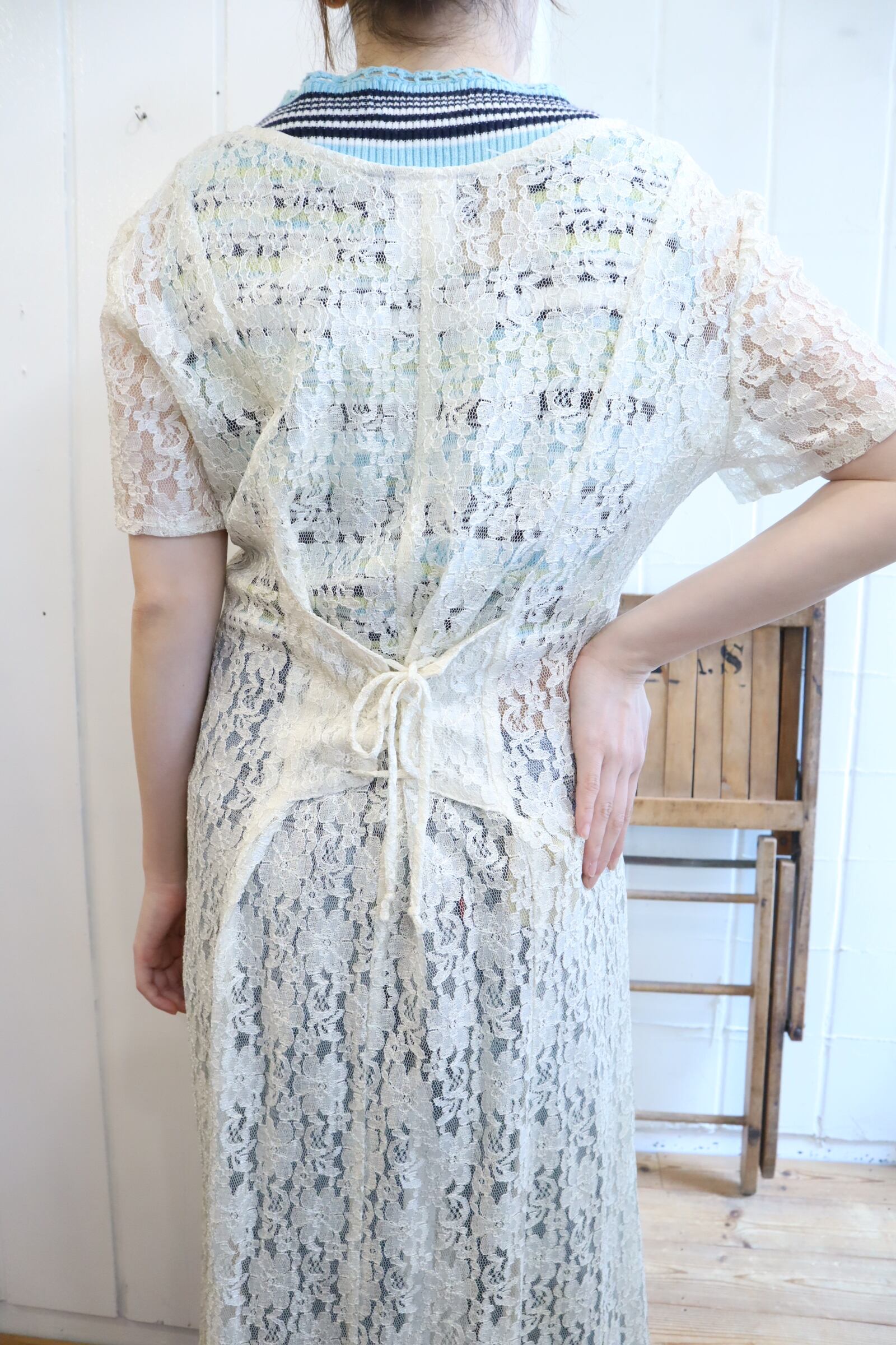 レースアップデザインが可愛い総レースドレス。