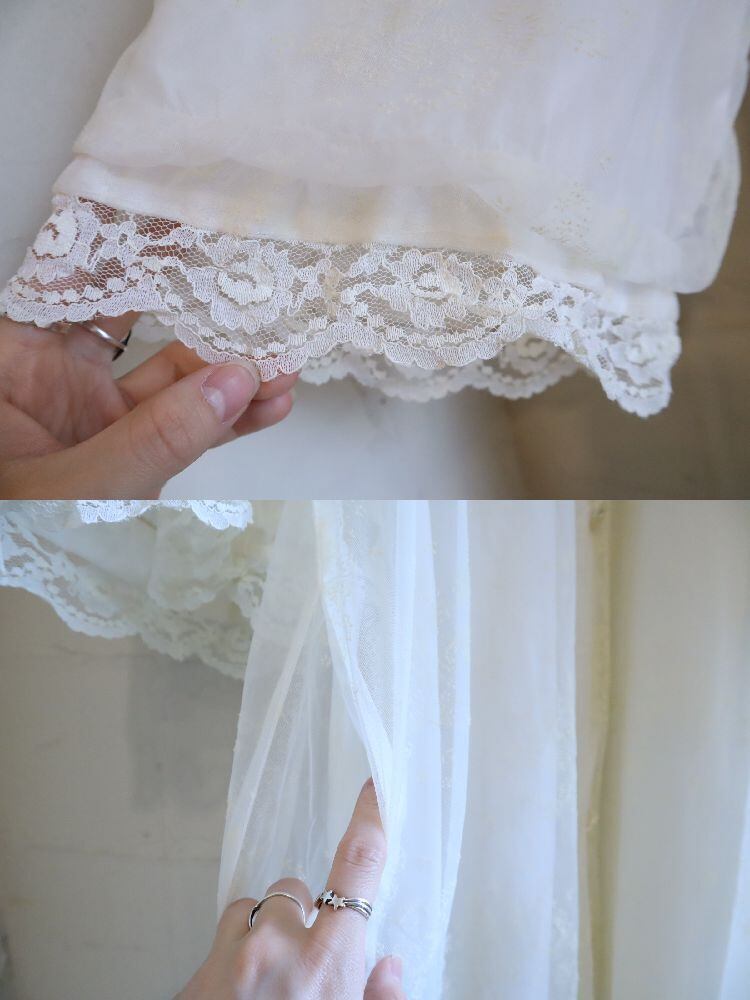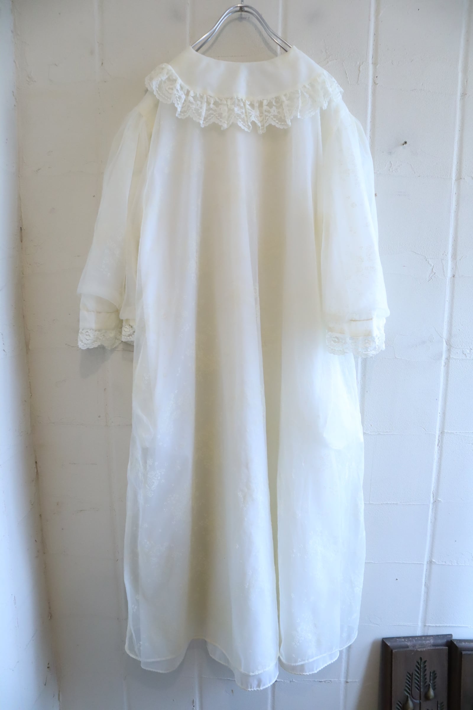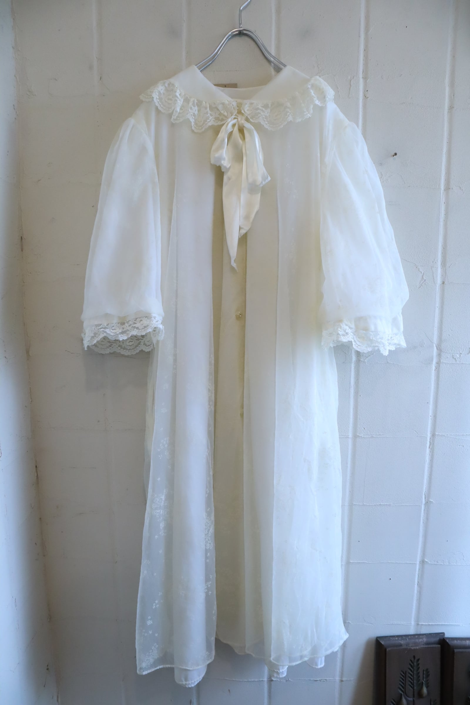 made in USA white flower flocky print lingerie gown [l-5326]
