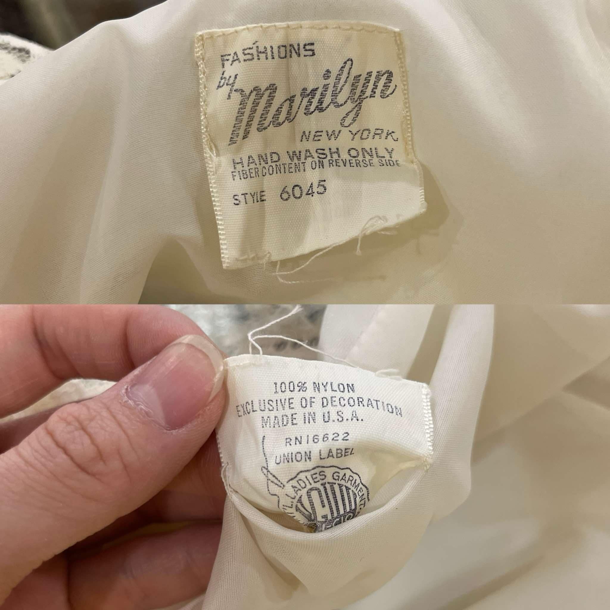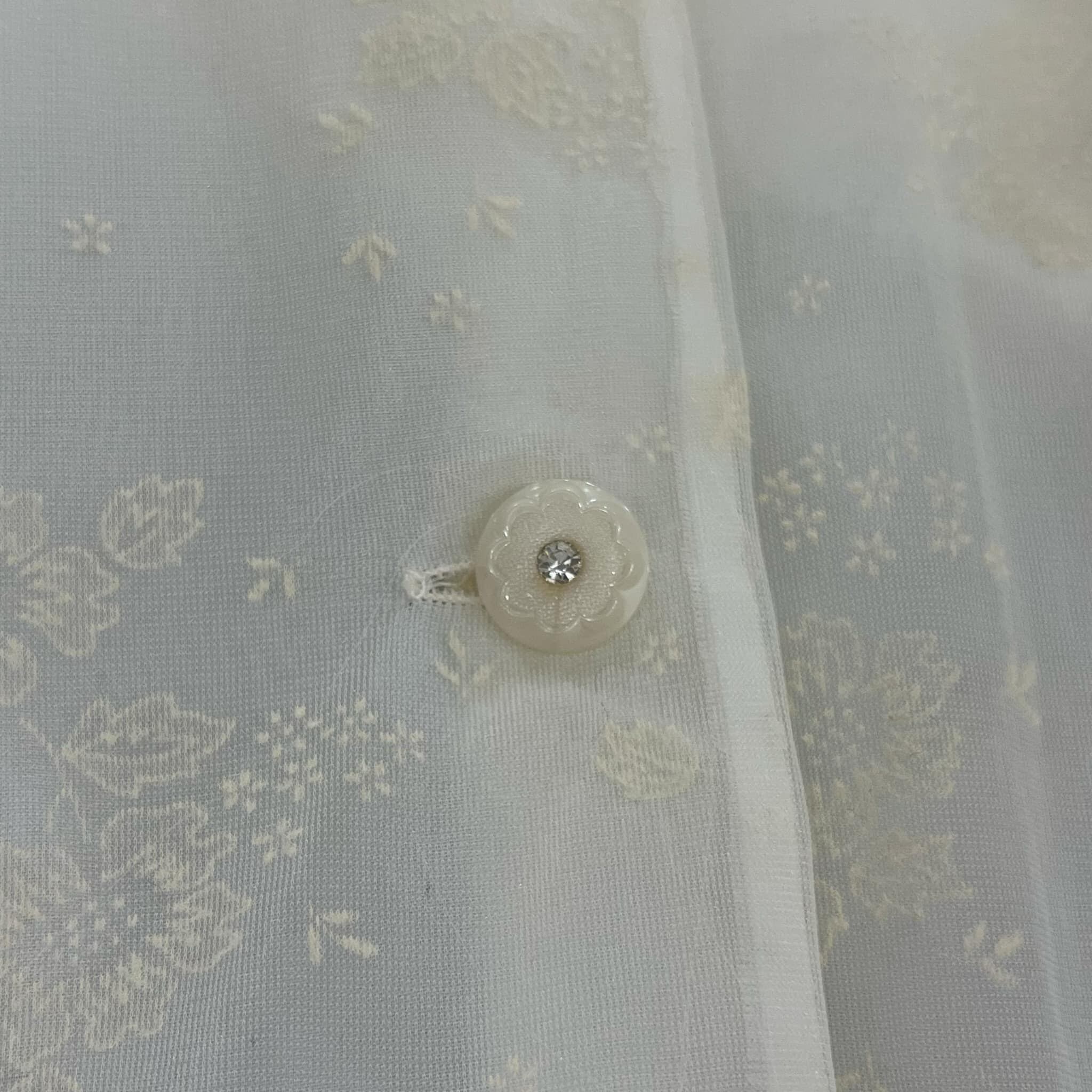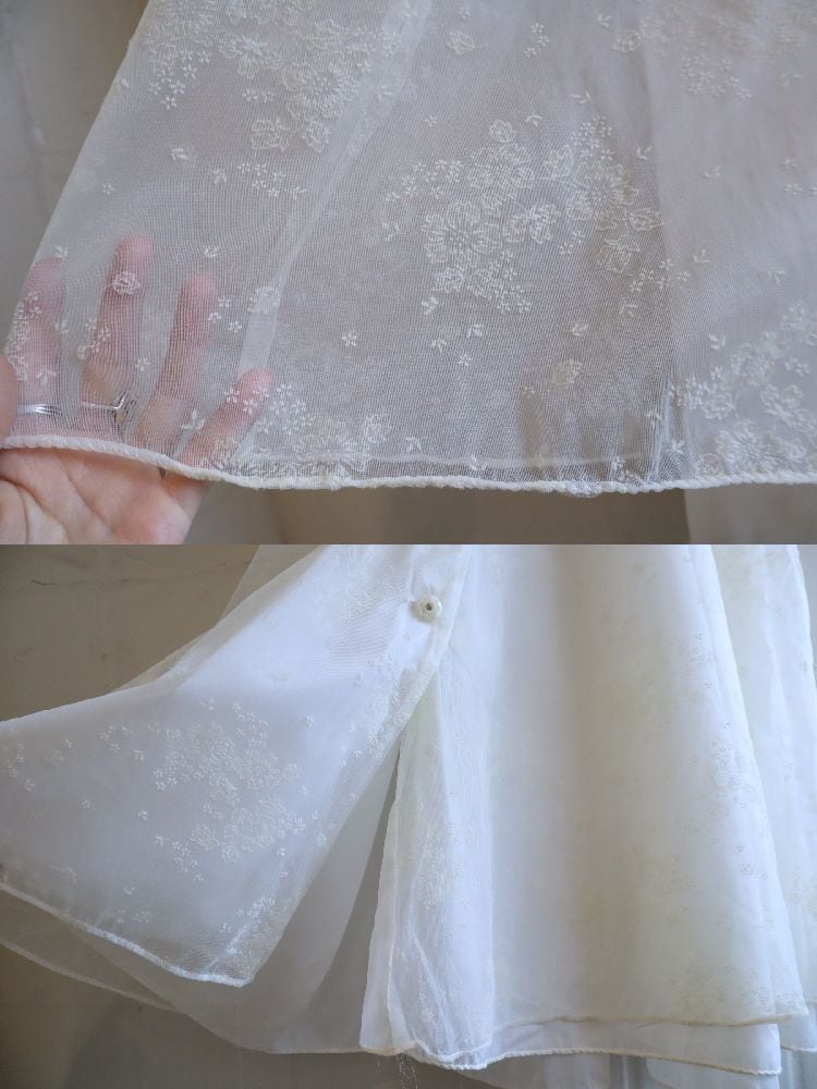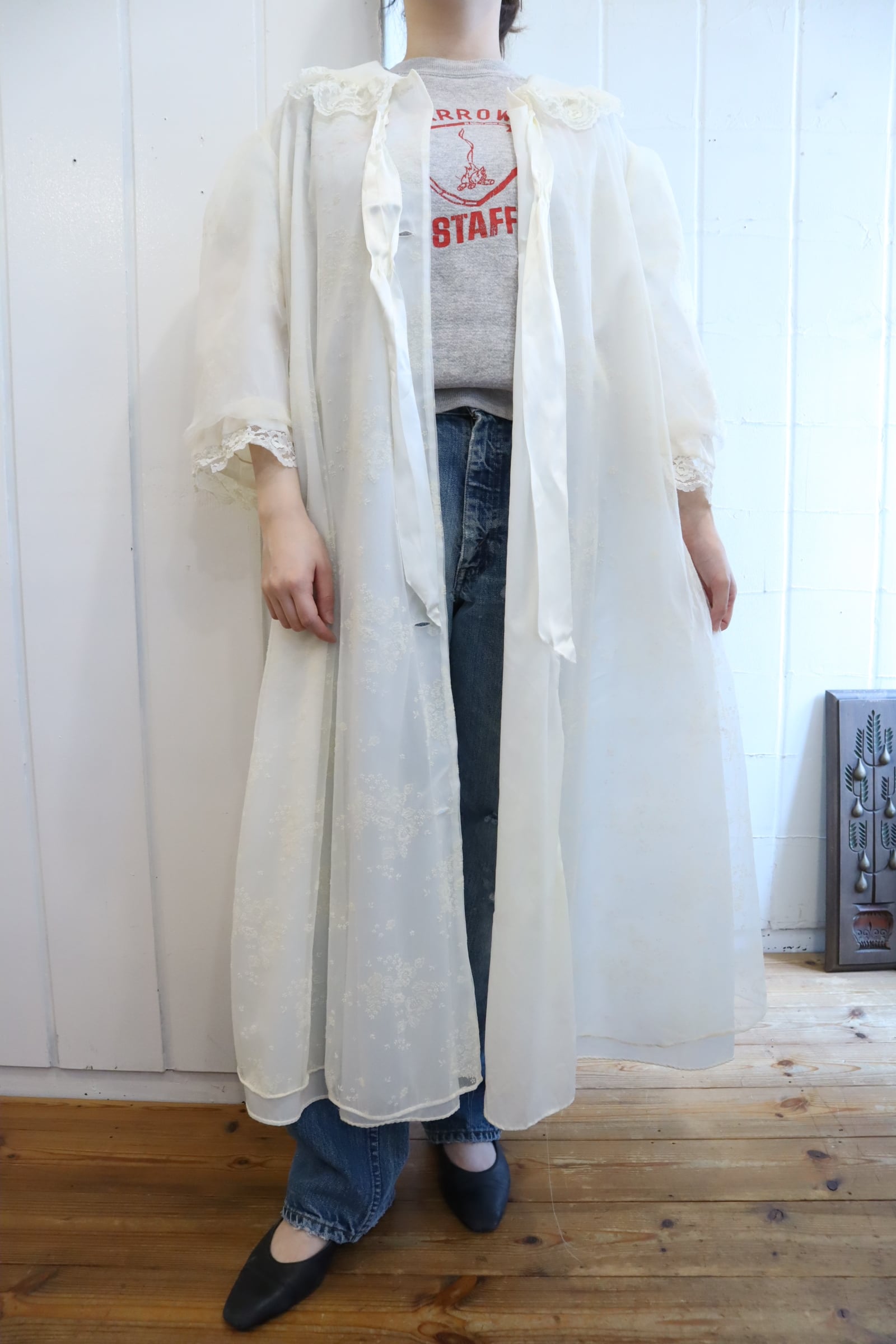 made in USA white flower flocky print lingerie gown [l-5326]