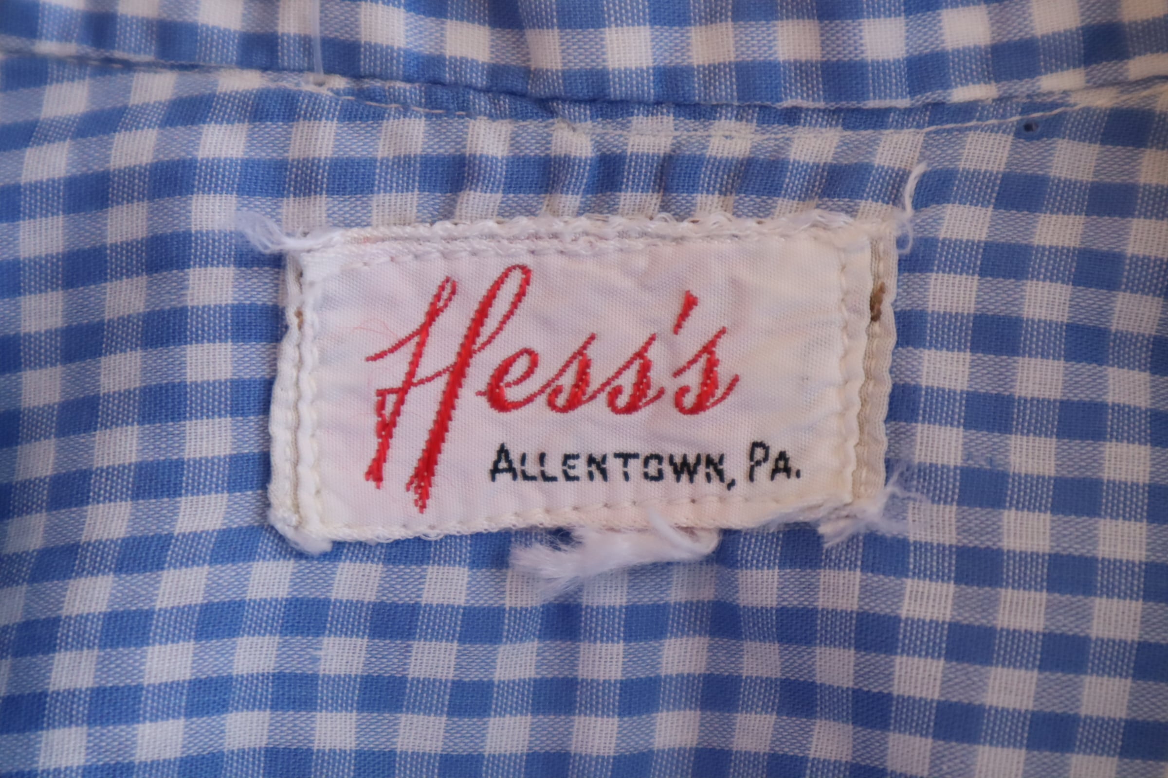 ペンシルベニア州にあったHess'sというデパートのものと思われる、ギンガムチェックが可愛いシャツ*
