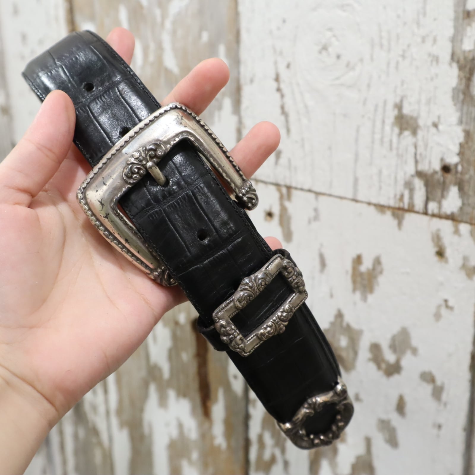 90s Brighton black×silver belt [l-5335]