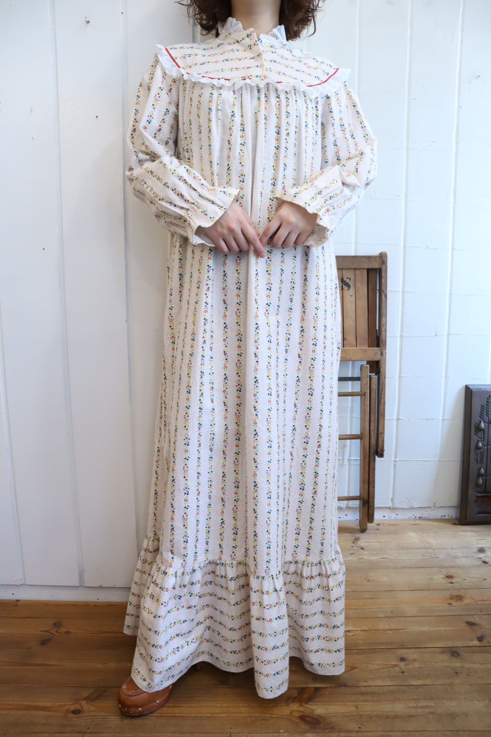 小花柄とドットの組み合わせが可愛いナイトドレス。