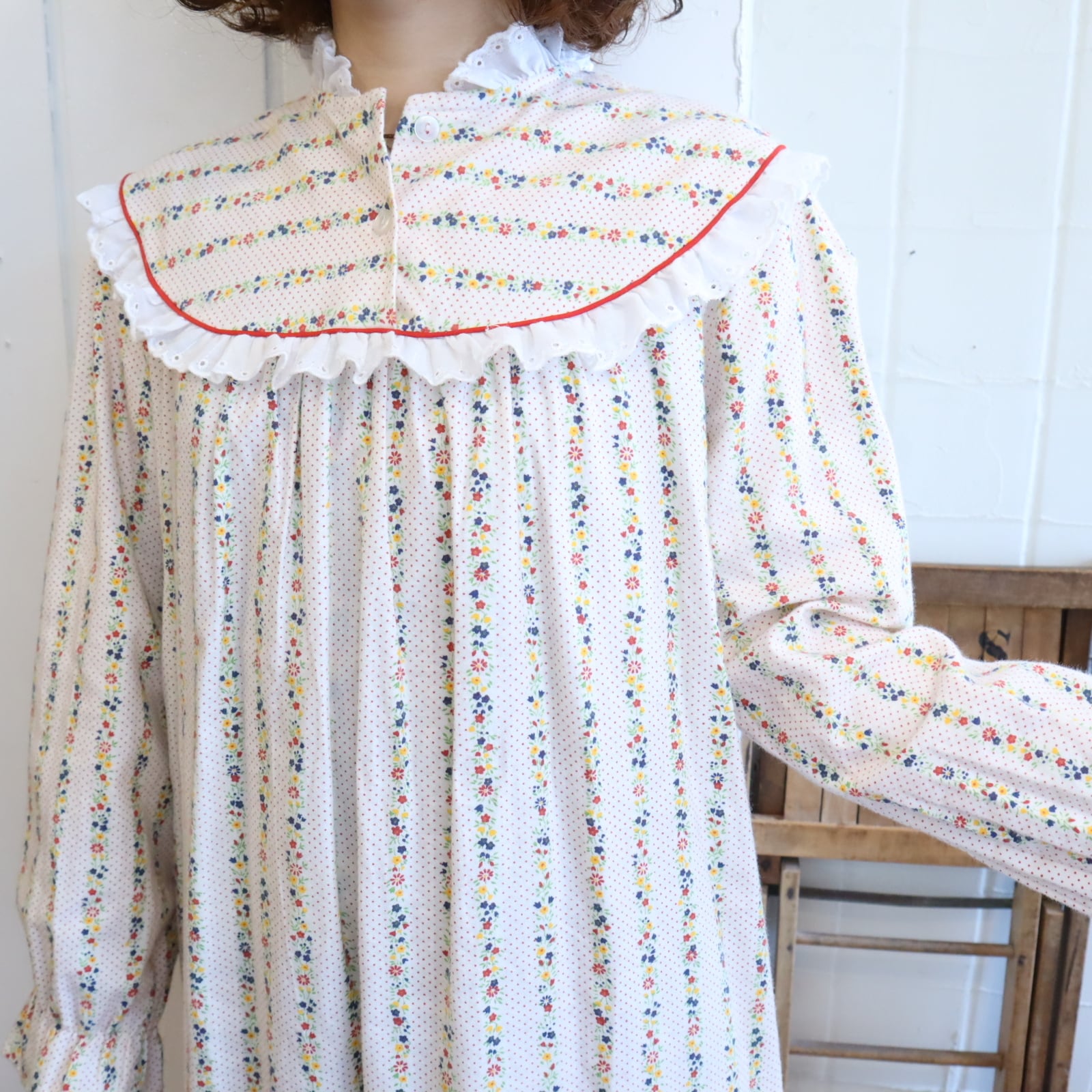 white×red pindot & flower pattern negligee dress [l-5338]