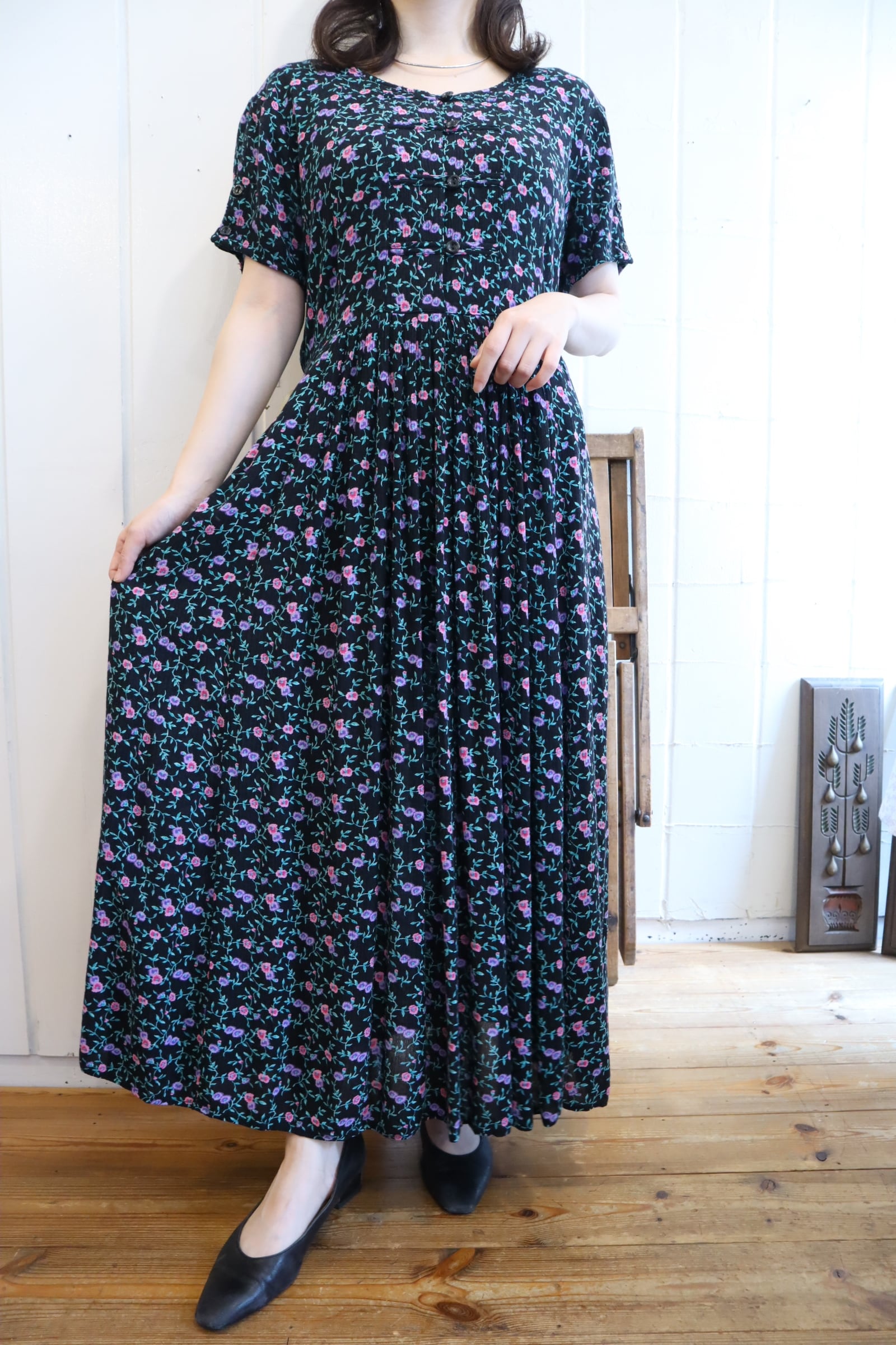 black×pink×purple flower pattern dress [l-5339]