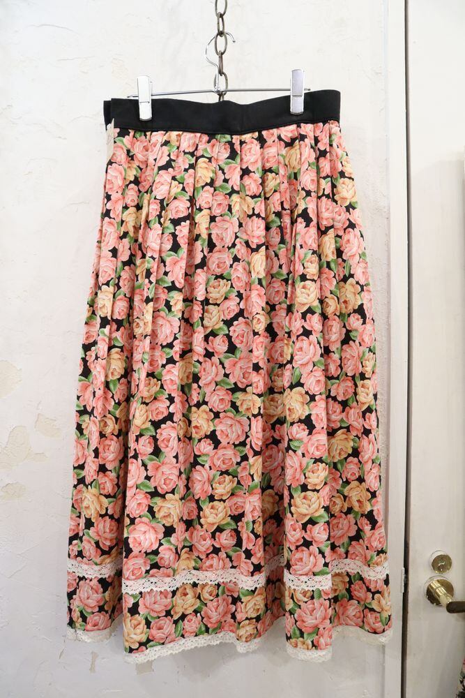 black×pink×yellow flower tyrol skirt [l-41562]