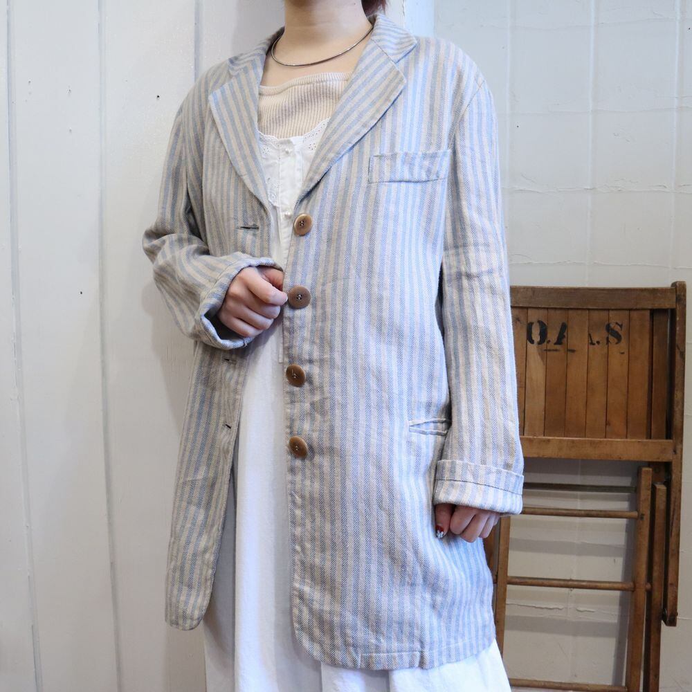 made in ITALY beige×blue stripe fake pocket shirt jacket [k-41626]