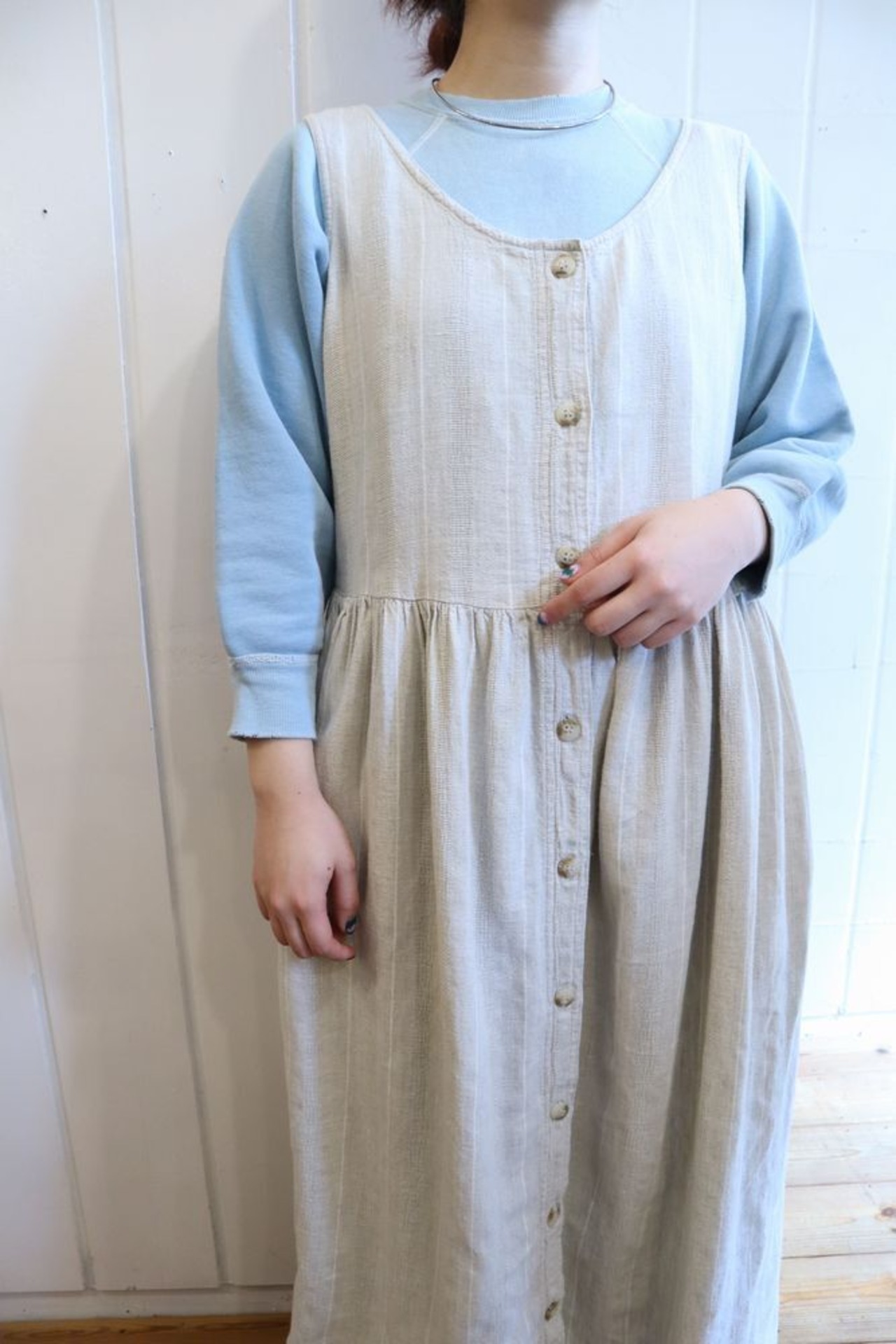 "L.L.Bean" light gray stripe sleeveless dress [k-41784]
