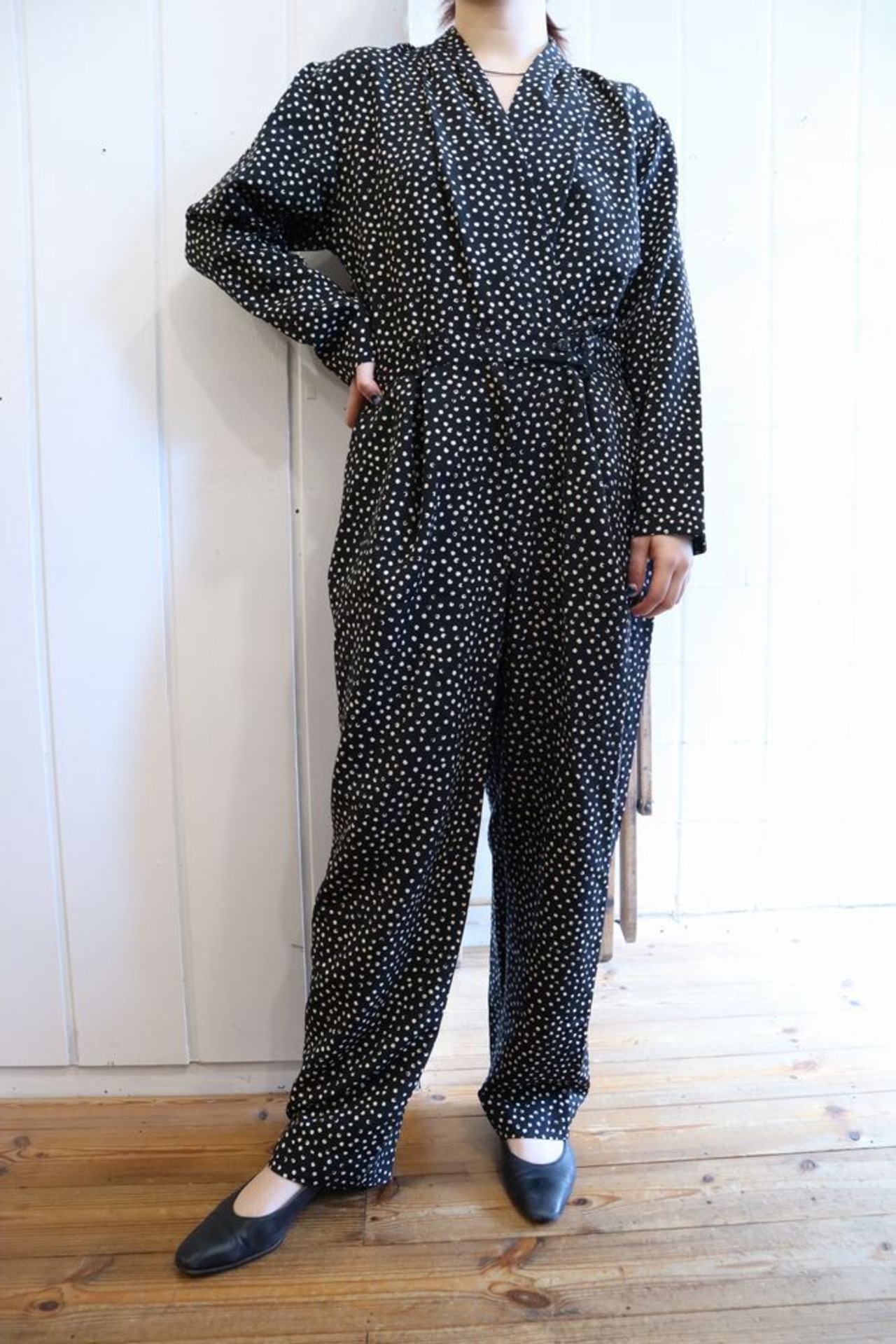black×white dot polyester all-in-one [k-41787]