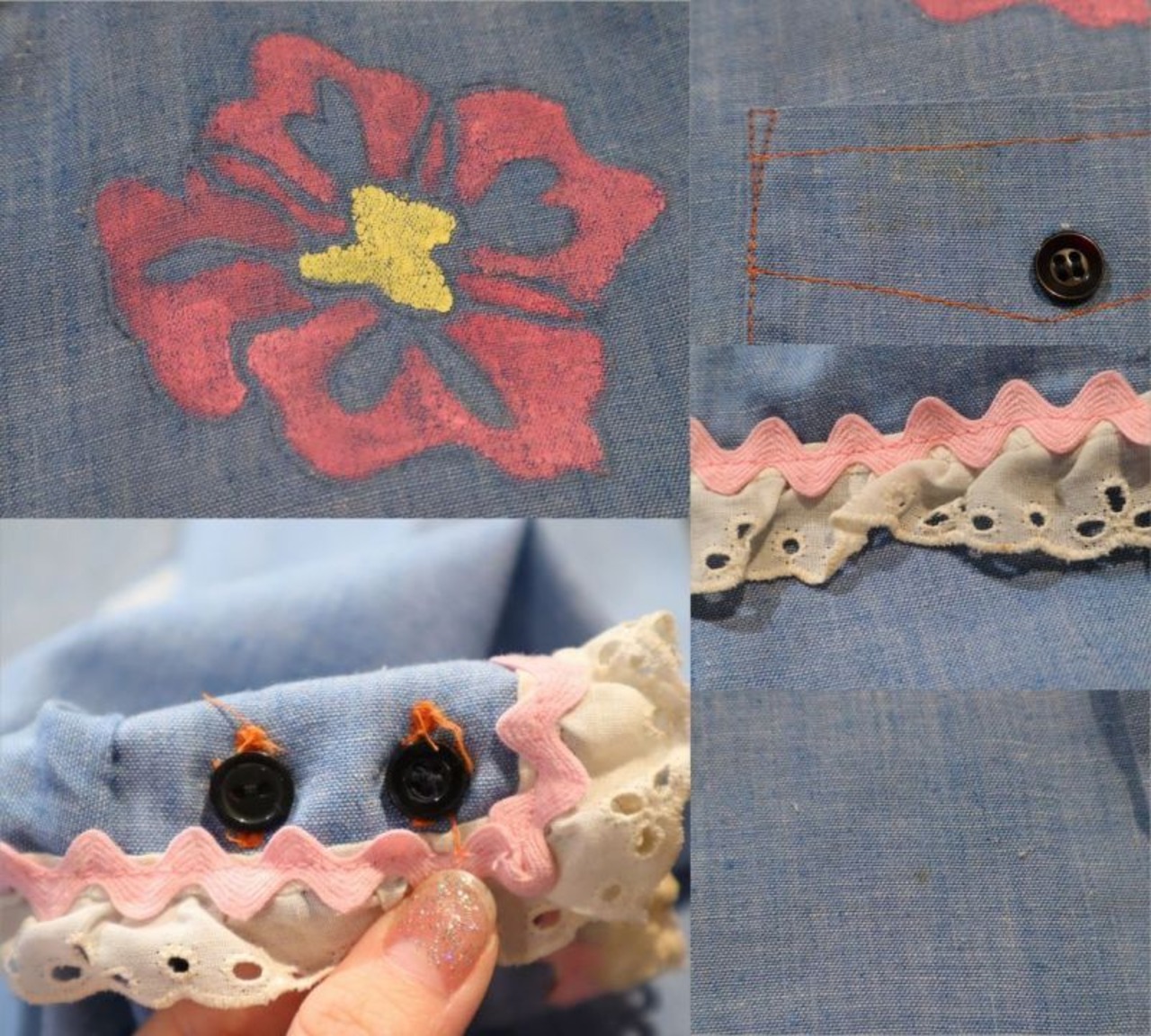お花のペイント部分に下描きと思われる跡や、ボディやレース部分、袖にいくつかうっすらとシミ汚れがございますが、あまり気にならないかと思います。