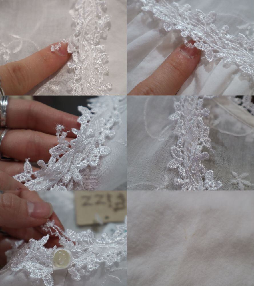 いくつかレースのツレ、一番下ボタンが付け替えられておりますが、あまり気にならないかと思われます。
