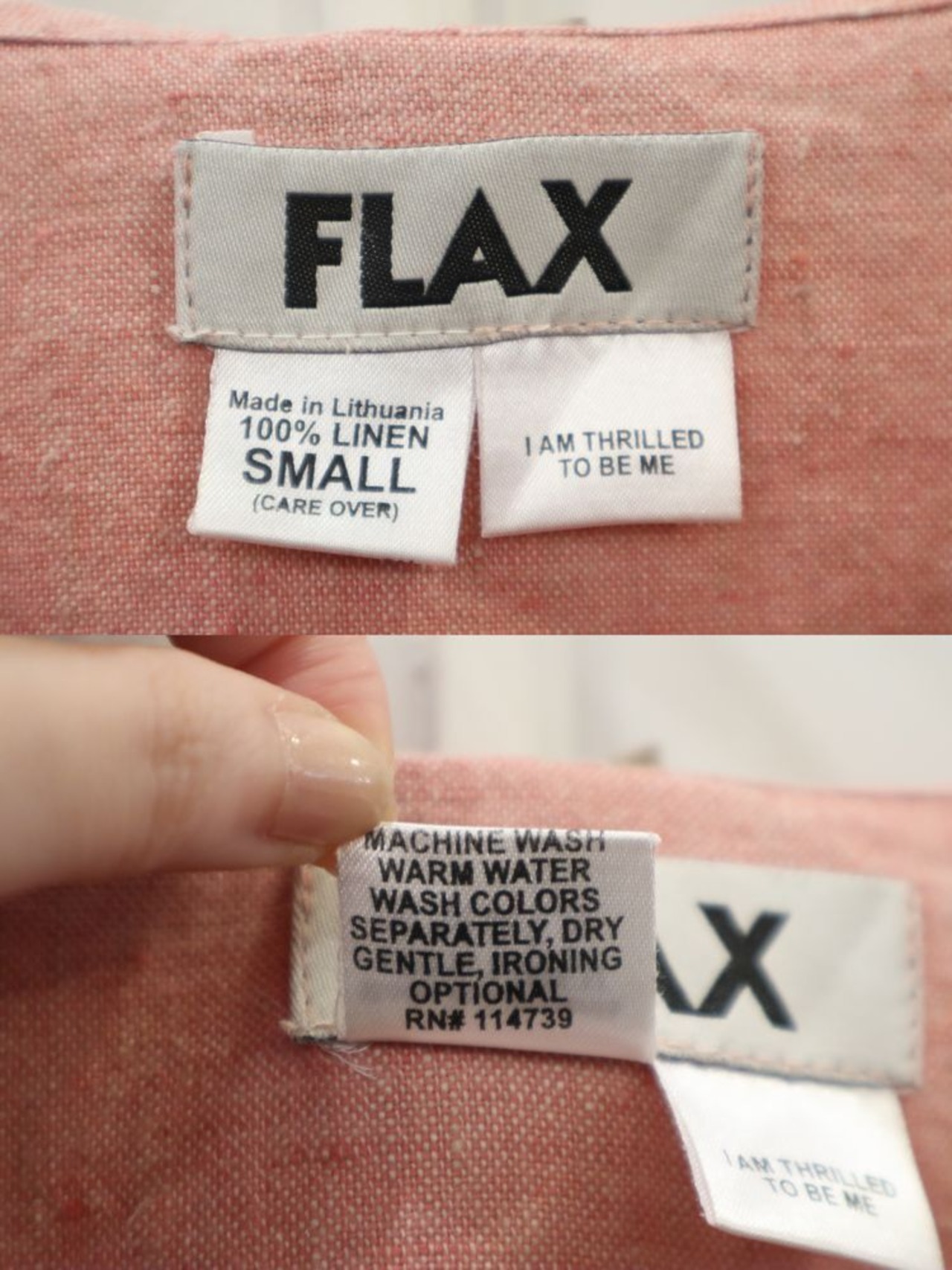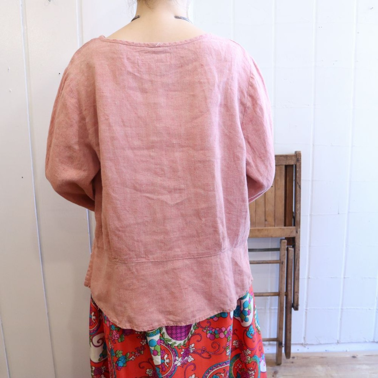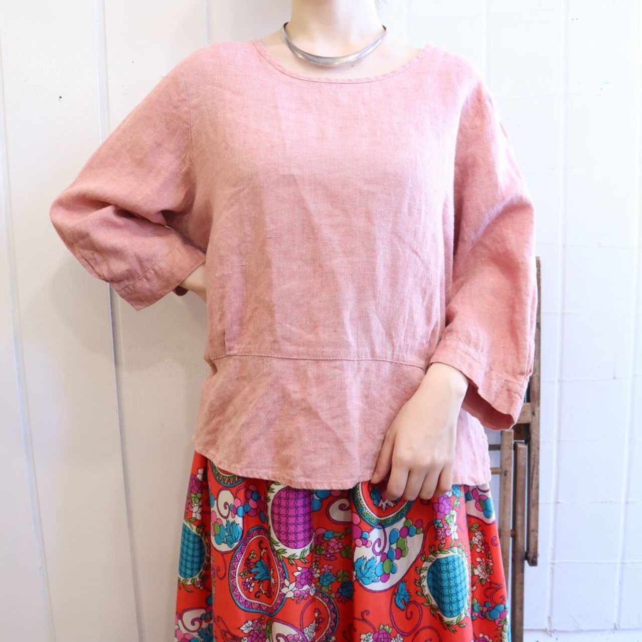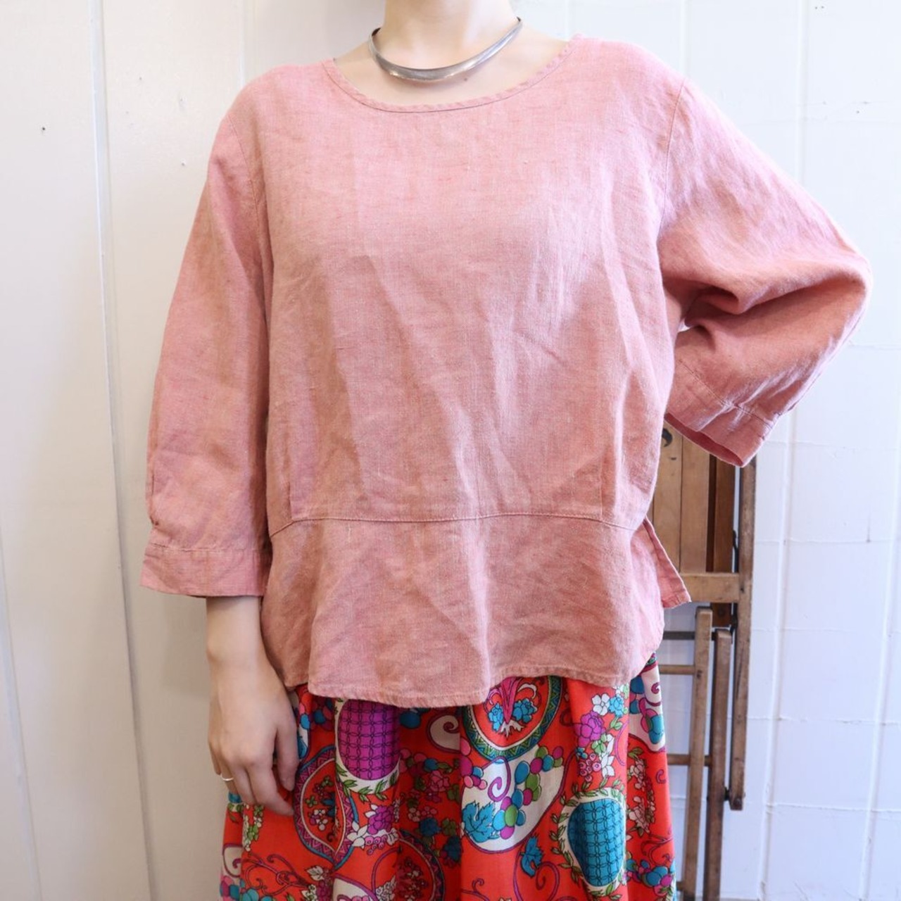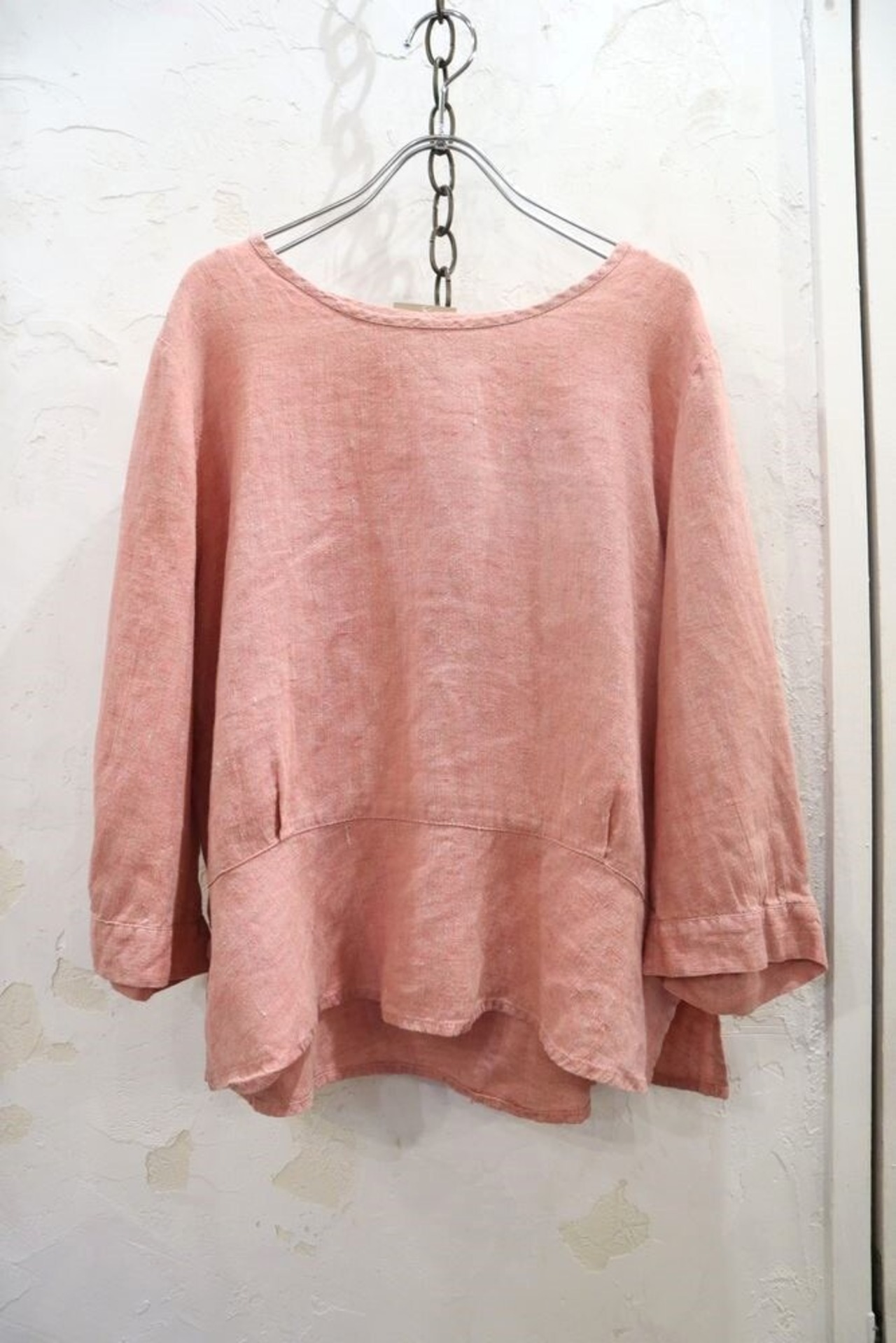 ピンクカラーがかわいいFLAXリネントップです。
