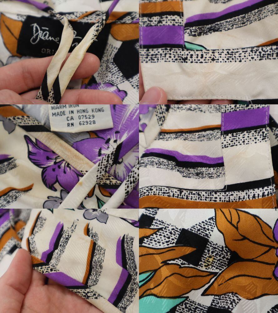 "Diane Freis" white × purple × colorful flower pattern long sleeve dress [k-17]
