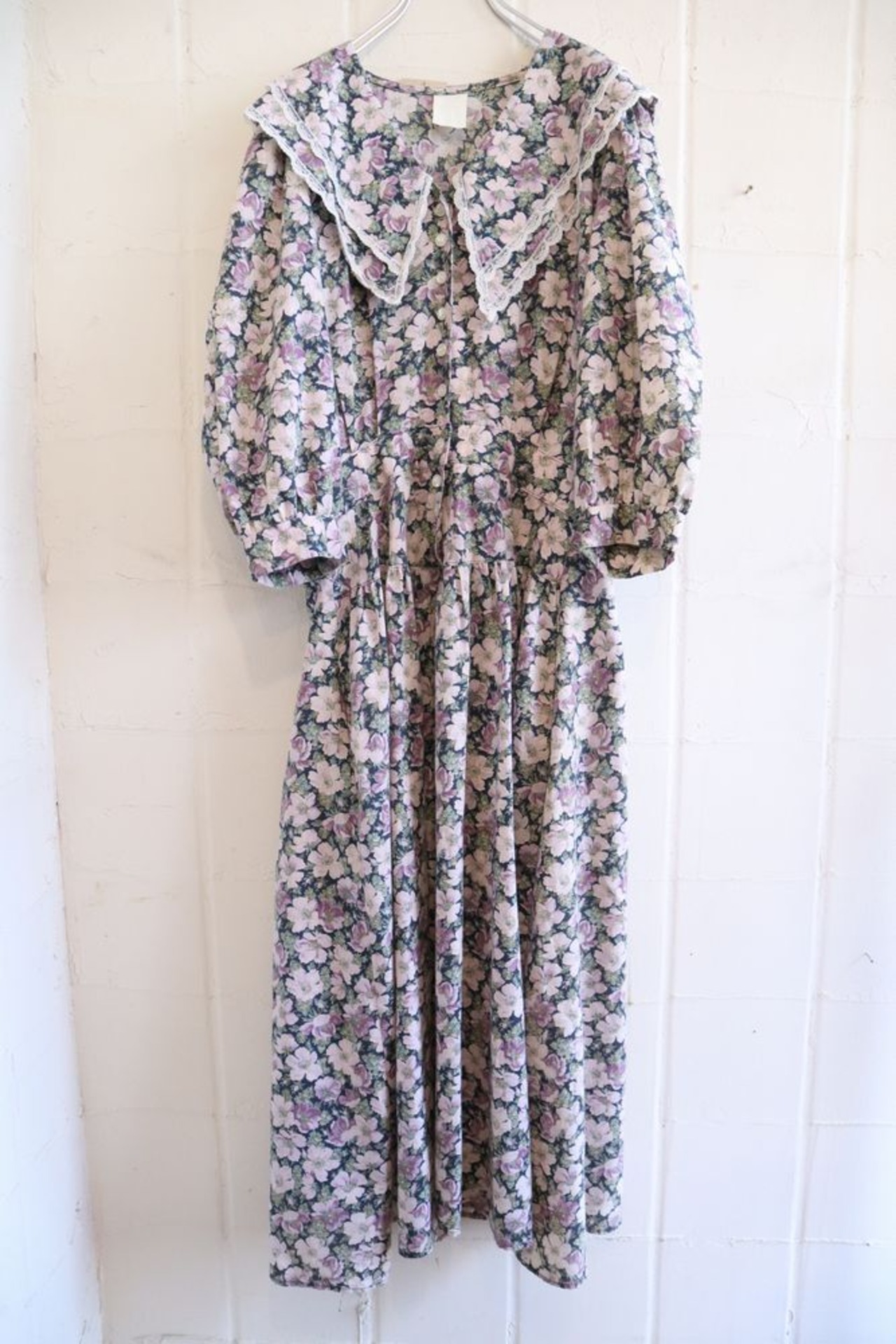 絶妙なくすみカラーが可愛いポケット付き花柄ドレスです。