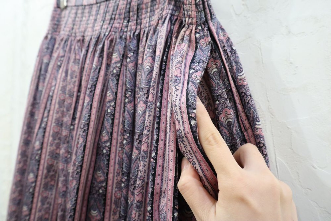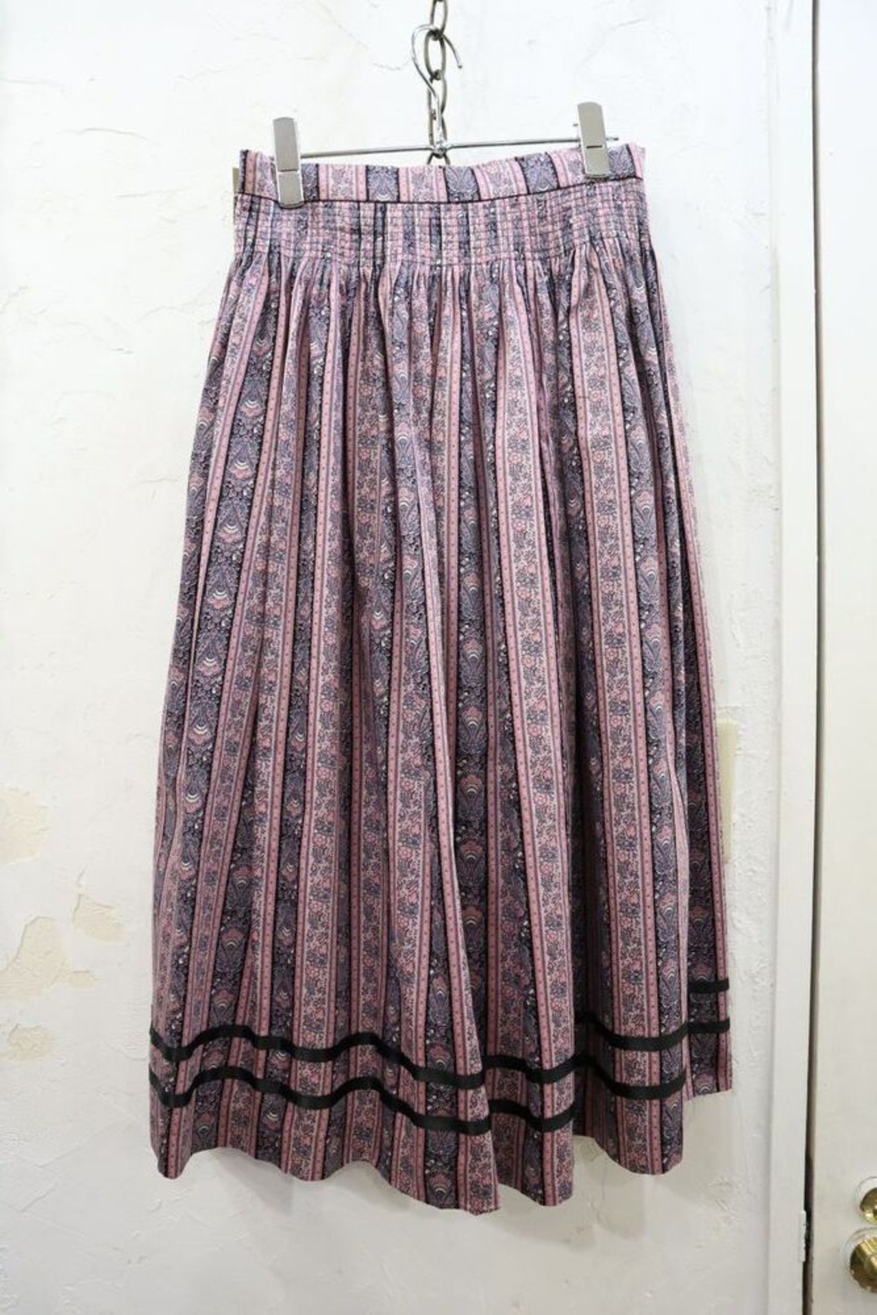 pink purple × black × flower & stripe tirol skirt [l-43]