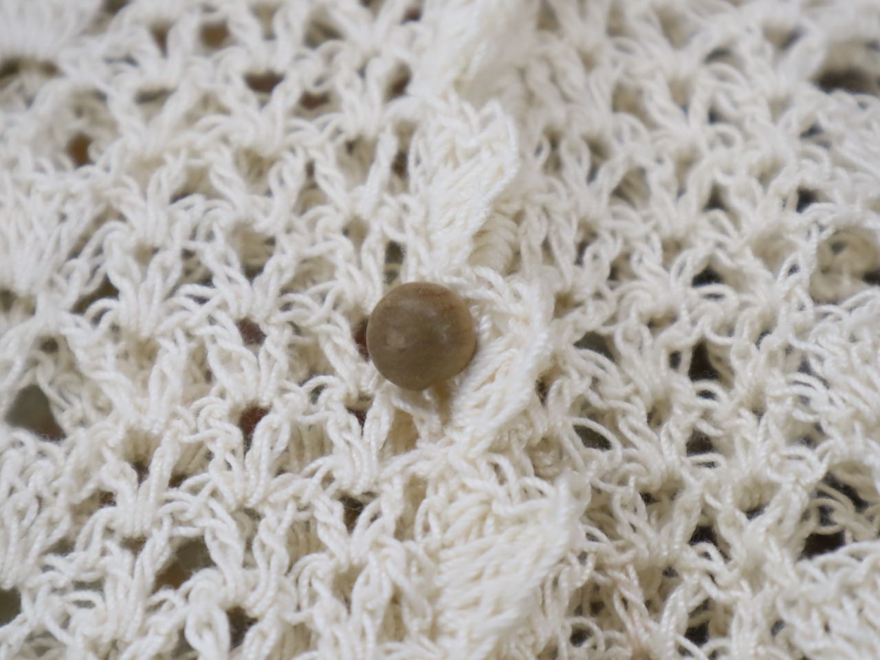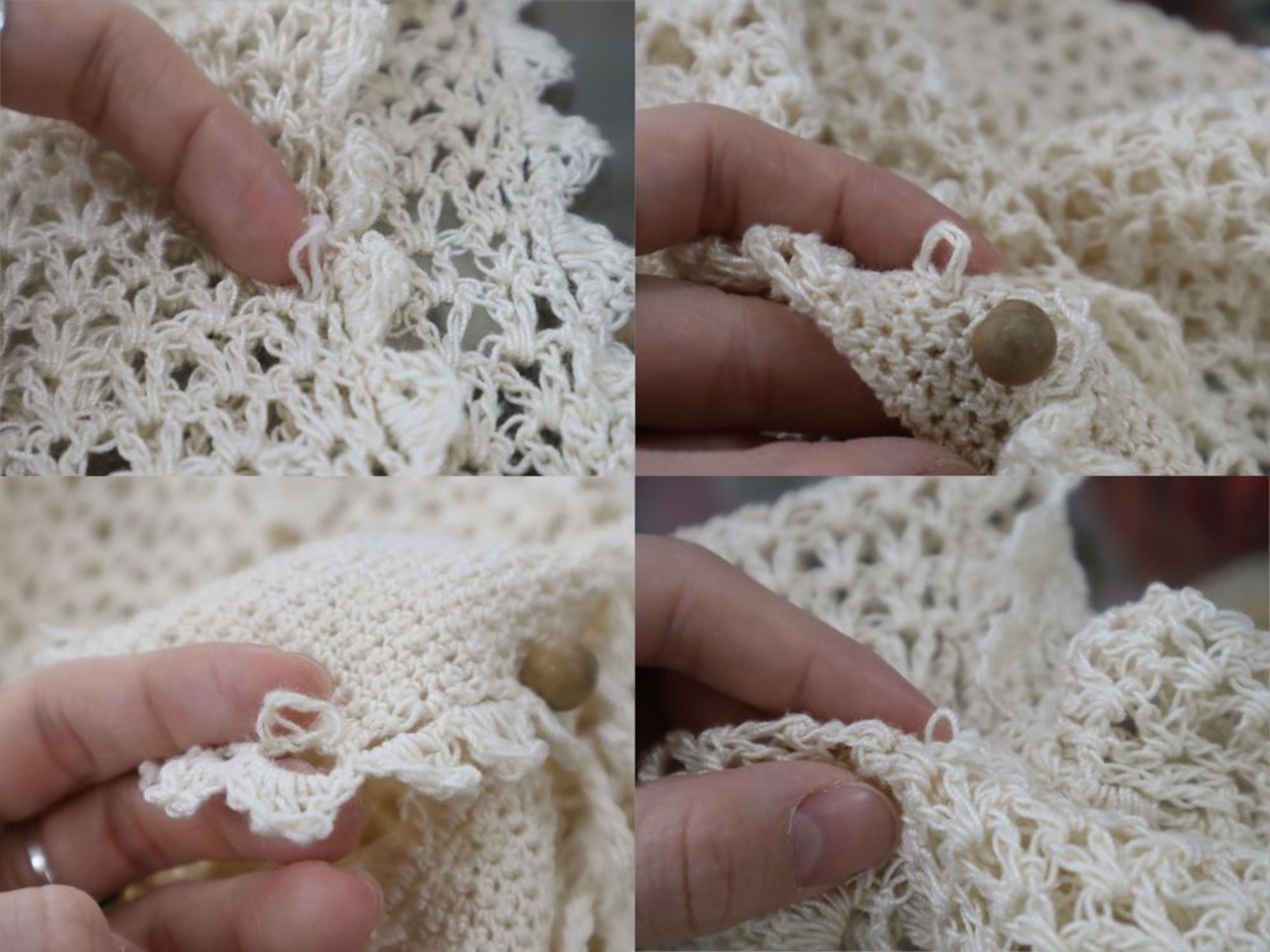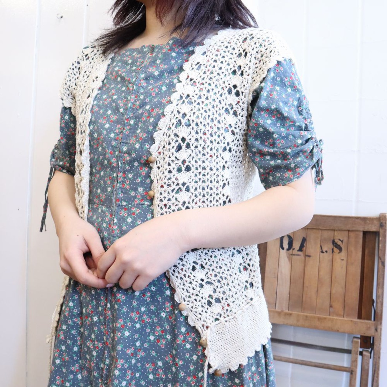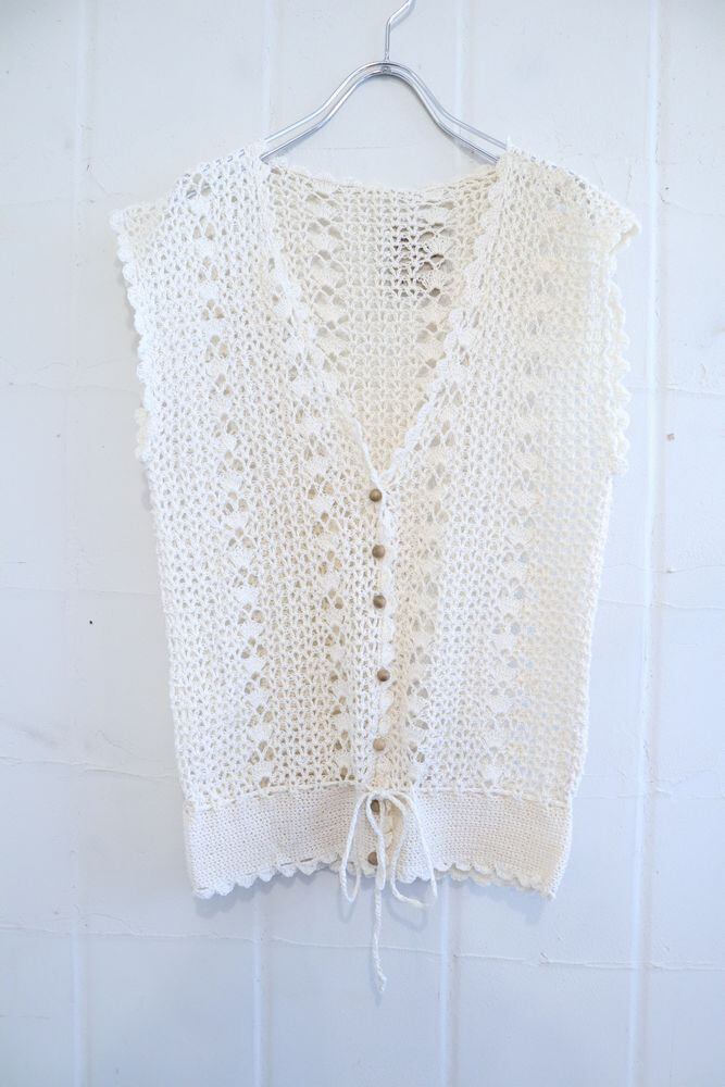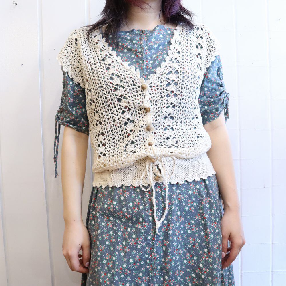 着用するとフレンチスリーブのようなシルエットになるクロシェベストです。