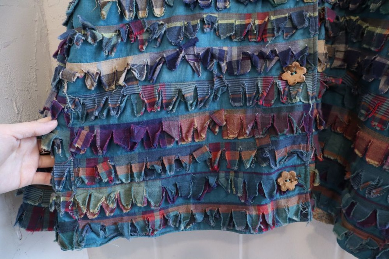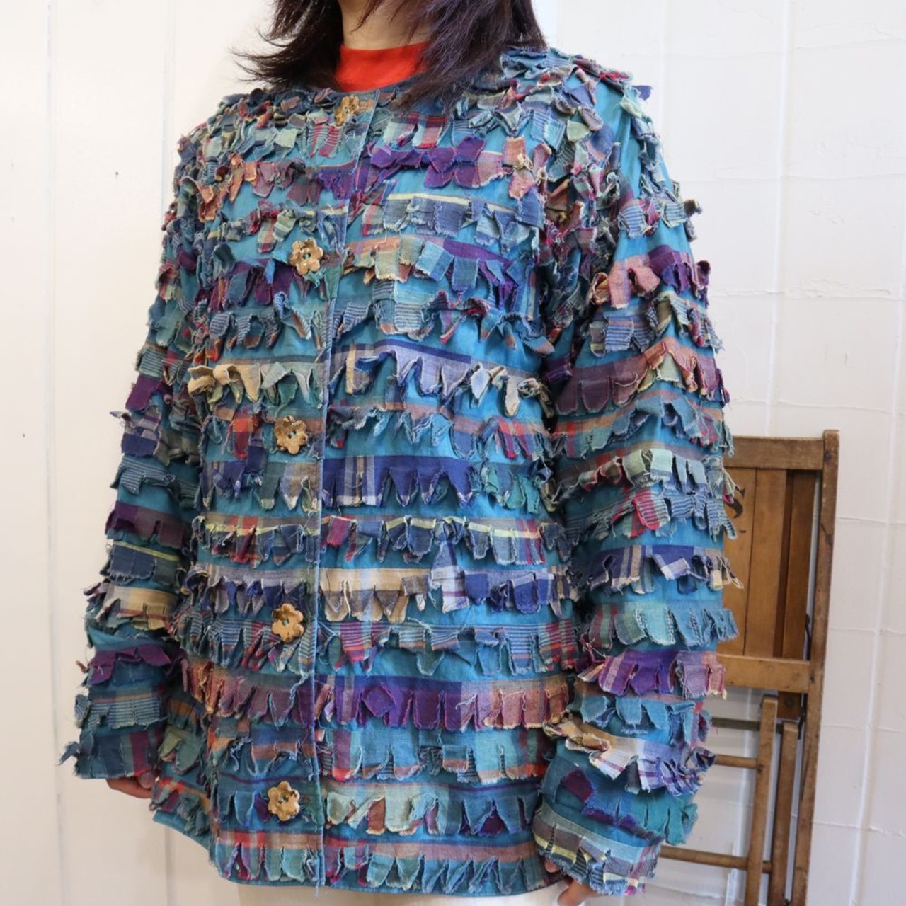 お花の陶器ボタンとくすみカラーが可愛いフリンジジャケットです。