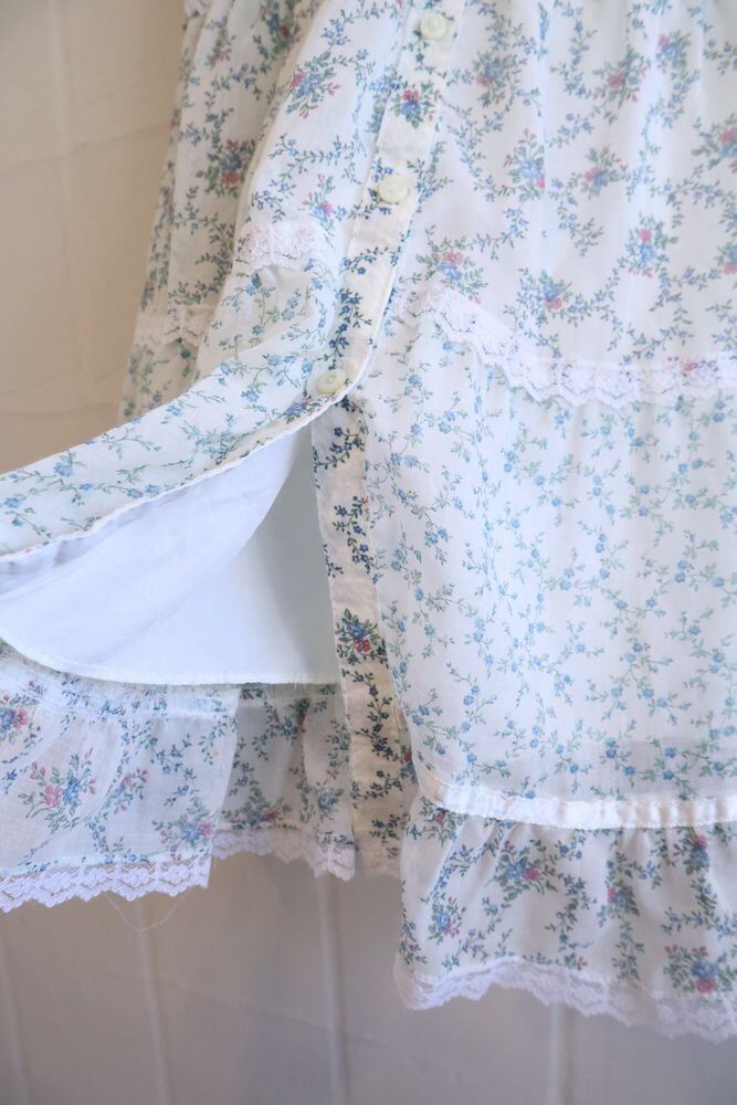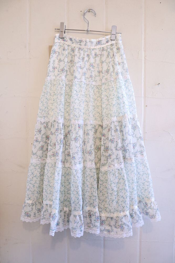made in USA "GUNNE SAX" white × blue flower lace tiered skirt [l-61]
