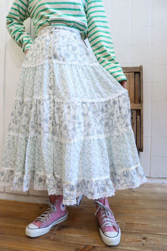 ふんわりと広がるティアードデザインと小花柄が可愛いスカートです。
