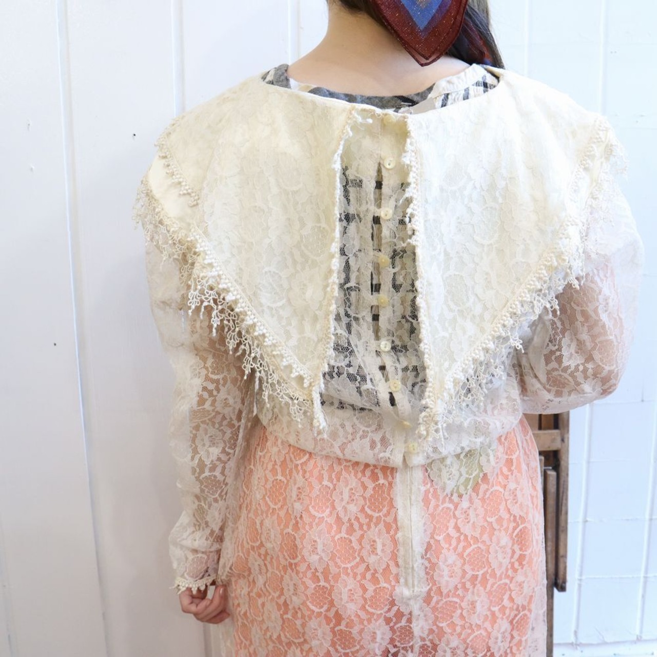 "SCOTT McCLINTOCK" white lace big collar long sleeve dress [l-69]