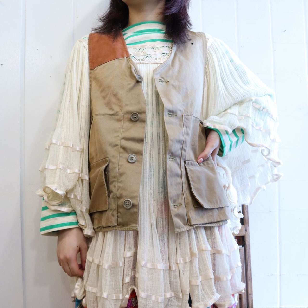 ざっくりと大きめのサイズ感でレイヤードも楽しめそうなハンティングベストです。