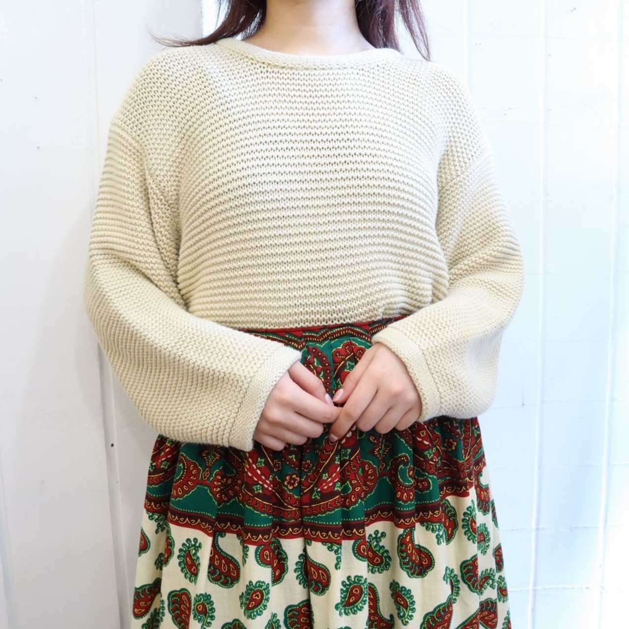 ”Eddie Bauer” beige cotton knit pullover [k-75]