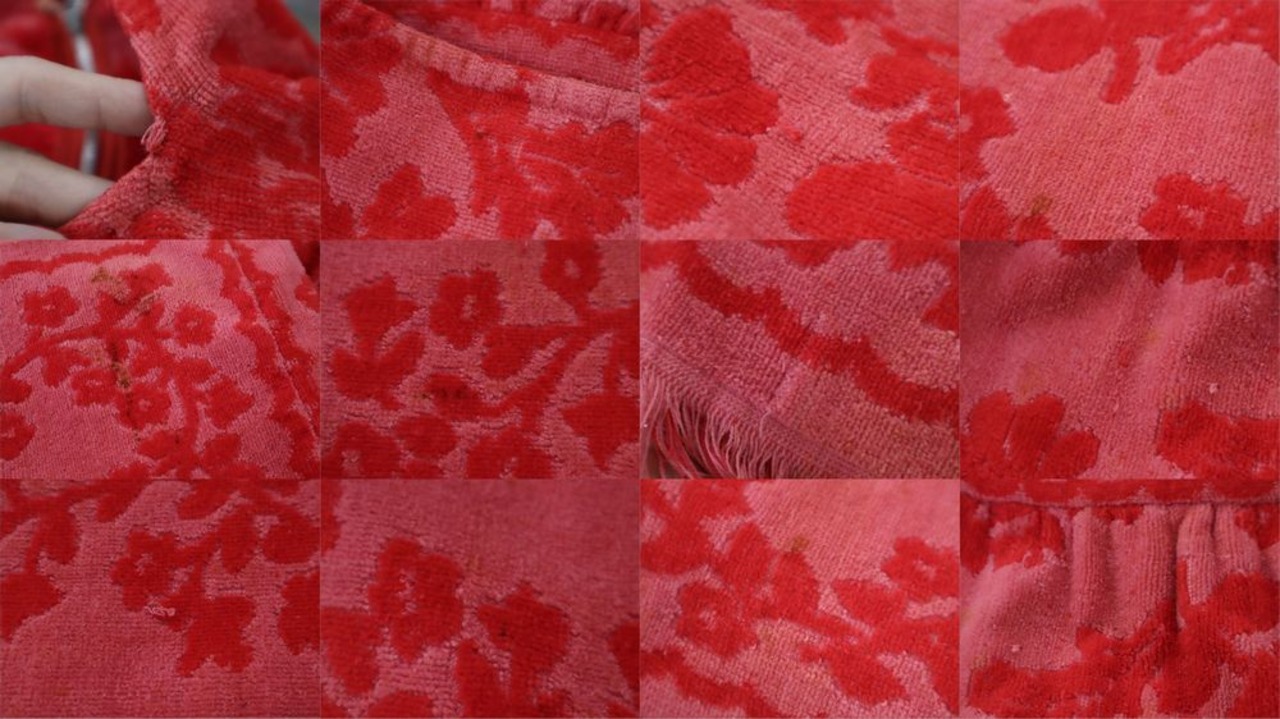 首元に一部ホツレ、ボディにいくつかツレ、一部裾あたりにリペア跡がございますが、あまり気にならないかと思われます。