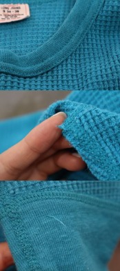 made in USA blue plain long sleeve thermal tops [l-106]