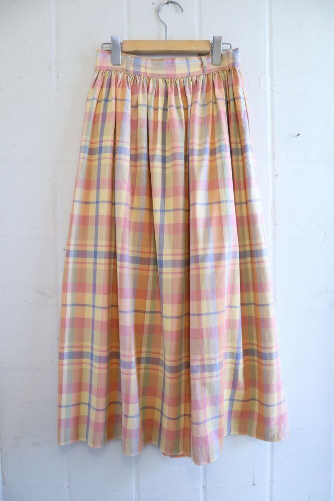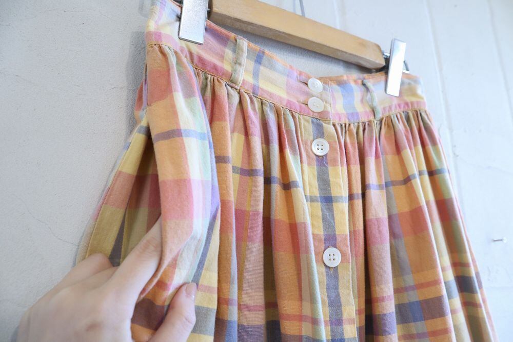 淡いお色味が可愛いポケット付きチェックスカートです。