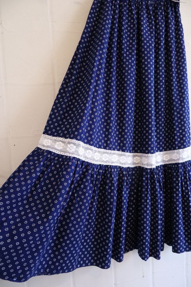 navy × white flower lace flare hem long skirt [l-118]
