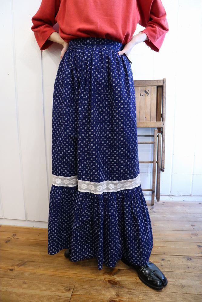 さりげない小花柄やレースの切替が可愛いスカートです。